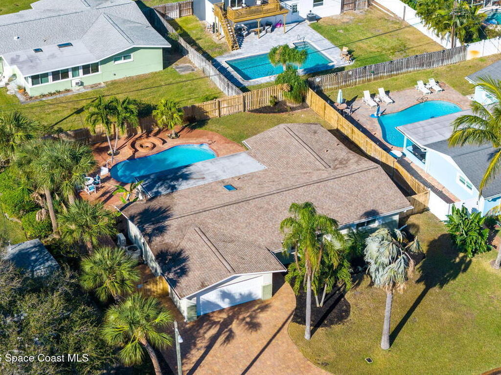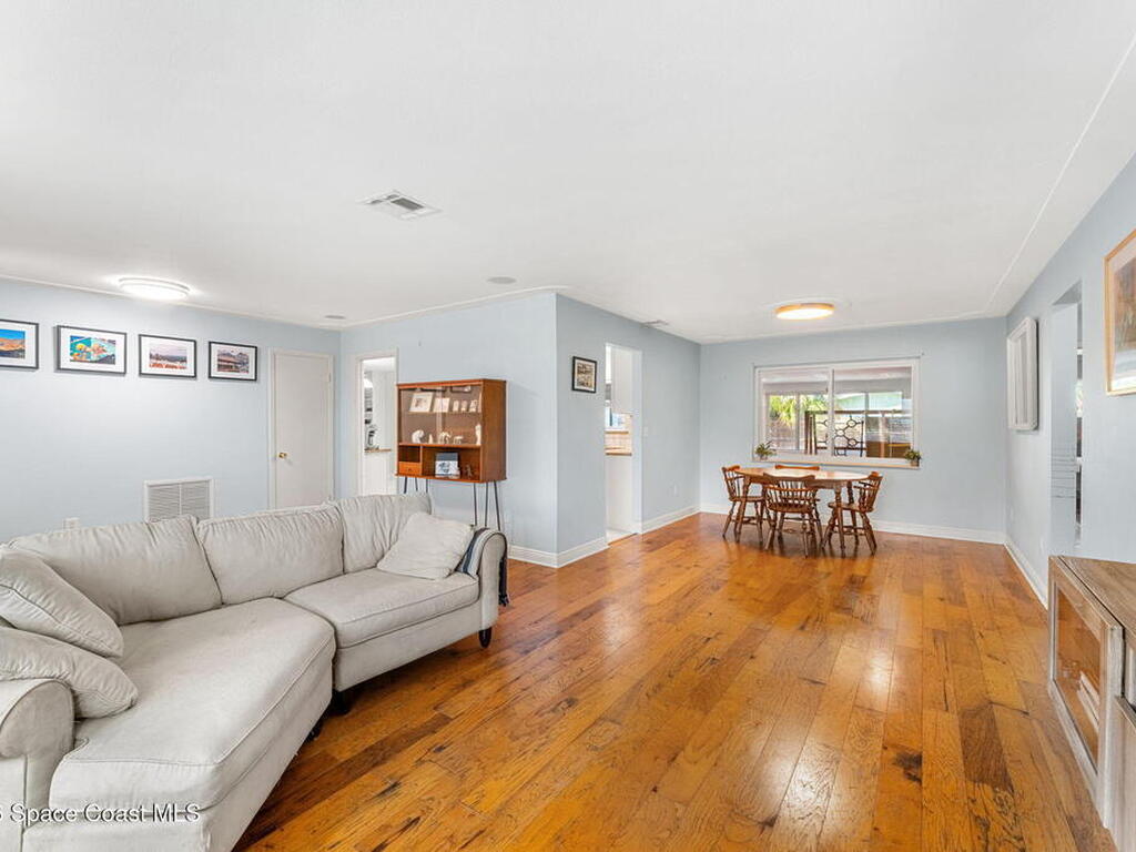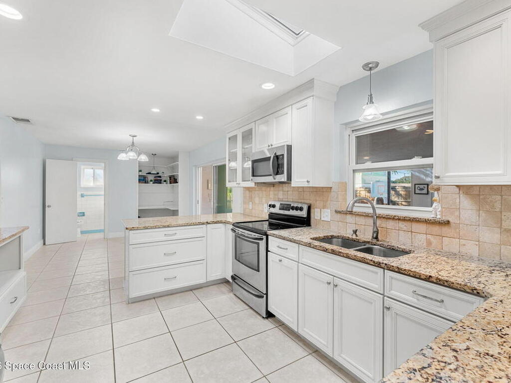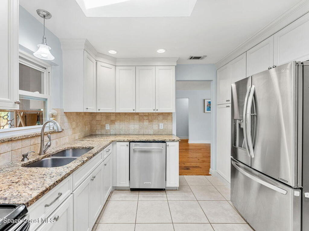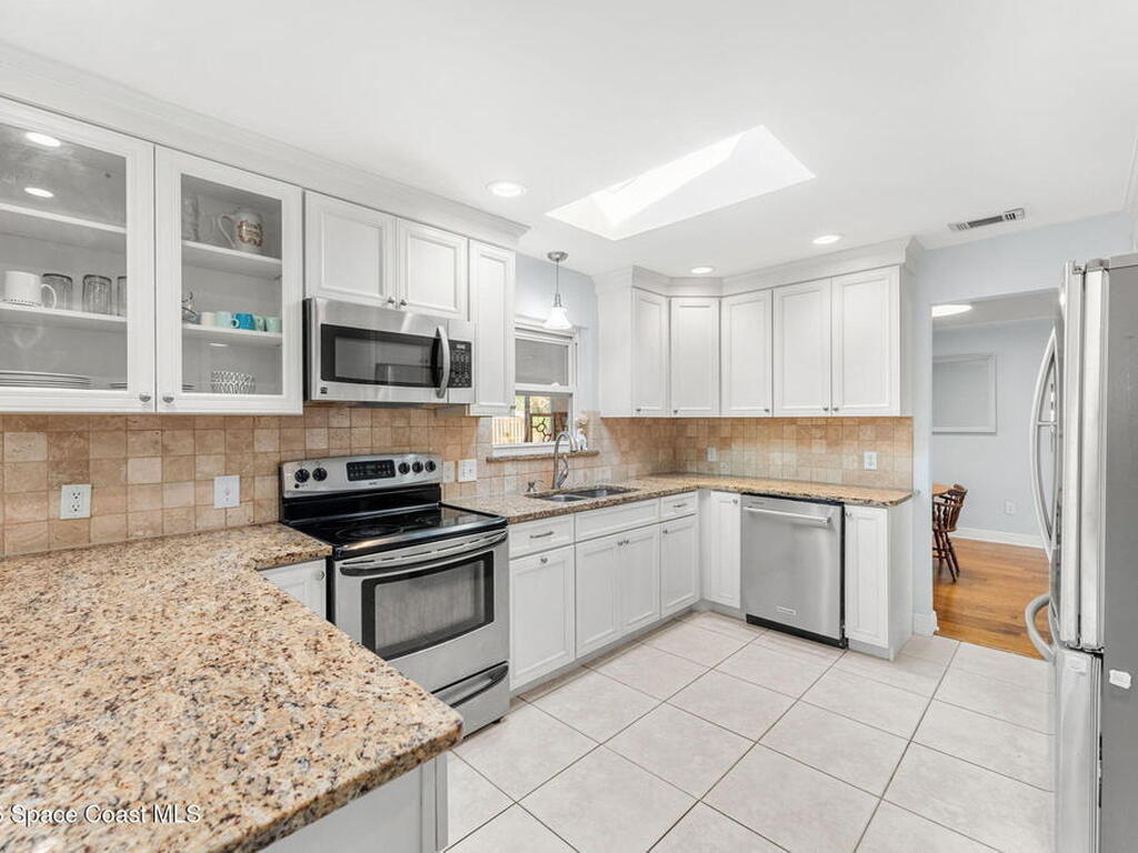 Just minutes from the beach & bursting w/Florida energy, this radiant, refreshed pool home hits differently from the second you step inside, with wood & tile floors running throughout, smart upgrades in every space & natural light spilling in like it was invited. The kitchen brings both polish & practicality w/ granite counters, a tile backsplash, SS appliances, white soft-close cabinetry, plus a sunny skylight that keeps everything glowing all day long. A cozy breakfast nook features built-in shelving for extra charm & function, while the Florida room adds that bonus hangout space everyone wants. The owner's suite feels private & pulled-together, offering direct access to the Florida room, a statement dimensional wood accent wall, a walk-in closet & an ensuite w/a tiled shower. One of the guest bdrms includes built-in shelving too, adding even more personality. Plus a full guest bath w/ tub/shower combo. Sellers currently paying a low $3, 100 for homeowner's insurance!