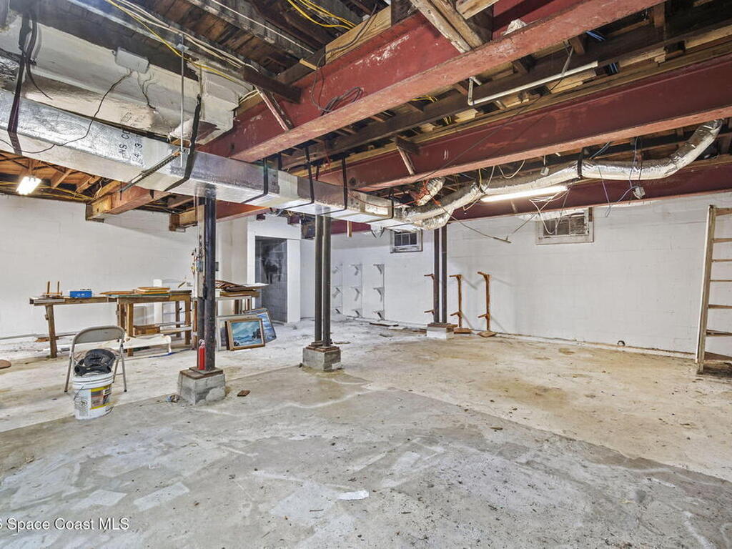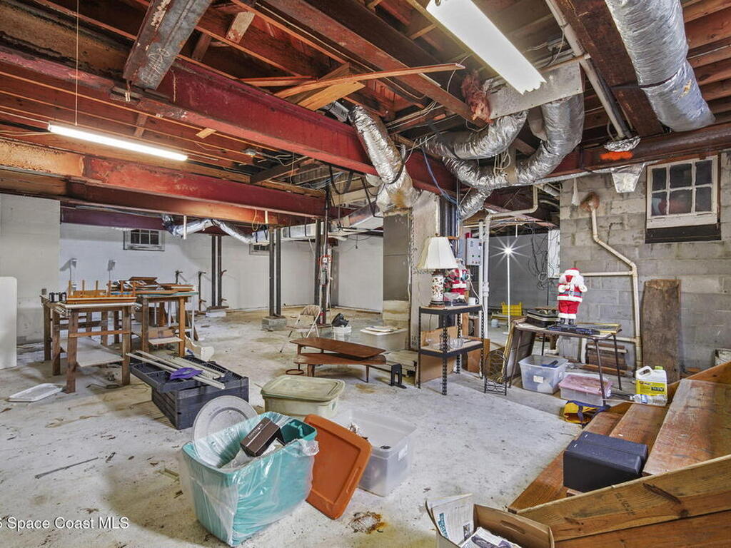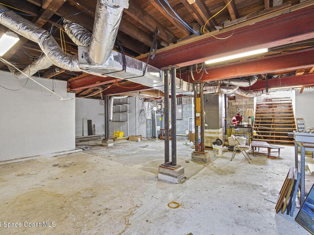 Opportunity awaits on this 1.46-acre Indian River waterfront property offering exceptional potential for renovation, redevelopment, or investment. The property includes a single-family residence, a detached two-car garage, and an additional carport. A private dock with covered boat lift provides direct access to Indian River. The home features a solid concrete basement, offering additional square footage and flexibility for future build-out or redesign. The structure is ready for renovation and customization by the next owner.Zoning allows for up to a 13:1 density, presenting multiple development possibilities, including a private estate, income-producing property, or potential multi-unit investment. Rare opportunity to own a sizable riverfront parcel with dockage and development potential in Melbourne.