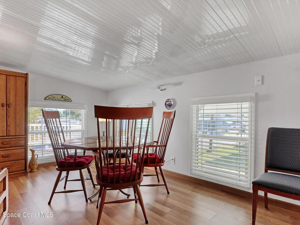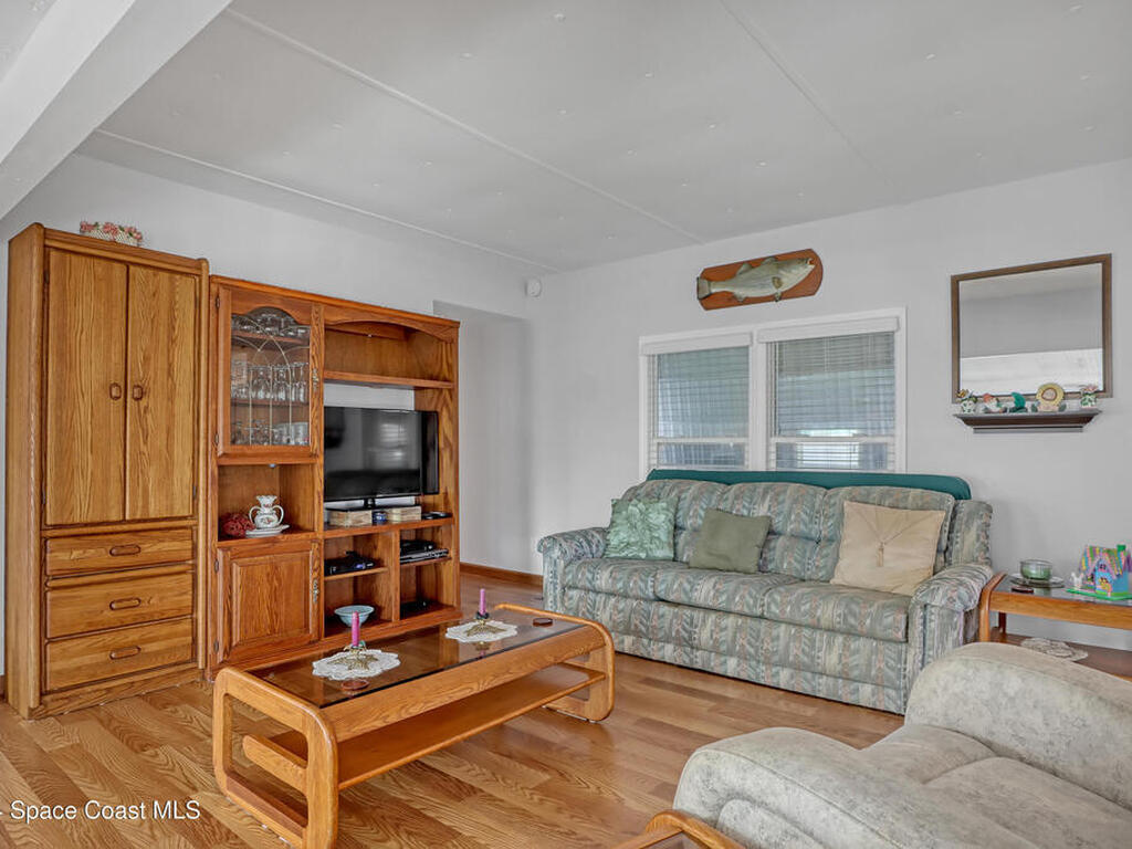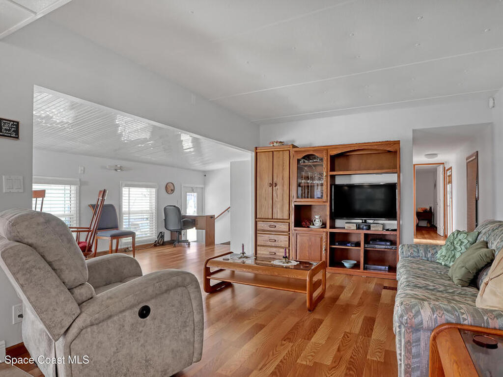 Home Sweet Home! This impressively remodeled home was stripped down to the studs & built back up. Including a new master suite half bathroom, fully updated common bathroom, new windows & slider on SE side, vinyl siding, plywood subflooring & a raised flooring deck in the entry living area, nearly doubling the width, creating a fabulous great room open floor plan, with additional storage space below. A gorgeous eat in kitchen with ample cabinet & countertop space, granite tops & under cabinet lighting. So many other well executed finishing touches throughout! New AC in 2023. Outdoor features include a raised deck with railing off the kitchen, storage room, double length carport, clamshell & roll down shutters. This home comes fully stocked and furnished and is located in the 55+ waterfront community Palm Bay Estates, one of Palm Bay's best kept secrets, featuring a heated community pool, clubhouse, boat launch, boat & RV storage and a wide variety of community activities.