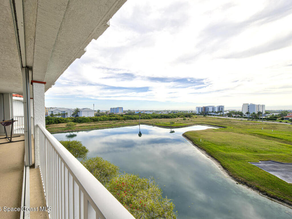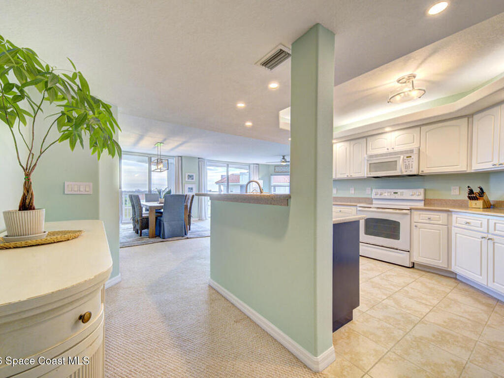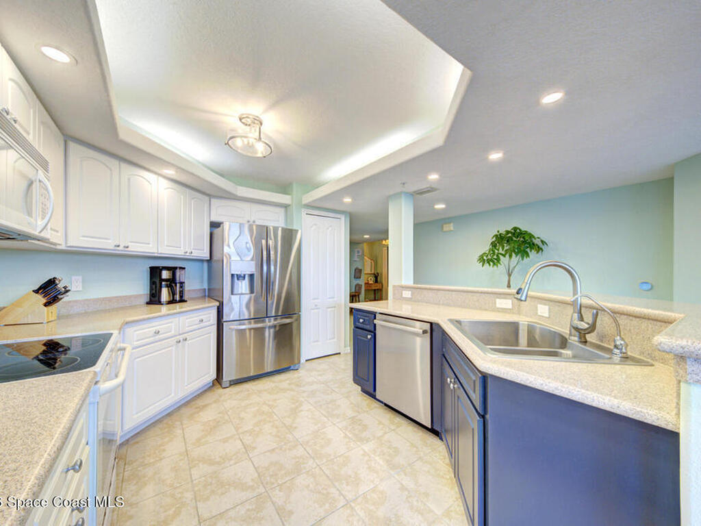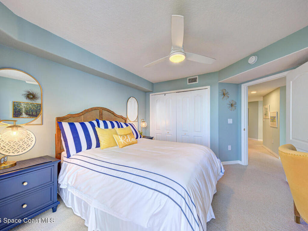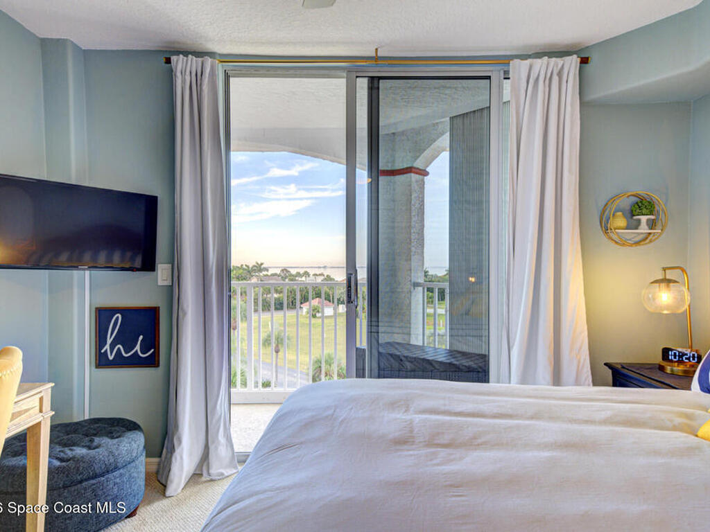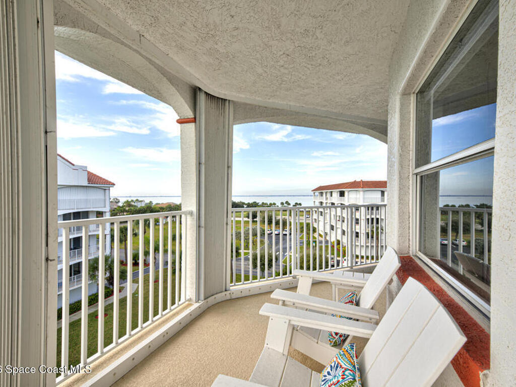 Experience penthouse living with panoramic river views in a VA-approved building, where stunning sunrises and sunsets meet tranquil nature and abundant wildlife. This residence welcomes you through double doors into an open, light-filled layout featuring a white kitchen, a spacious dining area, and multiple sliding doors with floor-to-ceiling glass throughout. Enjoy sparkling water views from every room and refreshing river breezes, all combining to create a serene, resort-style lifestyle.This 3-bedroom, 2-bath penthouse offers generous living spaces, a one-car garage located beneath the building, wrap-around balconies, a reverse osmosis water filtration system, and shutters throughout for added peace of mind. Community amenities include two pools, two Jacuzzis, exercise parks, kayak ramps, a recreation room, and a gym in each building.Perfectly situated near the port, quiet beaches, Manatee Park, and just minutes from the vibrant Cocoa Beach Pier.