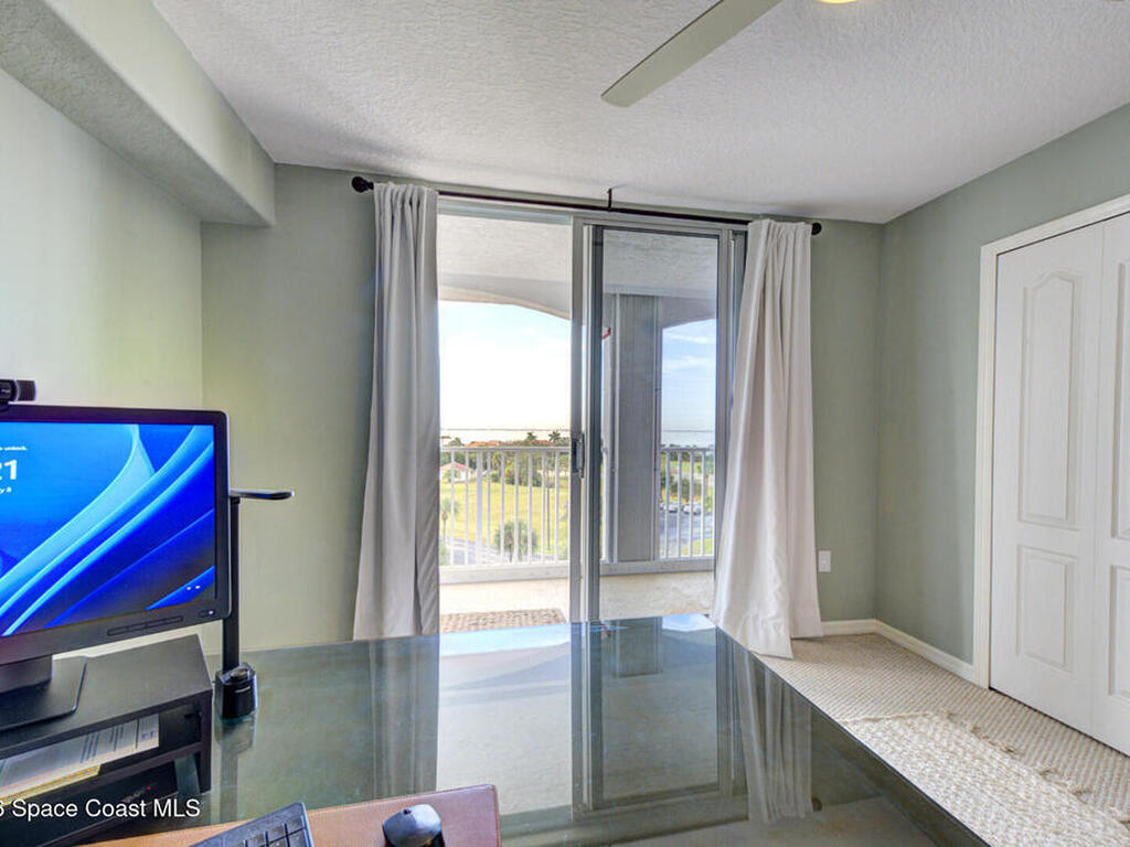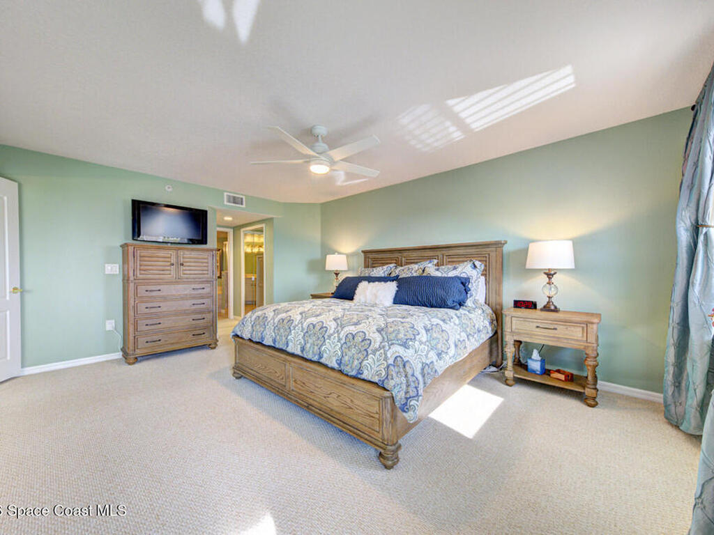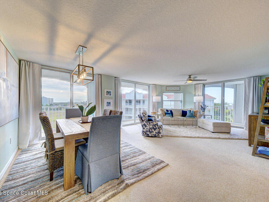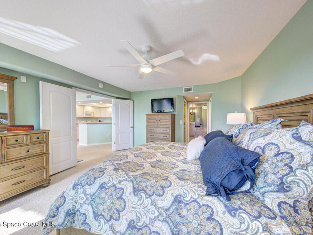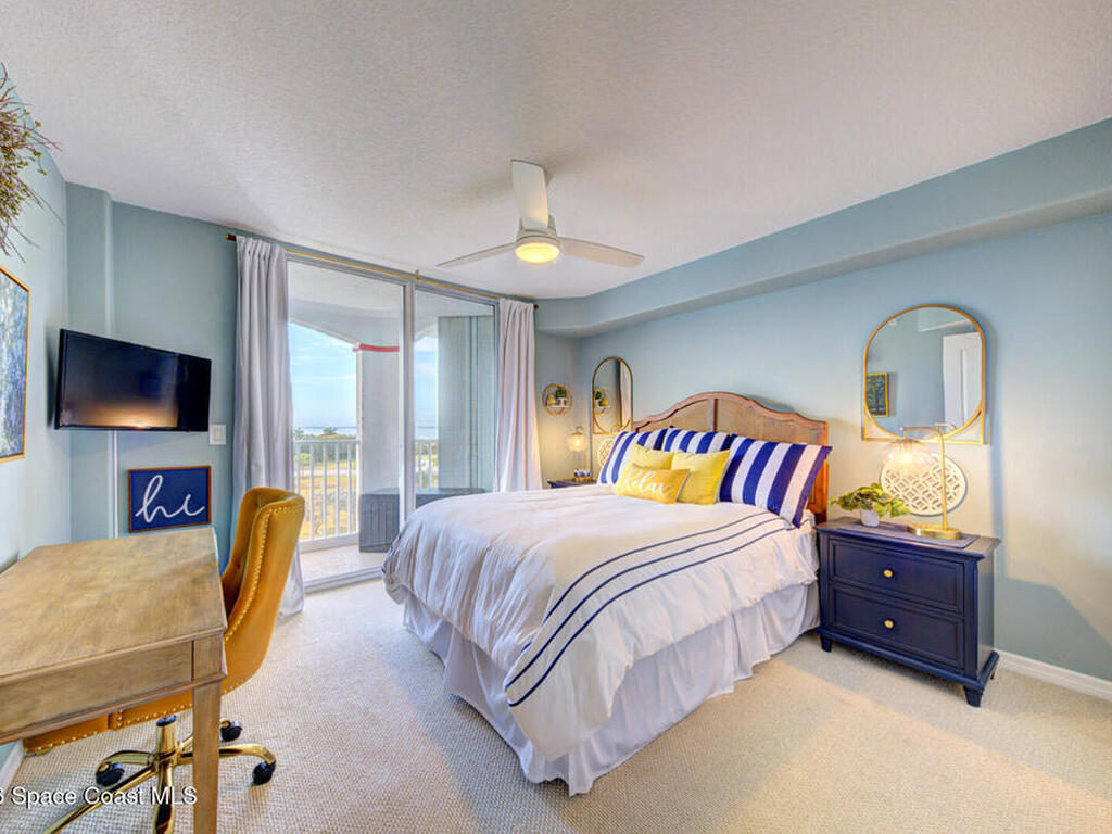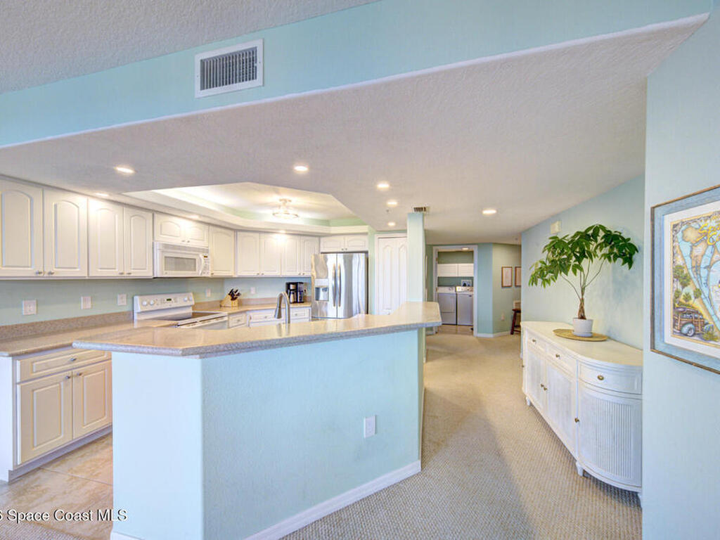 Experience penthouse living with panoramic river views in a VA-approved building, where stunning sunrises and sunsets meet tranquil nature and abundant wildlife. This residence welcomes you through double doors into an open, light-filled layout featuring a white kitchen, a spacious dining area, and multiple sliding doors with floor-to-ceiling glass throughout. Enjoy sparkling water views from every room and refreshing river breezes, all combining to create a serene, resort-style lifestyle.This 3-bedroom, 2-bath penthouse offers generous living spaces, a one-car garage located beneath the building, wrap-around balconies, a reverse osmosis water filtration system, and shutters throughout for added peace of mind. Community amenities include two pools, two Jacuzzis, exercise parks, kayak ramps, a recreation room, and a gym in each building.Perfectly situated near the port, quiet beaches, Manatee Park, and just minutes from the vibrant Cocoa Beach Pier.