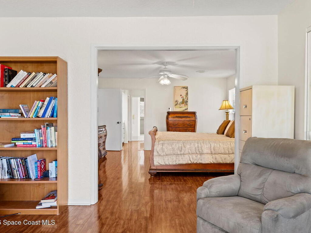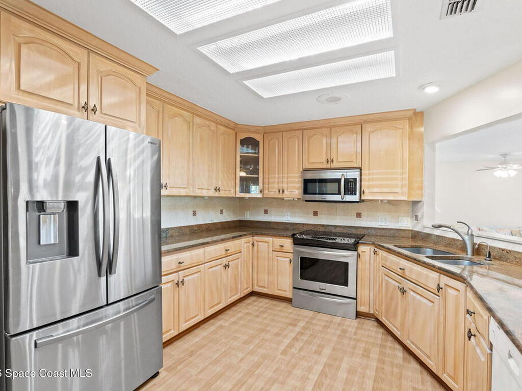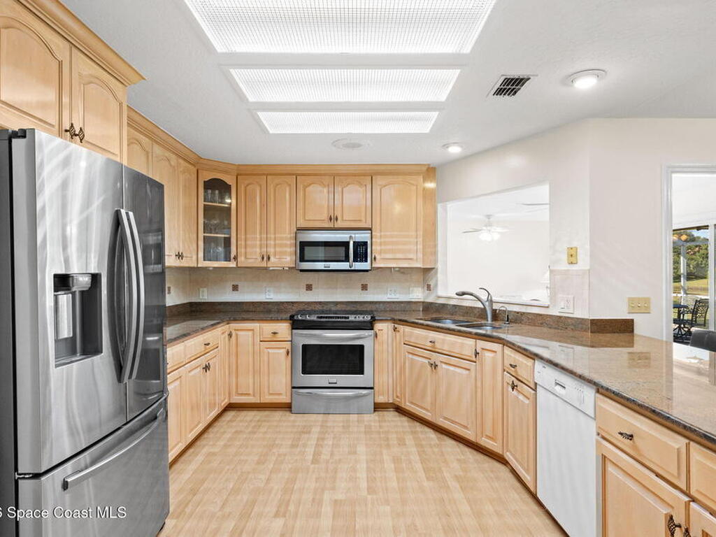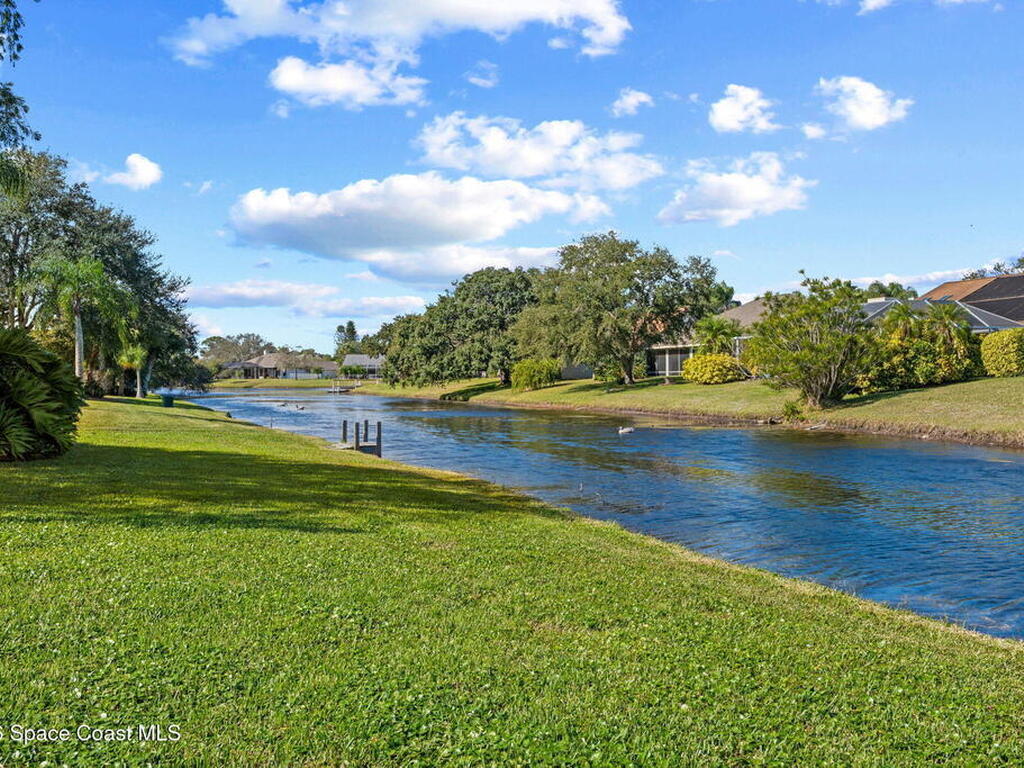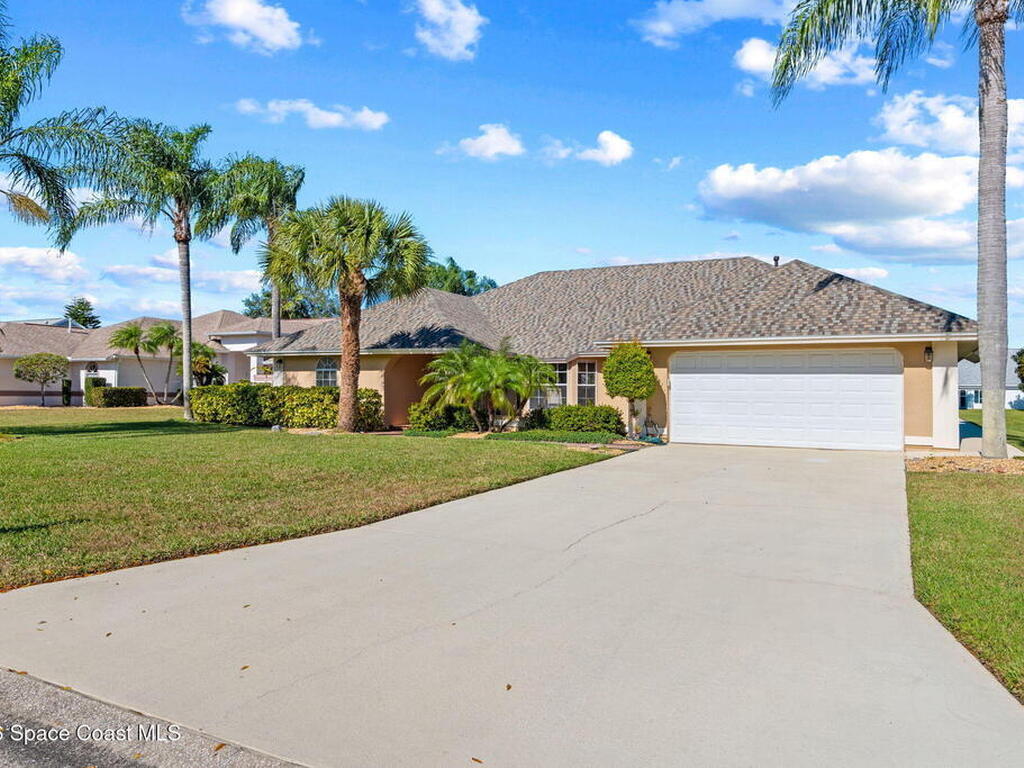 Discover this meticulous 3-bedroom, 2-bathroom ''hidden gem'' on a .28-acre waterfront double lot in Spanish Wells. This energy-efficient home features a brand-new roof (2025), and a fresh interior. The flexible open floorplan includes a spacious family room and kitchen with stainless steel appliances, all overlooking a serene lake and protected preserve. The primary suite offers two large closets, attached office and the garage easily fits two cars. Can be purchased furnished or unfurnished.Perfectly located near top-rated schools, Suntree Country Club, and Viera's best shopping and dining, this home offers the ultimate Florida lifestyle. Don't miss your chance to own this slice of paradise in a charming community of custom homes.