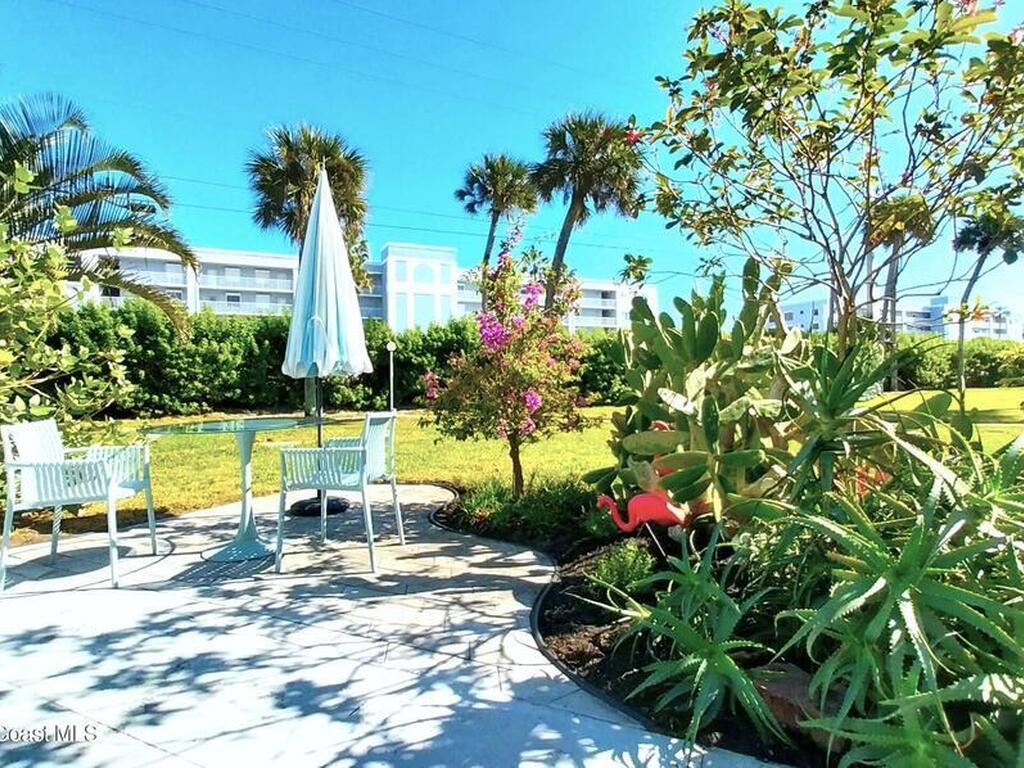 The open, efficient floor plan of this bright & airy coastal retreat extends beyond the sliding doors to an additional 120 sq. feet of private outdoor space facing the gardens & recreational areas of the 4.25 acre community property. This move in ready condo is well located on A1A at Seagull Beach Park.Ideal for singles, snowbirds, family time share or investment. Pet restrictions exist but don't appear to be enforced for house cats or small, well-behaved dogs. 3 mo. minimum rental per Assoc. rules.2024 Kitchen & Bath, 2023 A/C, New roof 2023, updated Olympic size pool 2024. Features include 9-foot ceiling, LED lighting, keyless entry, smart thermostat, paver patio & luxury vinyl floor.Satellite Beach is considered a safe, quiet beach town with highly rated schools & a strong community feel. It is less crowded & less commercialized than nearby Cocoa Beach or Melbourne Beach. Seller says all furnishings & housewares can stay, if needed, with a separate Bill of Sale.
