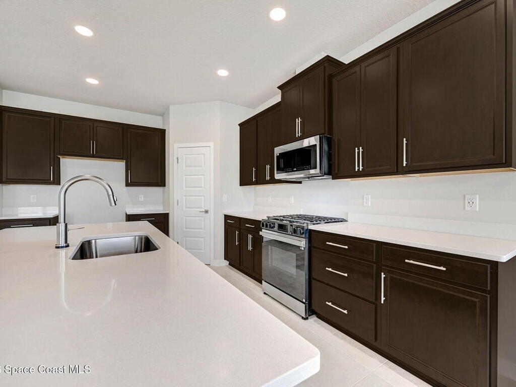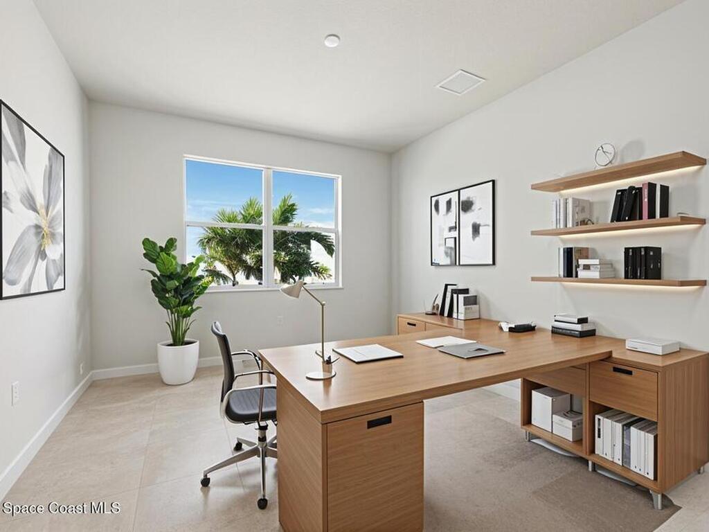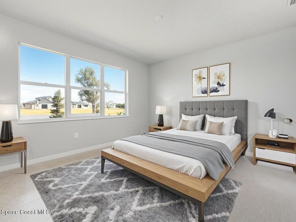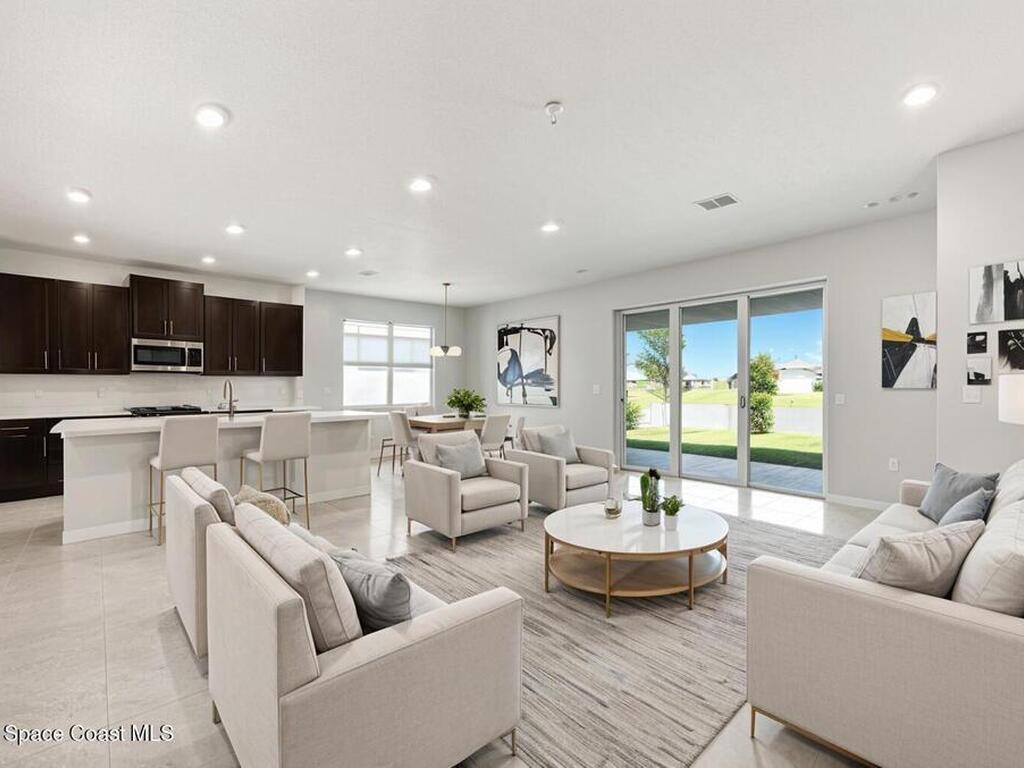 2025 Viera Built home in Crossmolina community with plenty space for a pool. This modern 3-bedroom, 3-bathroom residence includes a dedicated flex room/office, & tiles throughout. The bright, open floor plan flows seamlessly, highlighting a stunning kitchen complete w/quartz countertops, upgraded hardware, a large walk-in pantry, and a cafe area. The great room is illuminated by 6 recessed wafer LED fixtures. Retreat to the spacious main bedroom, which features an oversized walk-in closet. Built with peace of mind, the home boasts impact-resistant windows, full smart-home features, transferable 2-year builder plus 10-year structural warranty. As an owner in Crossmolina, you'll have access to a future community clubhouse and pool. You also have the option (not required!) to join the amenities at Addison Village. The home's prime location puts you just minutes from the new Publix & Costco, as well as The Avenue shops, dog parks, the Brevard Zoo, and a variety of dining & golfing options