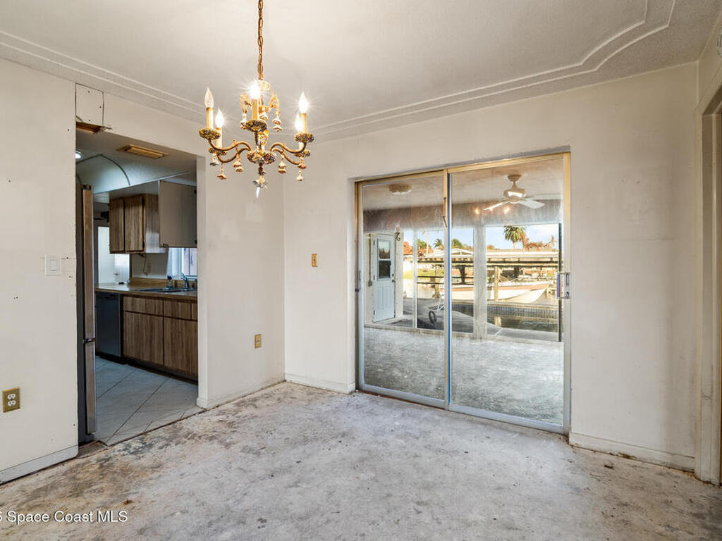 LOWEST PRICED Waterfront Pool home currently available with 2015 seawall/boat dock, 2019 roof and Boat in desirable Waterway Manor! Owners have stripped the floors ready for a renovation. Short boat ride right out to Sykes Creek and the Banana River and the Ocean! Prime neighborhood with Publix right at the entry. Property needs someone with a vision to make it their own but can't beat the neighborhood and waterfront!