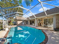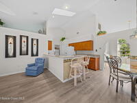 Welcome to 934 Osprey Lane, located in the desirable Pelican Harbour community of Rockledge, Florida. This well-maintained, beautiful brick home offers 3 bedrooms, 2 bathrooms, and 1, 785 square feet of comfortable living space, blending durability, efficiency, and Florida lifestyle living. Inside, you'll find vaulted ceilings accented by two skylights, filling the home with natural light and creating an open, airy feel. The interior features a combination of tile and luxury vinyl flooring, offering both style and easy maintenance. The updated kitchen features gorgeous cherry cabinets and beautiful granite countertops! It is also equipped with a gas range, perfect for home chefs, and is complemented by gas heat and a gas hot water heater for added efficiency. Step outside to enjoy your private outdoor retreat, featuring a large covered patio overlooking a large screened pool, ideal for relaxing or entertaining year-round. Hurricane protection for windows and patio. Roof 2019, AC 2015