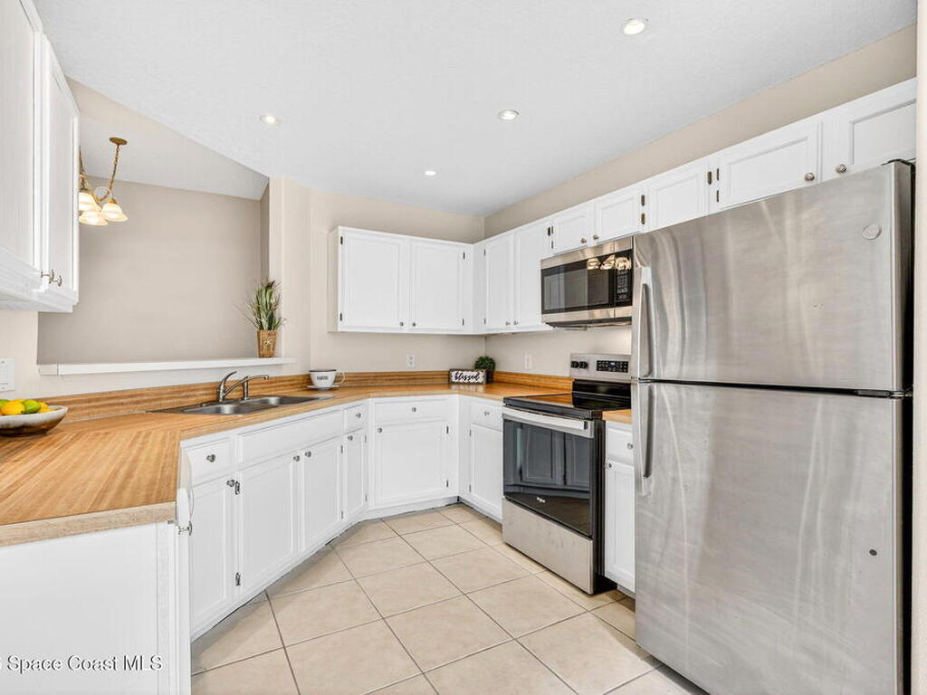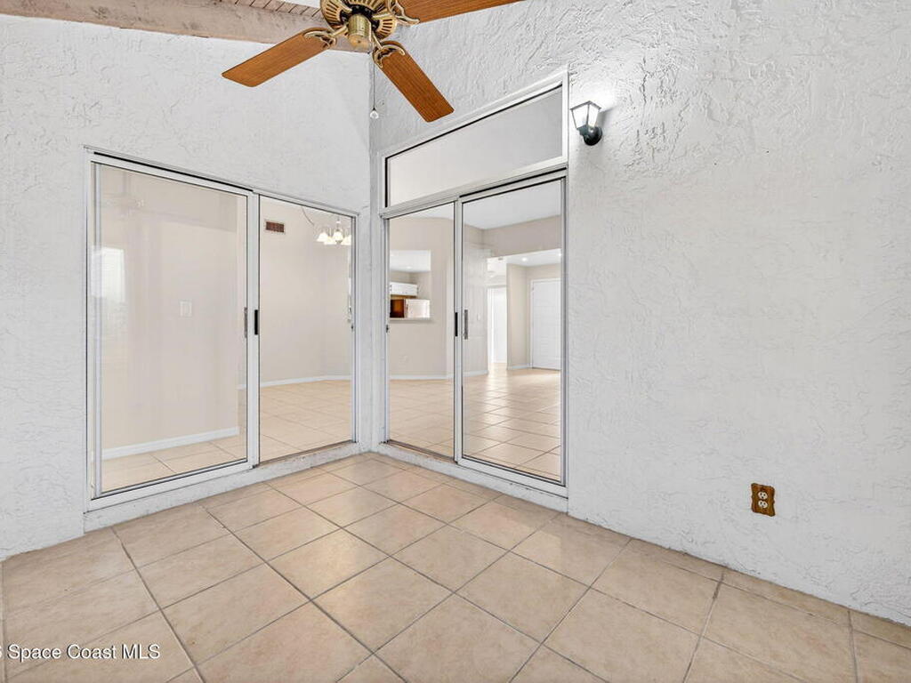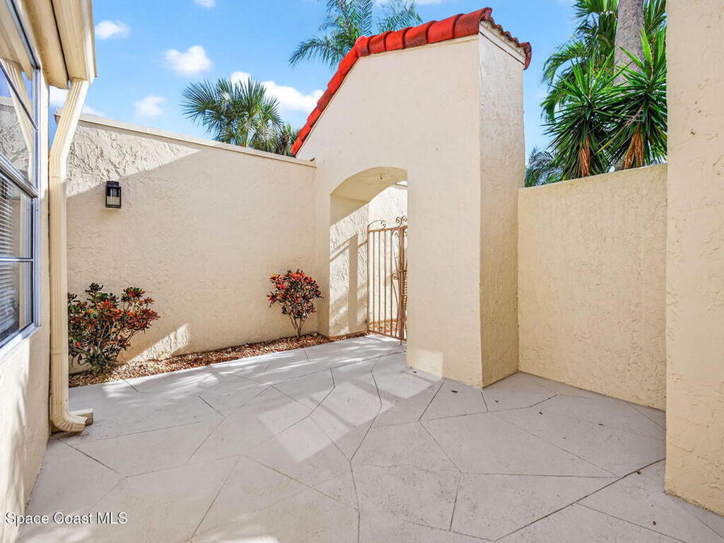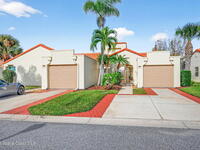 Charming One-Story END UNIT with Courtyard & Garage! Well-maintained 2-bedroom, 2-bath end-unit villa with a 1-car garage, offering easy one-story living and added privacy. Tile flooring runs throughout the home, and the updated primary bathroom adds a fresh, modern touch. Enjoy the enclosed back porch -- perfect for relaxing year-round -- and start your mornings in the generously sized front courtyard with a cup of coffee or evening glass of wine. This desirable community features a pool, tennis courts, and more, and is ideally located close to golf, walking paths, shopping, Patrick Space Force Base, and all major roadways. Plus, you're just a short drive to the beach!Don't miss this opportunity -- see it today!
