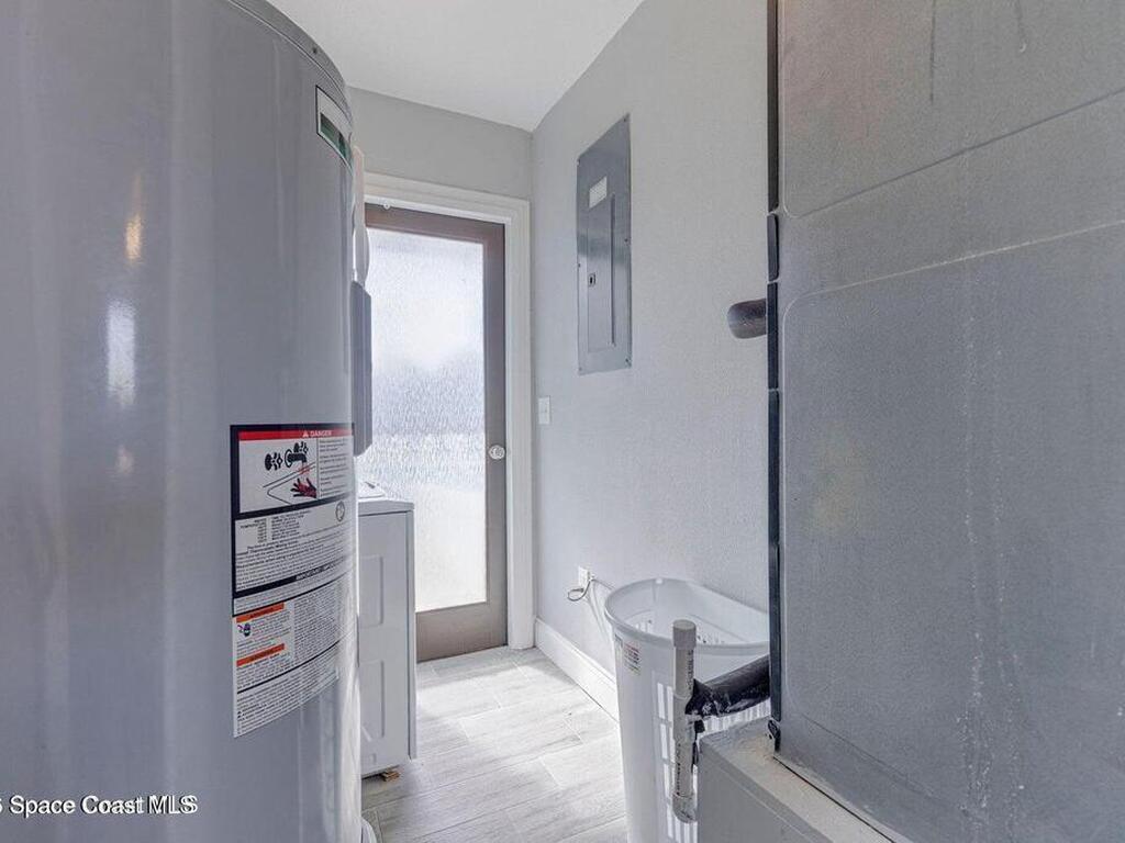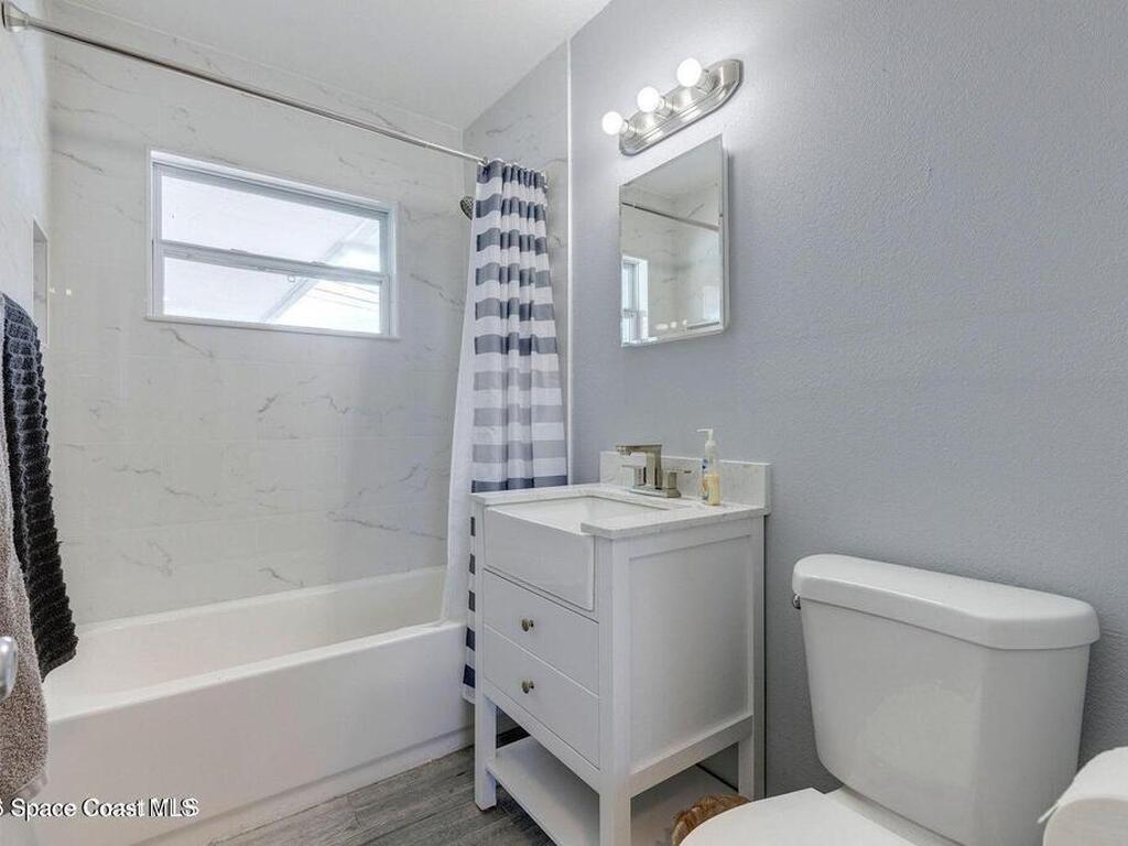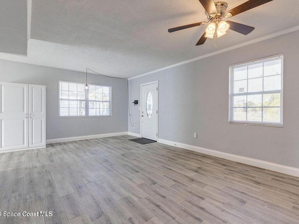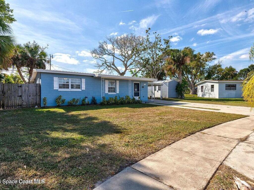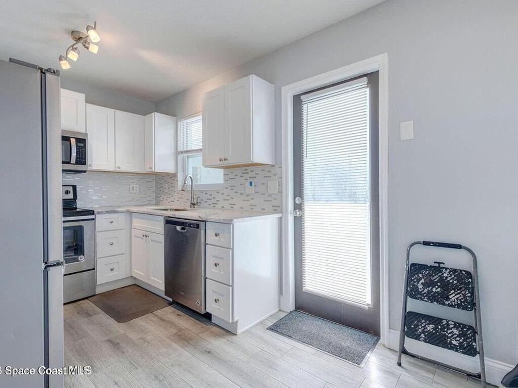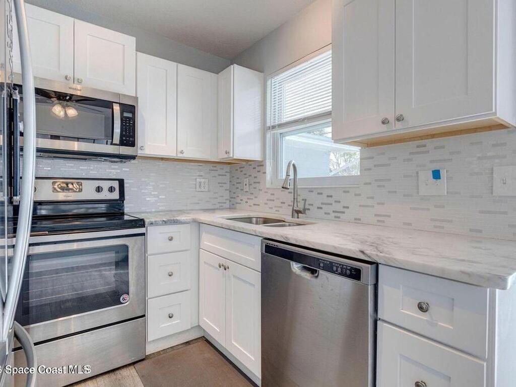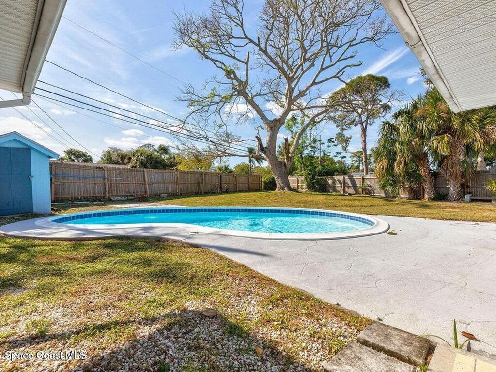 Recently remodeled 2-bedroom, 2-bath pool home ideally located in the heart of Port St. John, just minutes from the Indian River. Enjoy the rare opportunity to watch rocket launches right from the comfort of your front porch. This charming home boasts numerous upgrades, including a brand-new kitchen featuring solid soft-close cabinetry, granite countertops, a tiled backsplash, and energy-efficient stainless-steel appliances.The plumbing has been previously updated, eliminating cast iron sewer pipes for added peace of mind. Major systems including the A/C, roof, and hot water heater are approximately five years old. Beautiful wood-look tile flooring runs throughout the home, and both bathrooms have been tastefully updated. Additional recent improvements include updated windows, doors, ceiling fans, and light fixtures. Detached shed for your storage needs. Room sizes are approximate and should be verified by buyer. Don't miss this exceptional opportunity!