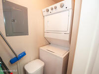 Dishwasher, Electric Range, Microwave, Refrigerator, Washer/Dryer Stacked