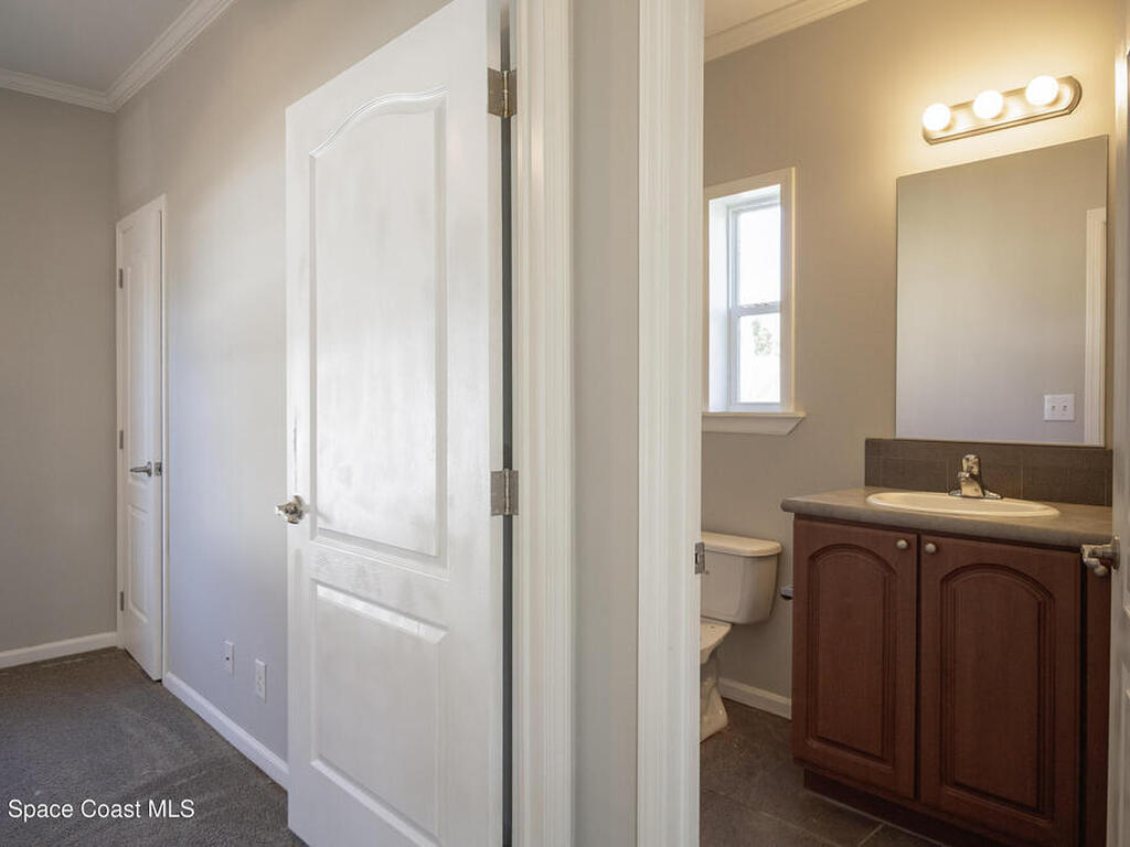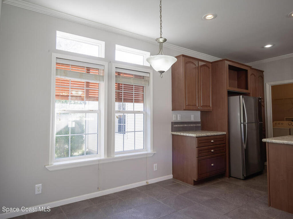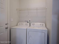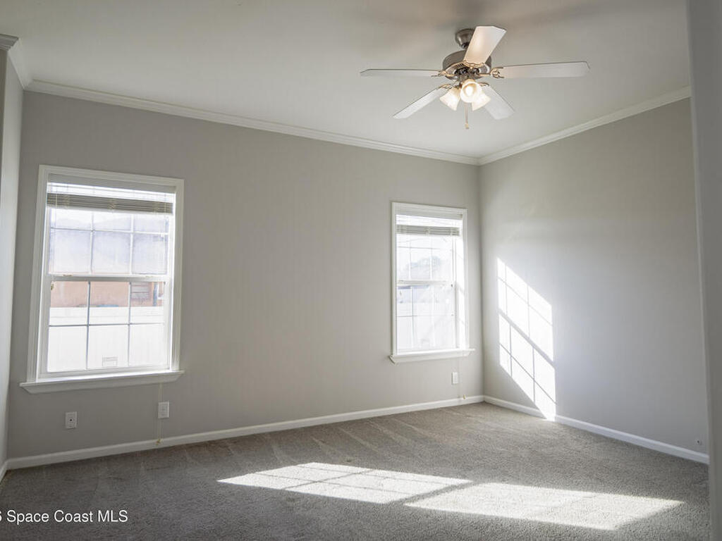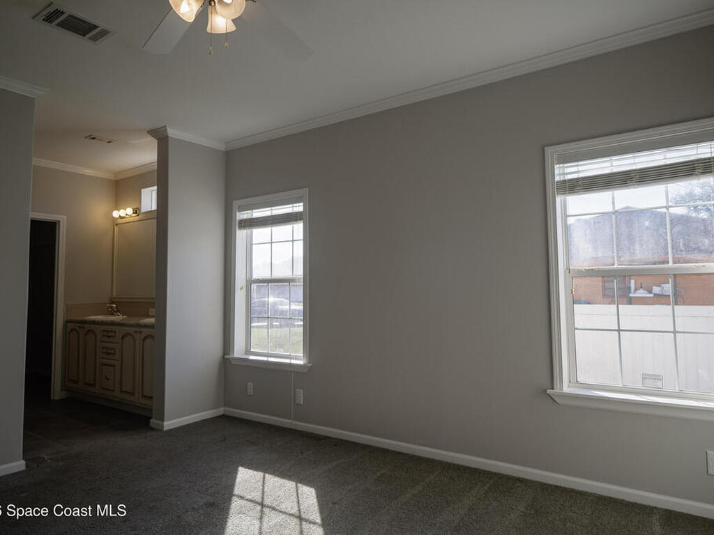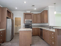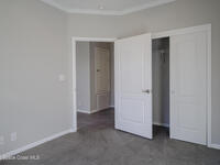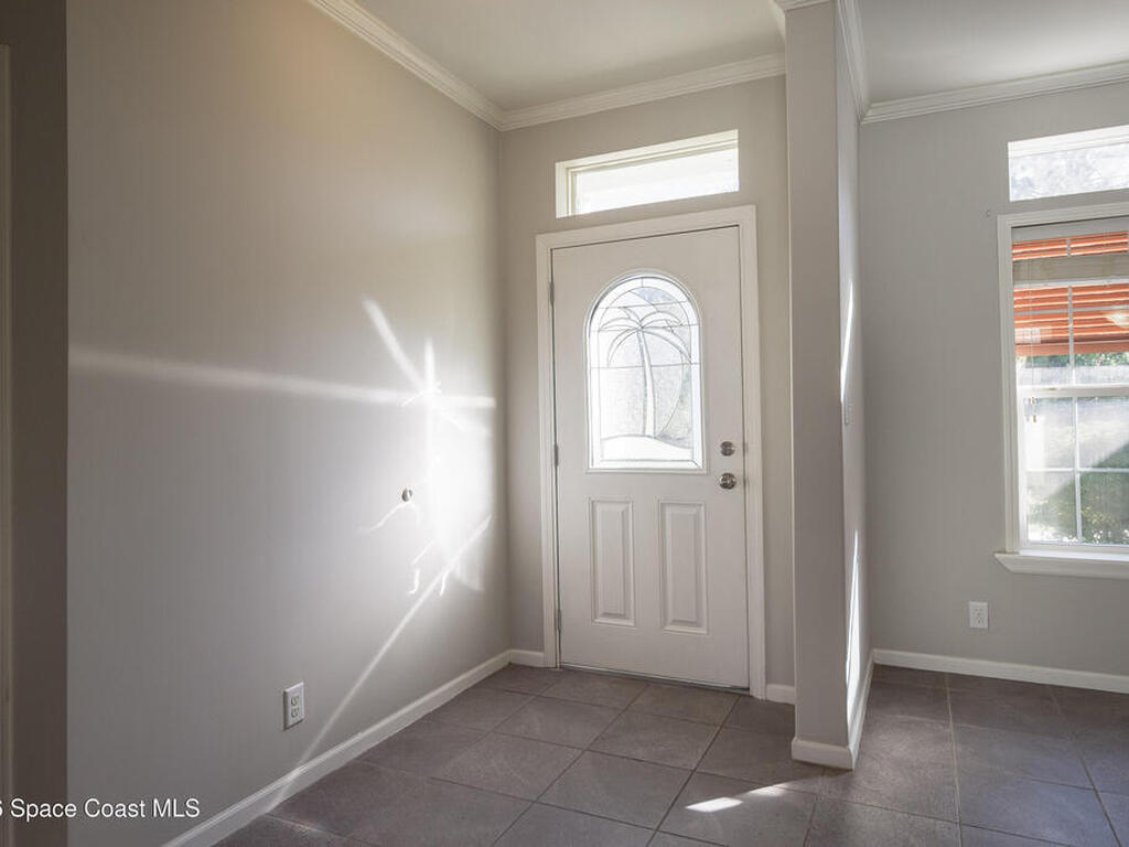 Beautiful 3 bedroom, 2 bathroom home for sale in Palm Bay. Don't miss the opportunity to own this well maintained, 10 year old home. Split layout with primary bedroom suite including new carpet, walk in closet, double vanity bathroom with shower. Two additional nice size bedrooms with ceiling fans and new carpet. The family bathroom has a tub/shower combination. Living room features a ceiling fan and crown molding. Nice size kitchen with lots of cabinets, stainless appliances, center island, breakfast bar adjacent to the dining room. Dining room walks out through the sliding glass doors to the rear patio. Two car garage and interior laundry that includes a washer and dryer. Ready to move in!