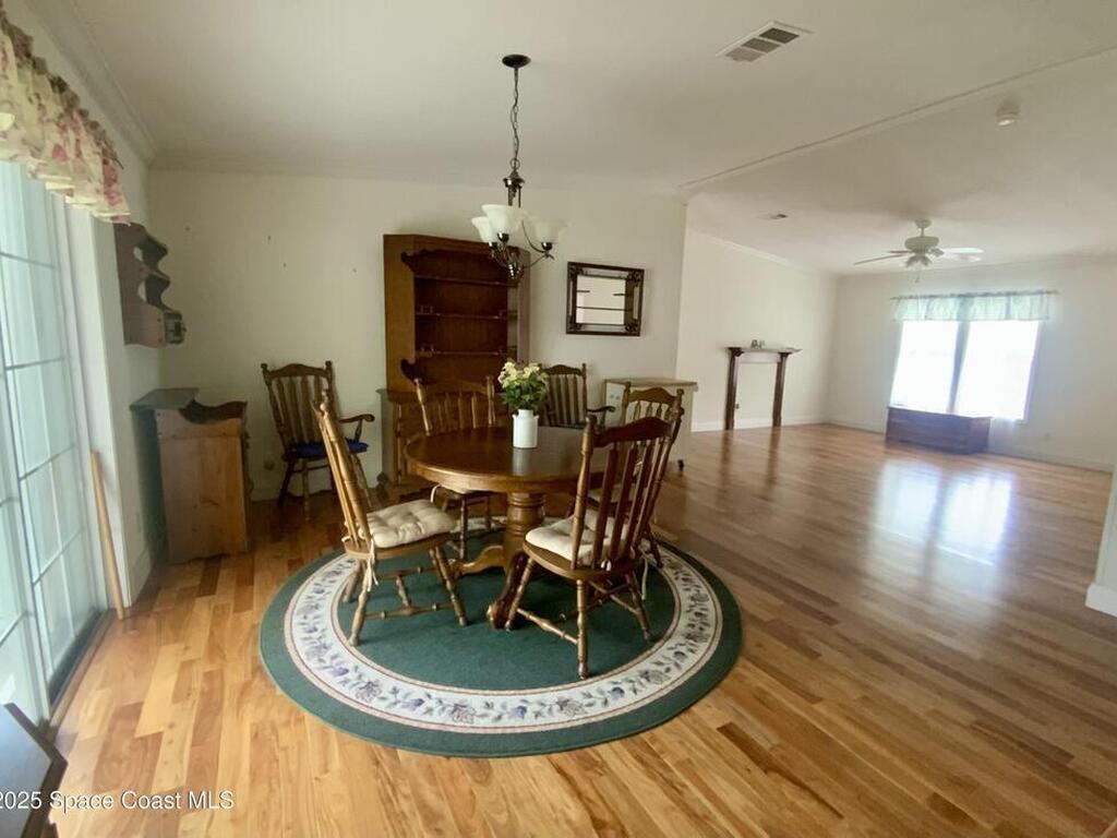 SPACIOUS 3BD/3BA HOME IN 55+ HOLIDAY PARK! Built to current hurricane codes, this home is vacant & ready for new owners. Notable features include a kitchen with plenty of cupboard & work space, & both the refrigerator & dishwasher were replaced in 2021. The master bedroom has a large walk-in closet & the master bath has double sinks, a separate stand alone shower & a tub/shower combo. Lovely hardwood flooring is throughout the living/dining area/hallway & master bedroom. There is a private space for a work-from-home office or perhaps for sewing or crafts, & a separate room perfect for a den/or man-cave. The inside utility room provides for more storage, & the washer & dryer are staying. For enjoying morning coffee or outdoor entertaining, there is a nice screened-in porch off the kitchen. New A/C in 2017, new roof 2020 & the home comes w/ a transferable home warranty! Located in a gated adult community w/ 2 pool's, lots of activities & NO LOT RENT & only about 20 mins from the beach!
