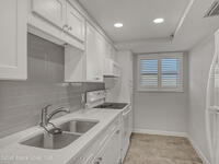 Welcome to Paradise! Living up to it's moniker, this gorgeous two bedroom, two and a half bath condo is tastefully updated and just a two minute walk to Paradise Beach (aka the local's beach). Featuring an updated kitchen with LED lighting, quartz countertops, white cabinets, tile back splash & floors. impact rated windows and brand new a/c system, new interior paint, slider blinds, plantation shutters, and plenty of storage space throughout. Both bedrooms are spacious, with private full baths & walk-in shower in master suite. Enjoy sunshine, surfing, & great rocket launch viewing, walk to restaurants, and shopping. Sip your coffee in the morning on your private porch overlooking the beautifully maintained pool. From tennis courts, sauna and a shuffleboard court, activities abound. Offered turn-key furnished, bring your toothbrush and immediately begin to enjoy all that Florida beach life has to offer.