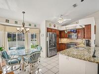 Located in a resort-style country club community with top-notch amenities, this 3-bedroom, 2-bath Phoenix model pool home offers a comfortable split floor plan and a great Florida lifestyle. The kitchen features stainless steel appliances, granite countertops, solid wood cabinets, and overlooks the family room--ideal for everyday living and entertaining. Wood laminate and tile flooring run throughout the home, complemented by vaulted ceilings. The spacious primary bedroom includes sliders leading to the lanai and pool. The updated primary bath offers a soaking tub, roll-in tile shower, and dual modern vanities. The guest bathroom has a shower/tub with a glass door and a clean, minimalist vanity design. Additional features include updated low-E windows and accordion shutters surrounding the home for added efficiency and storm protection. 18-hole golf course, shuffleboard, bocce ball, tennis courts,