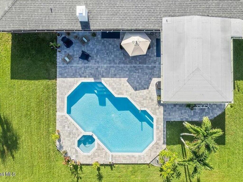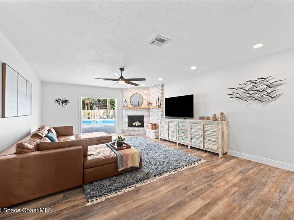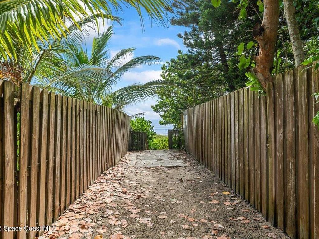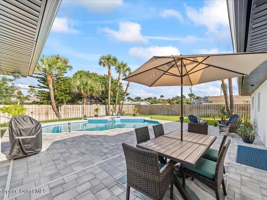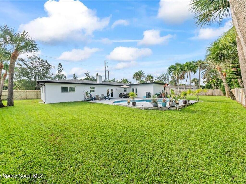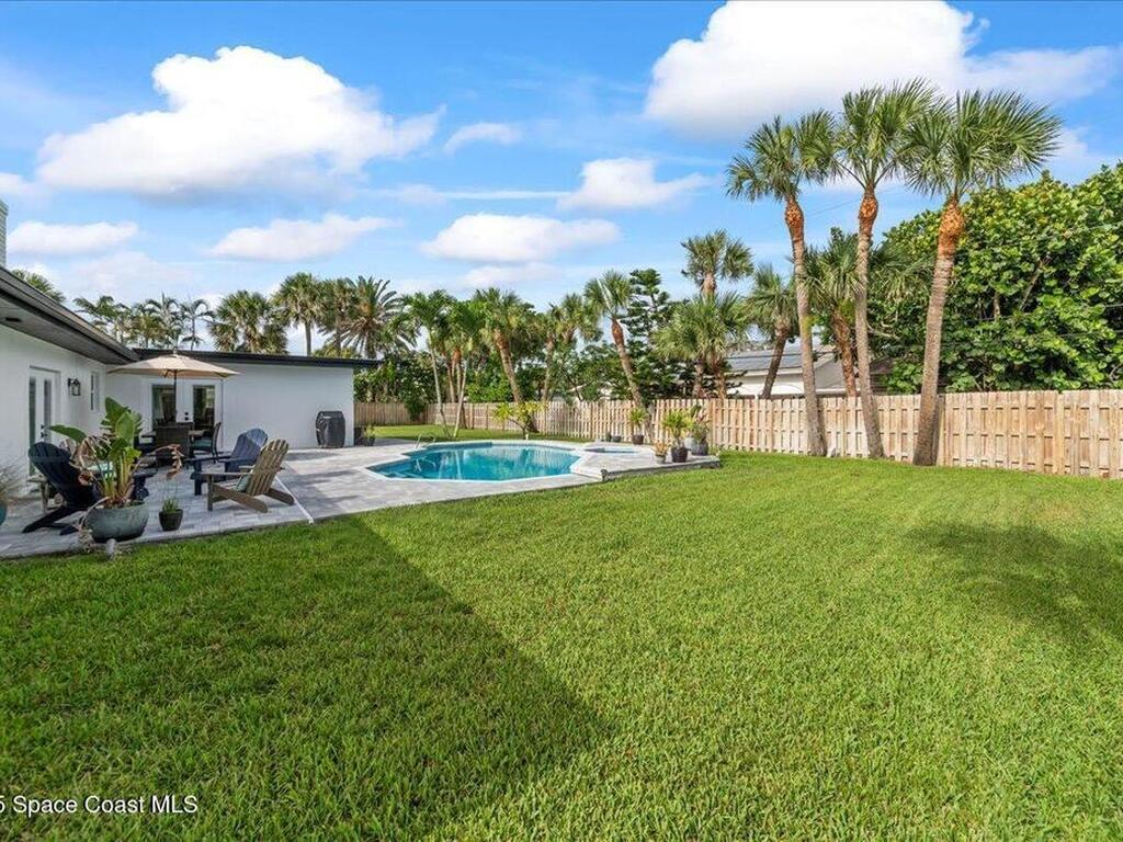 Coastal living in Melbourne Beach. Updated 4BD/2BA, 2, 394 SF home on rare 0.42-acre lot in the SoFA enclave. Deeded beach access shared by just 20 homes offers a quiet, private path to the sand. Expansive fenced yard lives like a private resort w/ premium Freestone pebble-finish saltwater pool/spa, upgraded paver patio, & space to relax or entertain. Interior features include lime-washed brick wood-burning fireplace, built-in kitchen banquette, & light-filled living w/ indoor-outdoor flow. Major updates: newer roof, new Trane HVAC, impact windows, fresh exterior paint, paver driveway, & updated PVC water service line. Rare assumable 4.5% VA loan for qualified veterans.