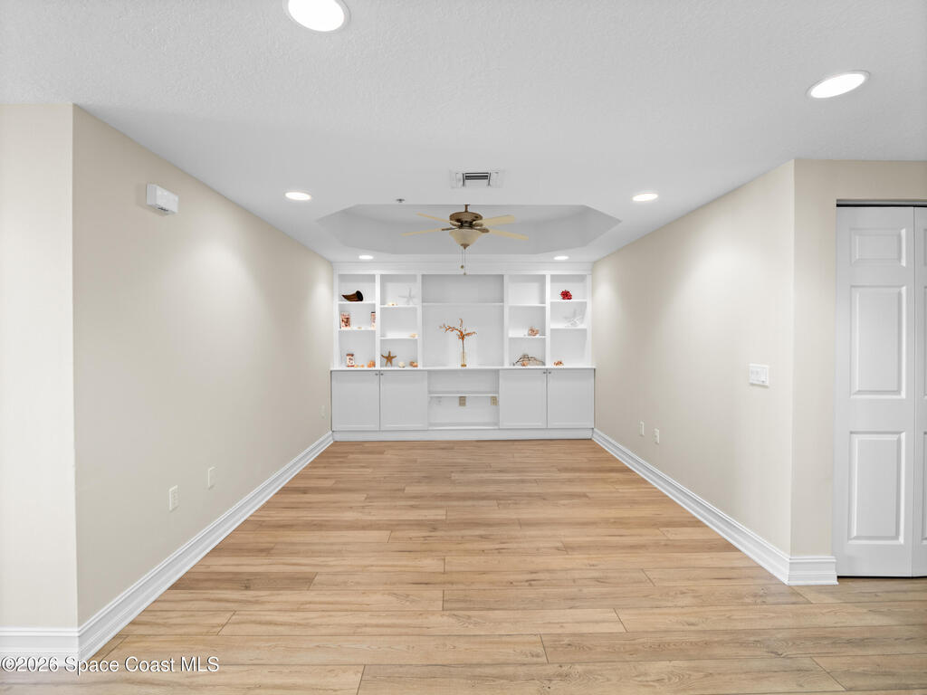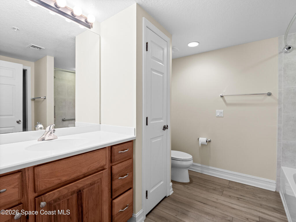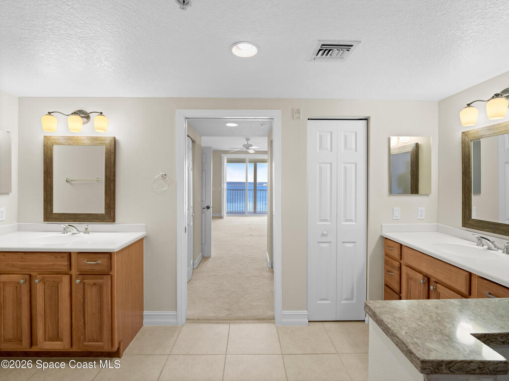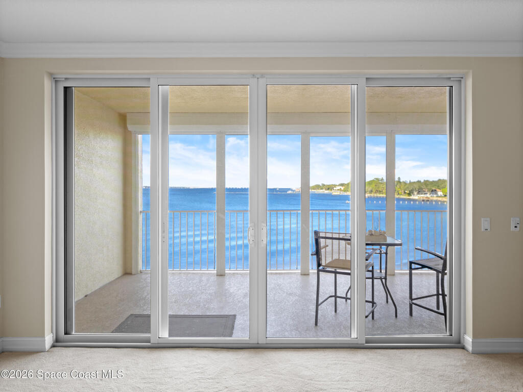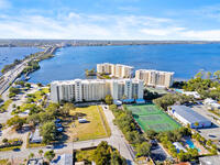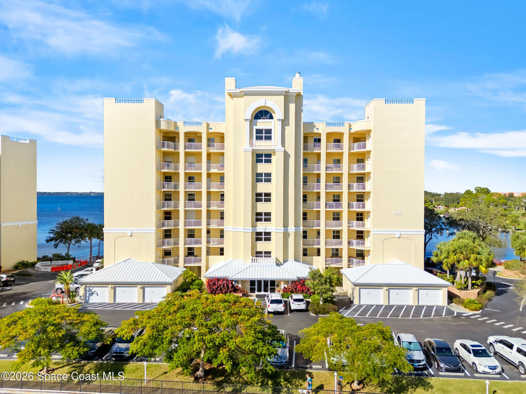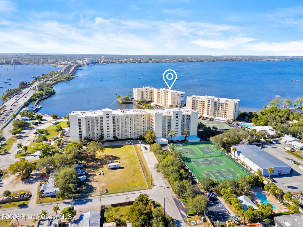 This Island Pointe residence elevates waterfront living with thoughtful updates and a layout designed for comfort and style. With prime exposure, this 3 bed, 2 bath unit overlooks the Indian River. Enjoy sweeping views of sunsets, rocket launches, & wildlife. The spacious floor plan includes a flexible area for a den or formal dining, and the entire unit has been freshly painted. Luxury vinyl plank flooring adds a modern feel throughout. The kitchen features solid wood cabinetry, solid surface countertops, updated appliances, and a moveable island for cooking or entertaining. The primary suite includes an updated bath with a walk‑in shower. The balcony has hurricane shutters, and the unit includes a 1 car garage under the building plus exterior parking. Amenities include a clubhouse with meeting rooms, library, sauna, gym, kitchen, dining area, and covered patio. Both pools are renovated, and the new south‑end sports deck offers pickleball, tennis, and basketball! Welcome home!