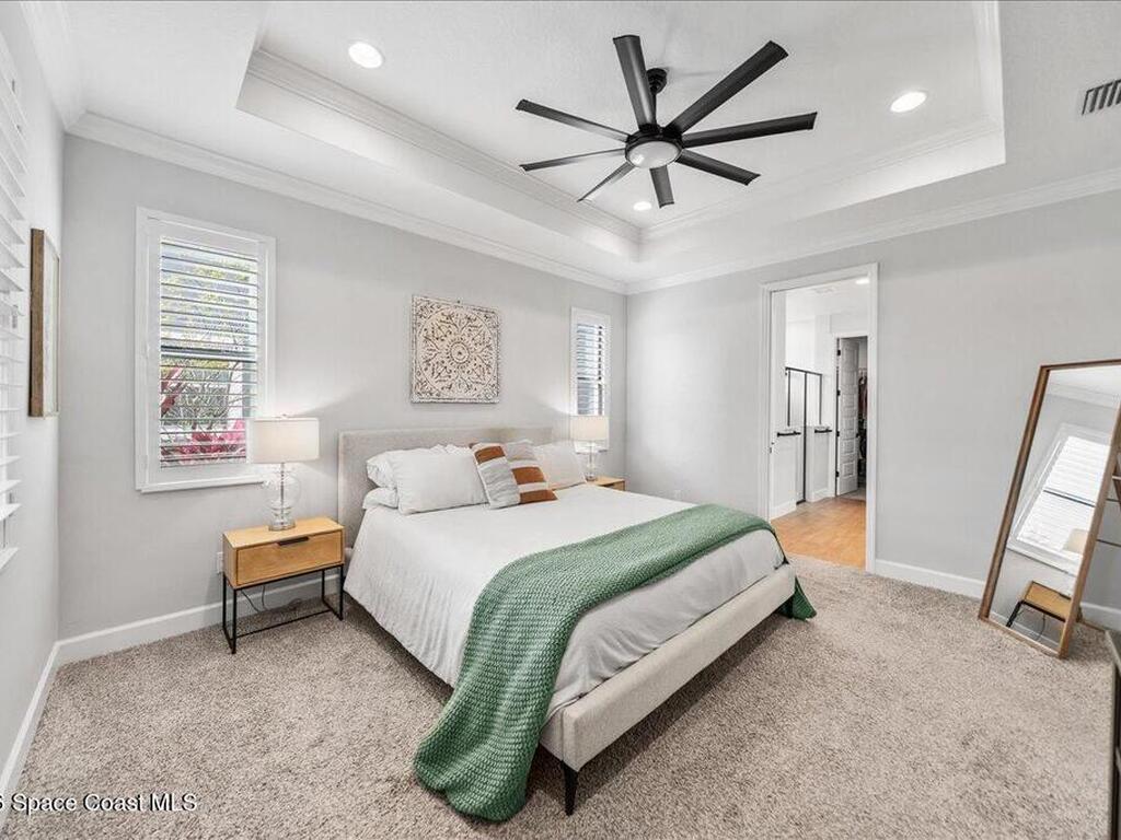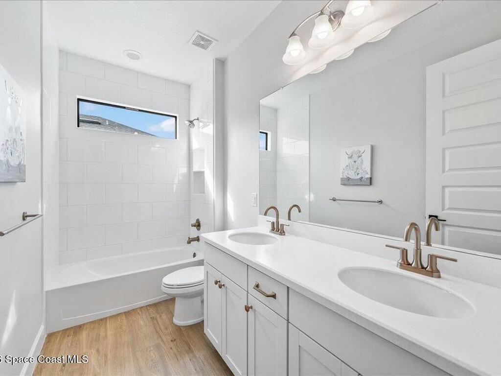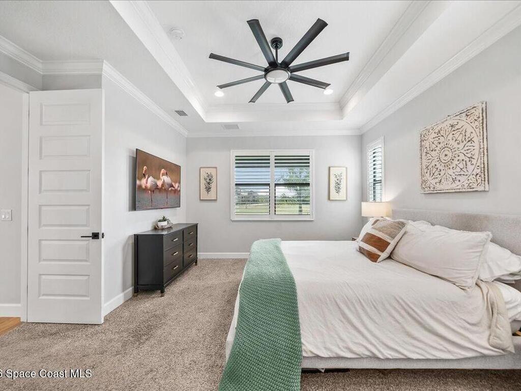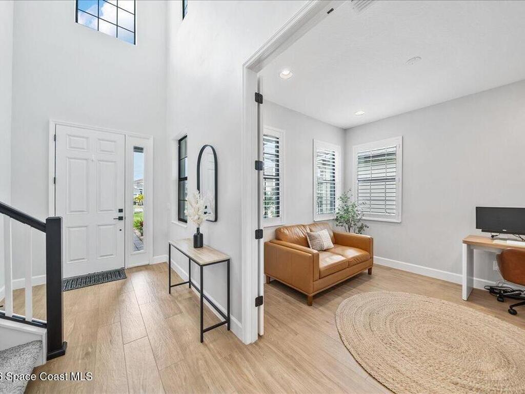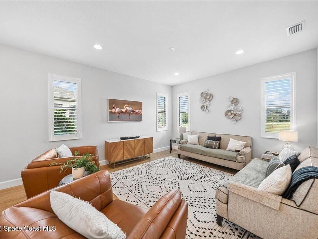 Welcome home to Viera! This 4 bedroom home has an additional designated office and 3.5 bathrooms. This home has about every upgrade you can think of from plantation shutters, rain shower, pot filler, quartz countertops, and level 6 flooring, you will not want to miss out on this gem! Both the master bedroom and office are located on the first floor for added convenience and privacy. Step outside and you'll find a screened in porch, a great spot to relax - plus easy access to neighborhood trails and parks nearby. The back has a HUGE open area for added running and play. Viera lifestyle is hard to beat with access to Addison Village Club, two swimming pools, tennis courts, pickleball, restaurants and shopping, you may never want to leave this one mile radius! This home is also zoned for all Viera schools with Viera Elementary just a short golf cart ride away! Welcome to the perfect combination of community, convenience, and fun!