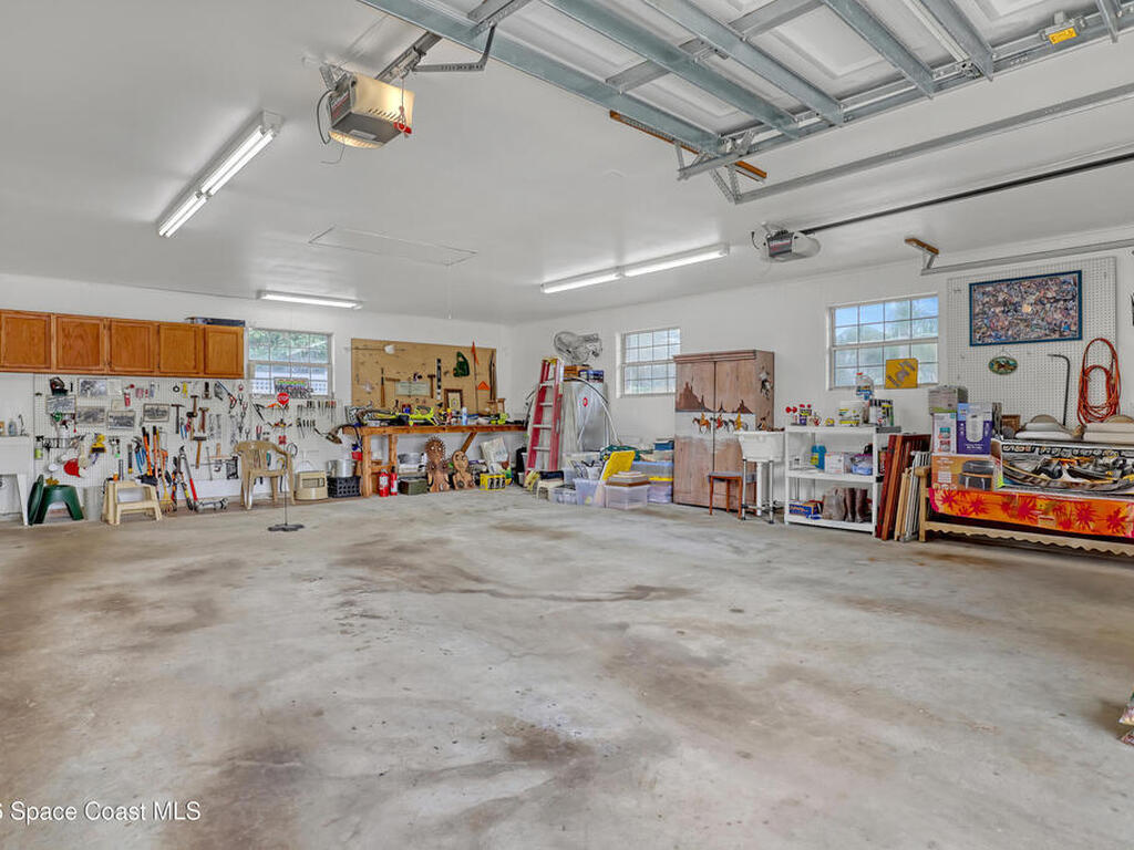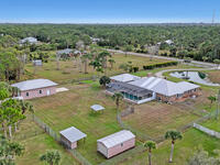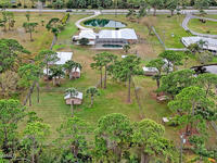 Beautiful BRICK pool home on amazing 2.5 acre property. 1100 sq ft detached workshop/garage w/10x16 overhead garage doors, plus separate workout room/office under AC. Plus 800 sq ft attached garage. Huge tropical screened pool/patio area w/covered porch, great for entertaining. Gas whole house generator. Accordion hurricane shutters. Tankless gas water heater. Nice eat-in kitchen w/quality appliances, raised panel solid wood cabinets & granite countertops. Tile floors throughout. 2 gas fireplaces. Primary bedroom features huge walk-in closet, double vanities, jacuzzi tub, separate shower & access to pool. Property is completely cleared, fenced, & pretty high & dry. Private gated entrance as well. Metal roof. 2 additional sheds. Lots of house, pool, land & garages for the money. Great opportunity if you're looking for a very special property. Won't last.