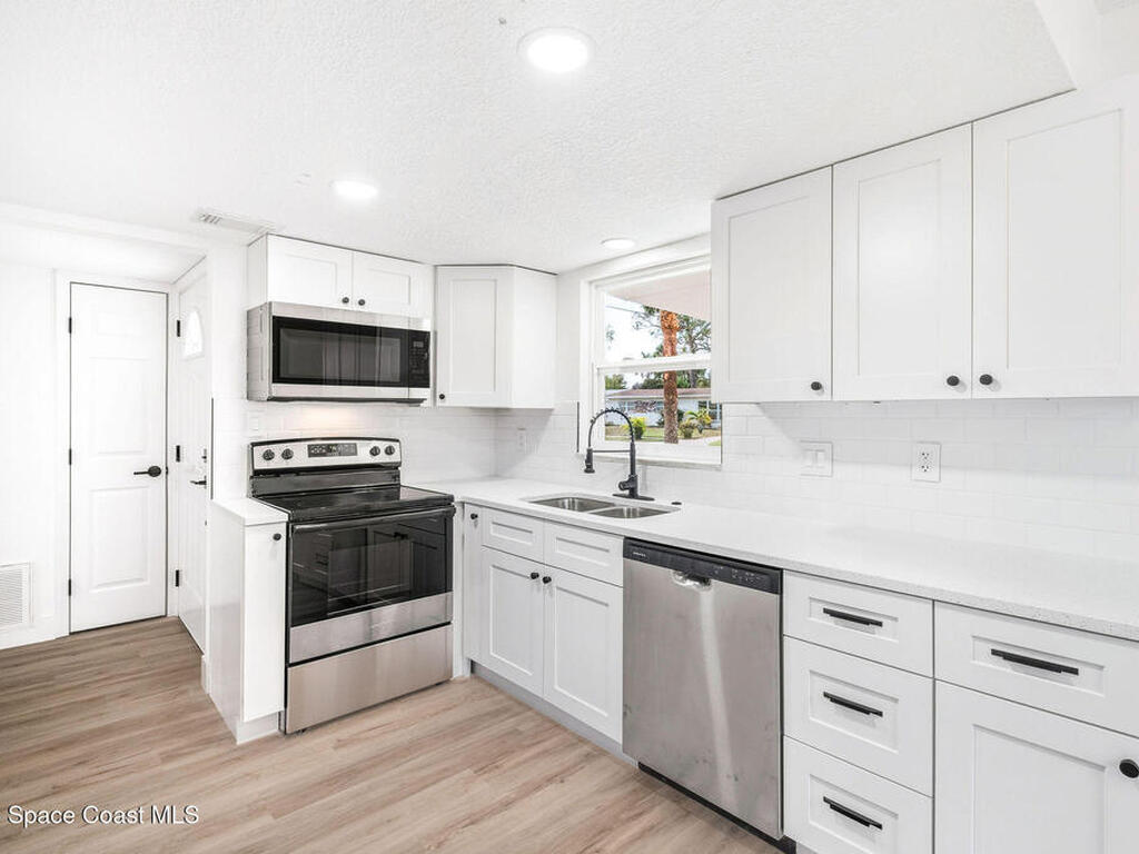 Welcome to this beautifully updated three-bedroom, two-bath concrete block home, perfectly suited for a small family or first-time homebuyer. Conveniently located just a short drive from the Indian River, this home offers both comfort and peace of mind with numerous recent upgrades throughout. Major improvements include a brand-new roof installed in 2024, updated windows, and new flooring that enhances the home's modern appeal. The kitchen has been tastefully renovated with new countertops and brand-new appliances, making it ideal for everyday living and entertaining. Both bathrooms have been updated with clean, contemporary finishes. With its solid construction, thoughtful updates, and move-in-ready condition, this home provides an excellent opportunity to enjoy Florida living in a well-maintained and welcoming space.