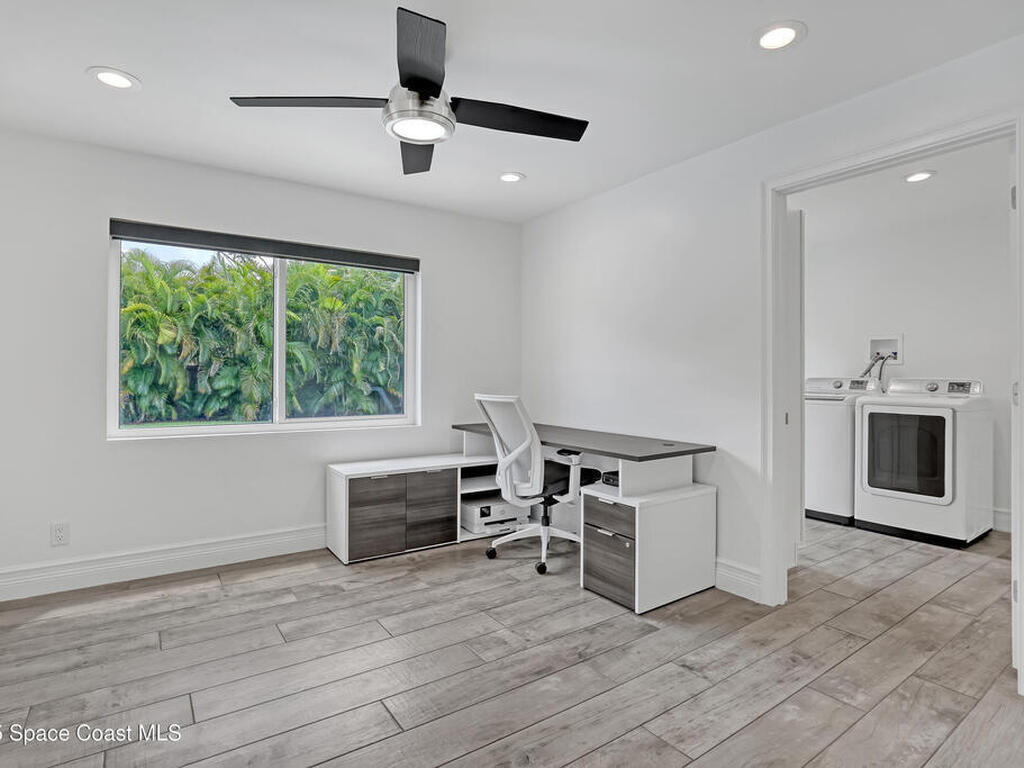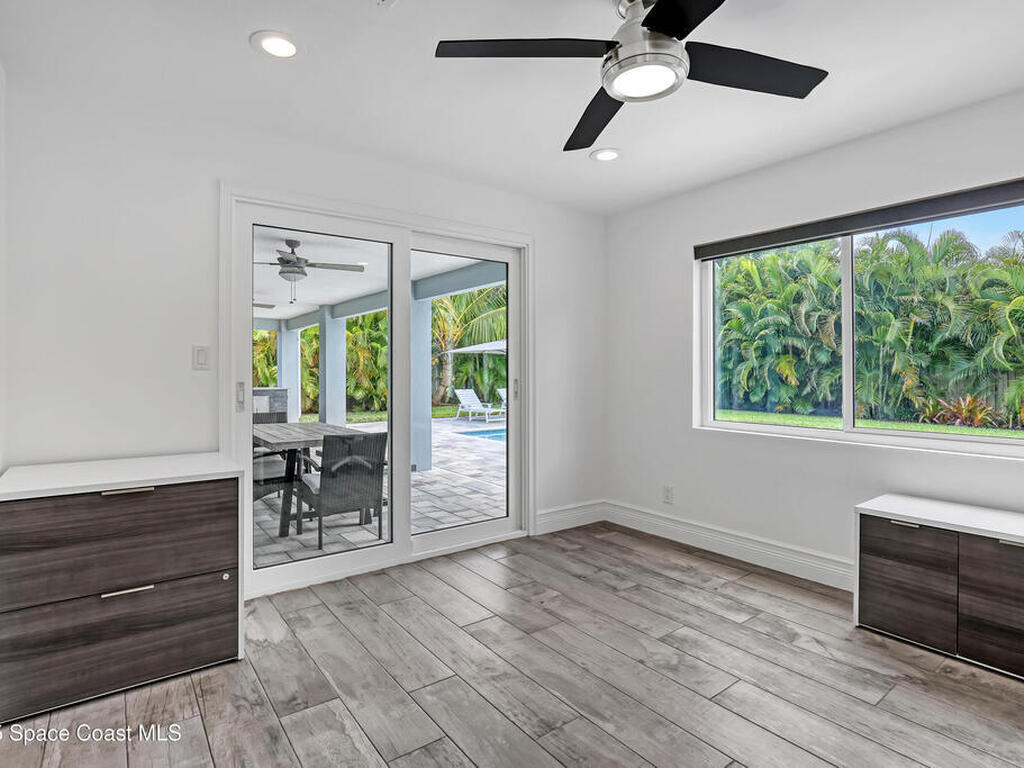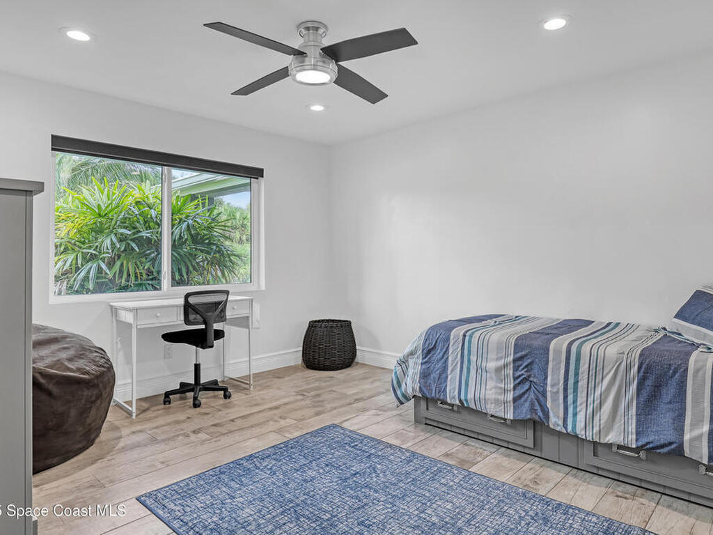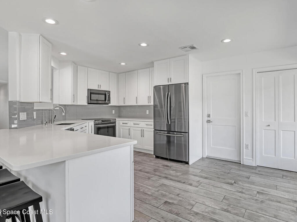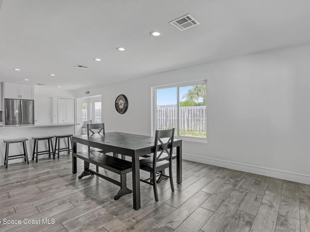 Welcome to Beachside Living at Its Best! Step into paradise with this beautifully updated 3 bdrm, 2 bath, 2 car garage home located just a short stroll from HOA deeded beach access. From the moment you enter, you'll be captivated by the spacious open floor plan featuring a light-filled living & dining area with recessed lighting, sliding glass doors, & a large skylight. The 2019 updated kitchen is a chef's dream, offering quartz countertops, soft-close drawers, 42'' cabinets, black SS appliances, pantry & breakfast bar. A cozy breakfast nook w/ built-in seating & storage adds extra charm & functionality. Retreat to the primary suite, which includes custom walk-in closet & large bonus room w/ sliding doors leading to the pool. The adjoining laundry room offers ample storage & includes washer/dryer. The luxurious primary bath features a double-sink vanity, two-person walk-in shower & a solar tube for natural light. Enjoy endless outdoor fun in the 2021 heated