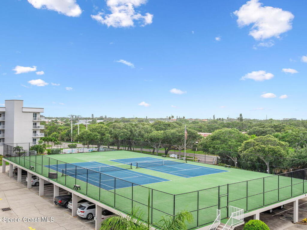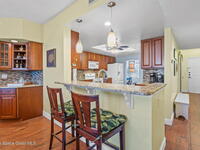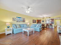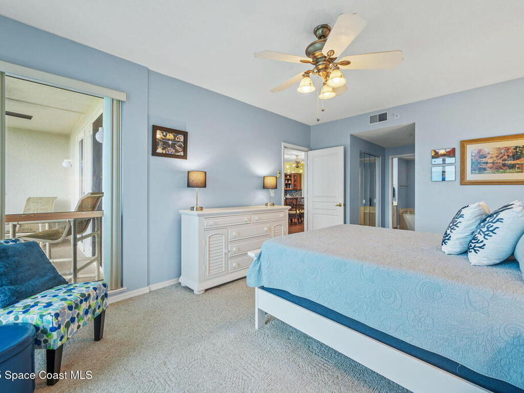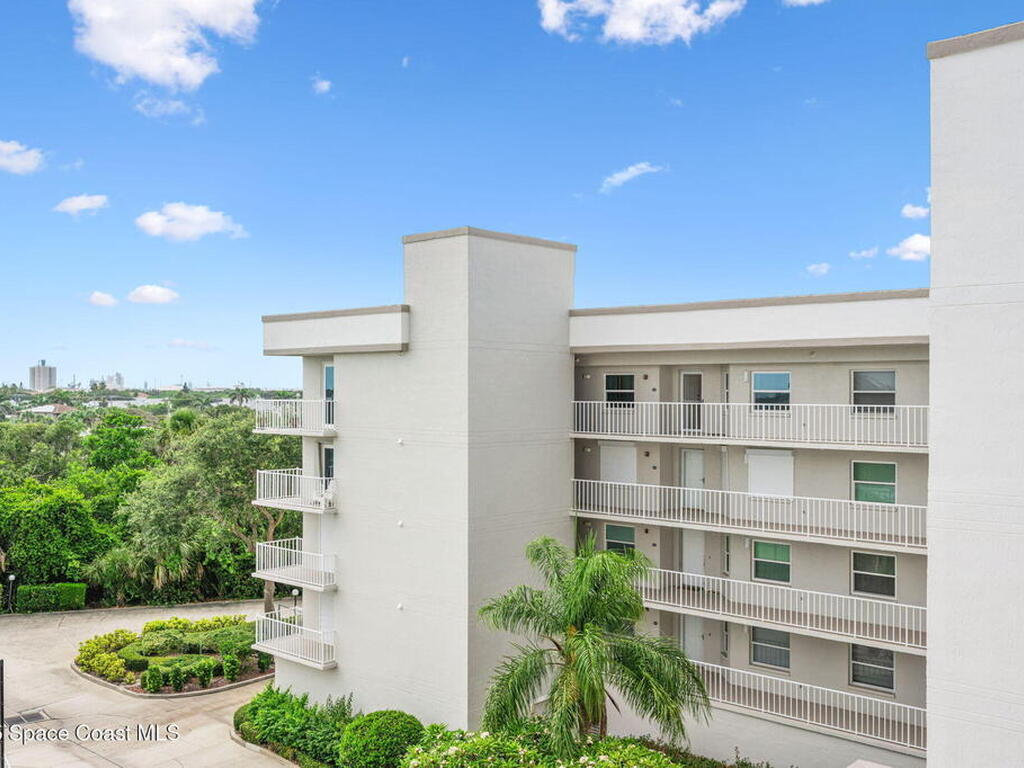Experience COASTAL LIVING at its finest in this top-floor OCEANVIEW PENTHOUSE at the desirable Ocean Oaks complex in CAPE CANAVERAL. This beautifully appointed 2-bedroom, 2-bath condo also features a versatile flex room with sliding barn doors, perfect for a home office or guest space.Enjoy front-row seats to breathtaking ROCKET LAUNCHES, serene views of lush green space, and the tranquil sound of ocean waves while you watch the tide roll in. The spacious living area opens up to panoramic vistas, where you can watch cruise ships drift by and feel the fresh sea breeze. The updated kitchen boast granite countertops, ample cabinet space, a coffee station, and a large pantry. Stylish tile floors throughout add to the modern coastal charm. The primary suite is a true retreat, offering spectacular ocean views, his & hers closets, dual vanities, and a luxurious jetted tub--perfect for unwinding after a long day on the beach! Includes a 1 car under building oversized garage!