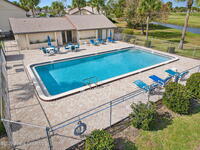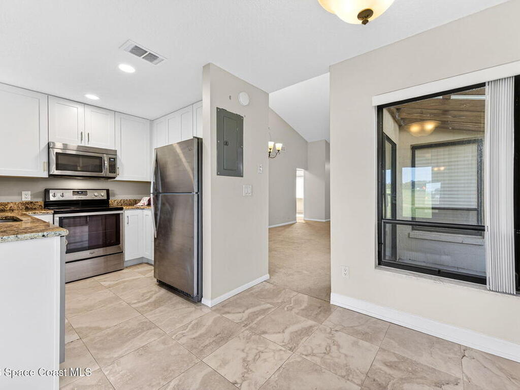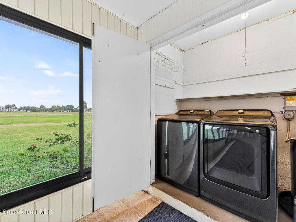 Enjoy maintenance-free Florida living on the Harbor City Golf Course in this well-appointed, rare, First Floor, 2-bedroom, 2-bath end-unit condo all on with peaceful golf course views! The home features an updated kitchen with granite countertops and stainless-steel appliances, updated bath vanities and a spacious screened patio plus a separate fenced lanai--perfect for relaxing or entertaining. Recent upgrades include a new A/C (May 2025) and a washer and dryer installed in February 2024, along with a newer roof for added peace of mind. Community amenities include a swimming pool and clubhouse, with internet, cable TV, water, sewer, trash, and pest control all included. Conveniently located close to shopping, dining, and everyday essentials, this condo offers comfort, convenience, and the ideal Florida lifestyle.