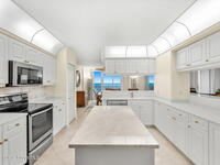 Oceanfront positioning & multiple balconies bring a rare mix of open-water views & light from the south & west, with a layout that feels cared for & quietly pristine. The open living & dining area flows directly to an ocean-facing balcony with accordion shutters, keeping the shoreline front & center, while a separate office adds a dedicated space for work, reading, or overflow guests. The eat-in kitchen is arranged around a storage island & pantry closet, with stainless appliances approximately three years old. The primary suite includes two mirrored closets & a private south-facing balcony, paired with an ensuite bath featuring dual vanities, a makeup station, jetted tub, glass shower with bench, a private toilet area & a linen closet. Two guest bedrooms offer mirrored closets, with one opening to a west-facing balcony, supported by a full guest bath with a tub & shower combination plus a separate powder room nearby. Laundry includes washer, dryer & utility tub.