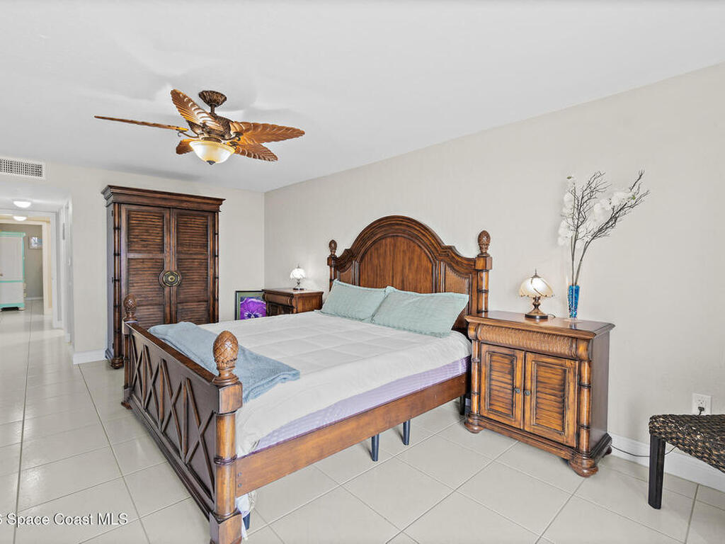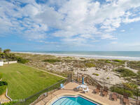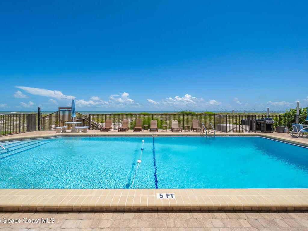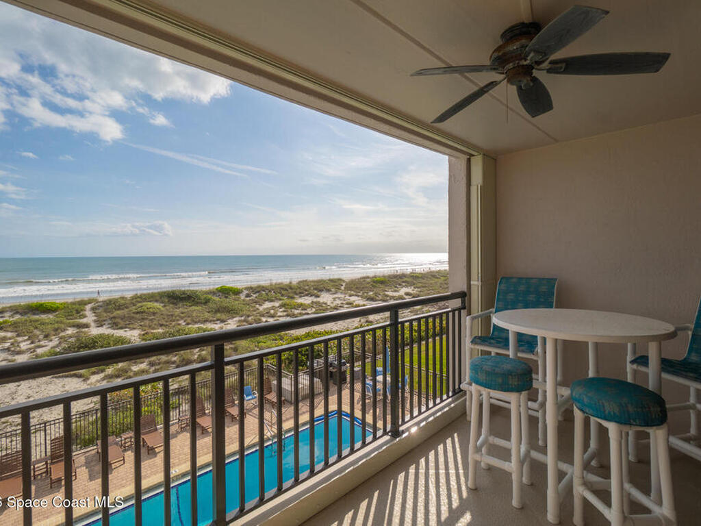 STOP scrolling through ''one small pet only'' listings--this rare DIRECT oceanfront beauty welcomes BOTH your dogs. Golden Retrievers, big mutts, size doesn't matter. Located in sought-after Cocoa Beach, close to shopping/dining without the downtown hustle, this condo offers stunning sunrises and sweeping ocean views from nearly every room. Watch rocket launches from your spacious balcony with new decorative concrete floor and storm shutters. The kitchen features granite counters, stainless appliances and abundant storage. Open living/dining areas provide room for everyone. The expansive primary suite includes 3 closets (one walk-in), updated bath & nonstop ocean views. The roomy guest bedroom and full guest bath with walk-in shower ensure comfort for visitors. Tile throughout, full-size washer/dryer, 2021 HVAC, on-demand hot water, heated pool, sauna & private access to an uncrowded dog-friendly beach make this property truly special. Don't miss out--it's the one you've been waiting for!