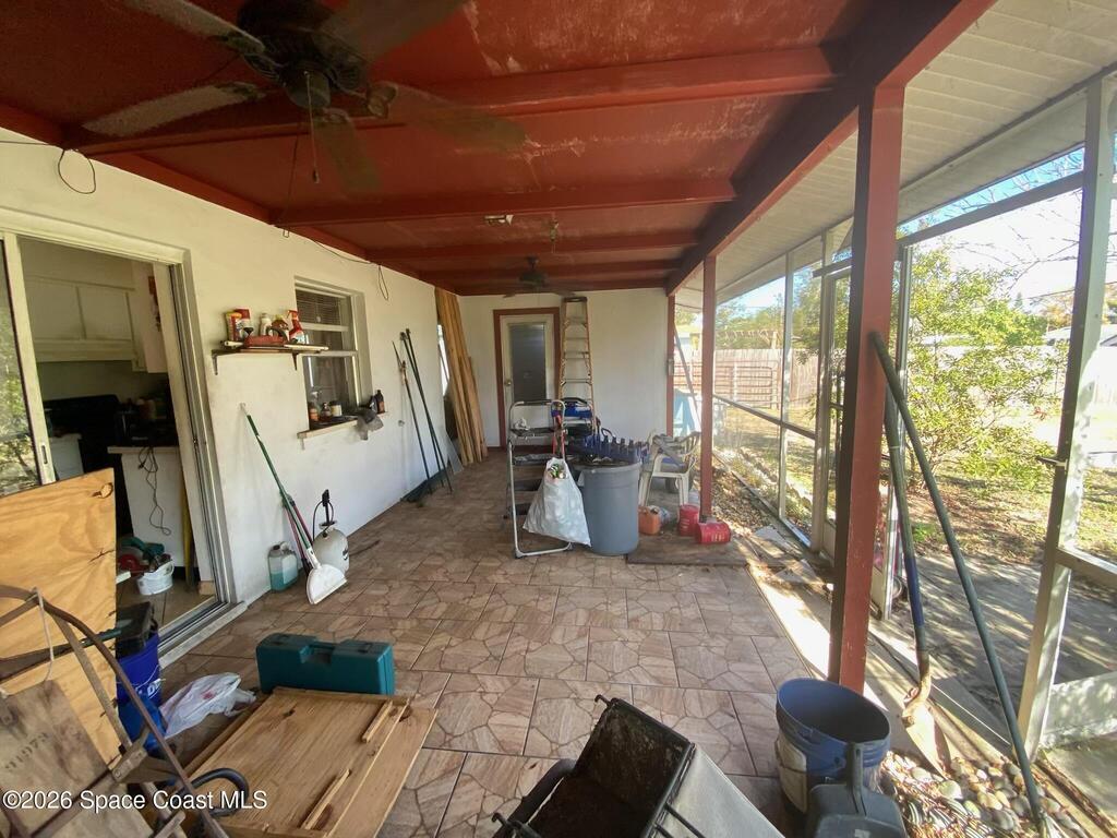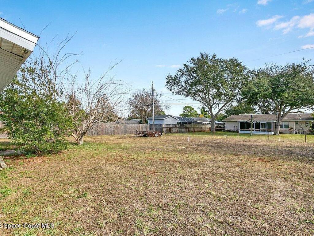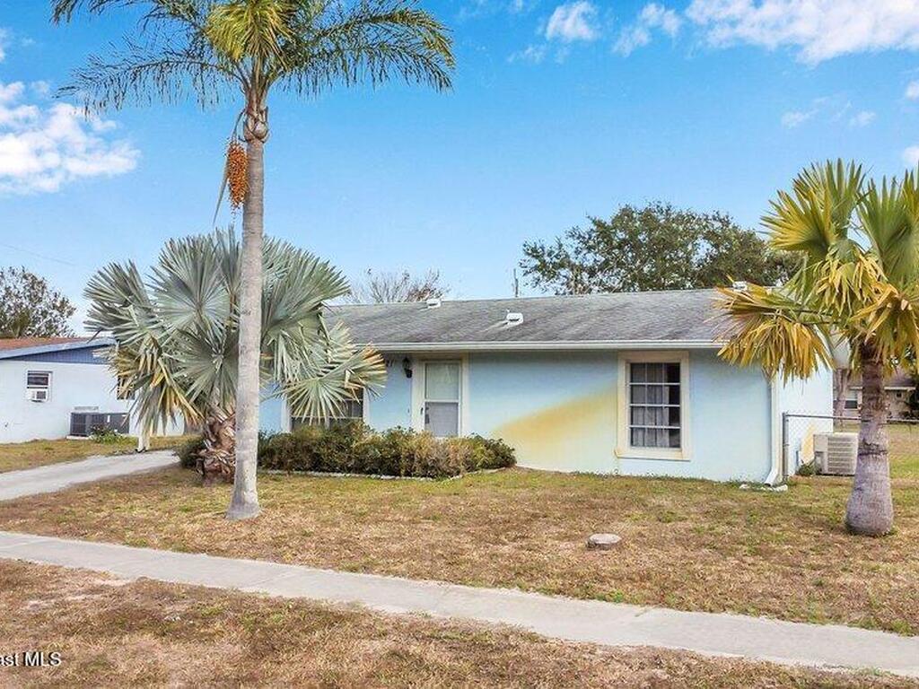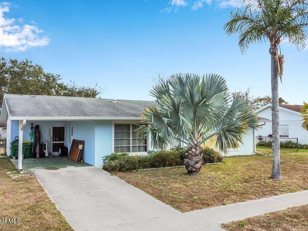 Solid concrete block home on slab featuring 2 bedrooms and 2 full baths, central A/C, and a carport. Approx. 894 sq ft of living area on a ~0.23-acre lot. Enclosed utility/sunroom area has flexible space for storage, workshop, or potential expansion (buyer to verify). Convenient Cocoa location near shopping, schools, and major routes. Delivered vacant at closing. Refrigerator and stove do not convey.