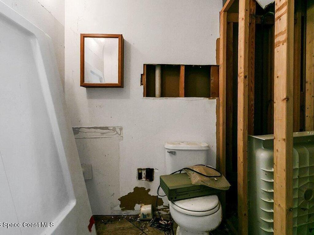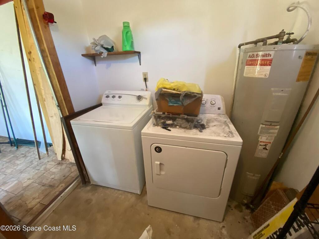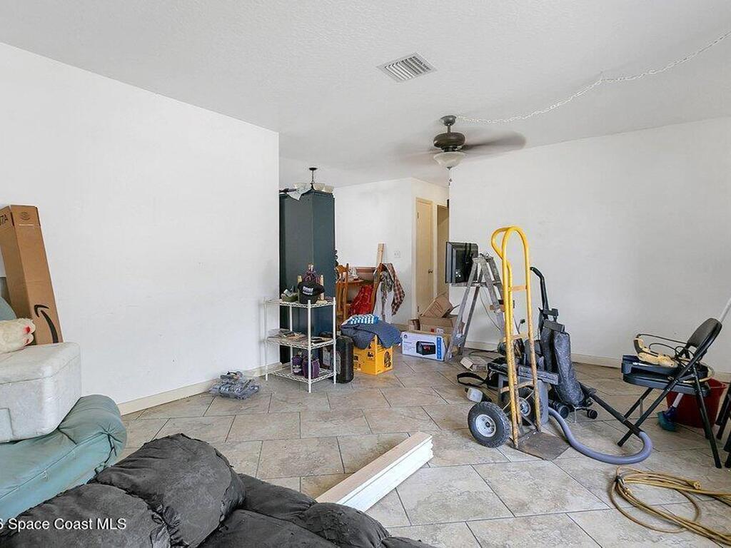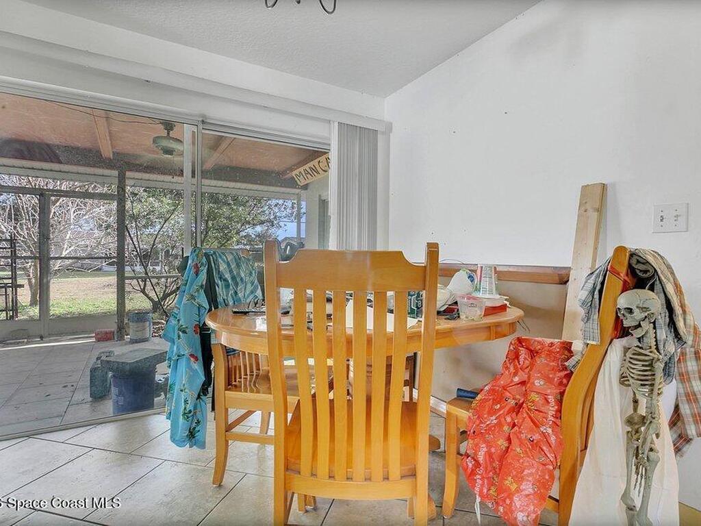 Solid concrete block home on slab featuring 2 bedrooms and 2 full baths, central A/C, and a carport. Approx. 894 sq ft of living area on a ~0.23-acre lot. Enclosed utility/sunroom area has flexible space for storage, workshop, or potential expansion (buyer to verify). Convenient Cocoa location near shopping, schools, and major routes. Delivered vacant at closing. Refrigerator and stove do not convey.