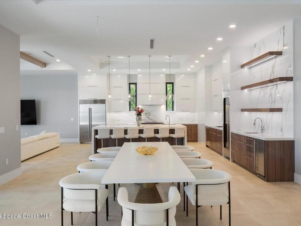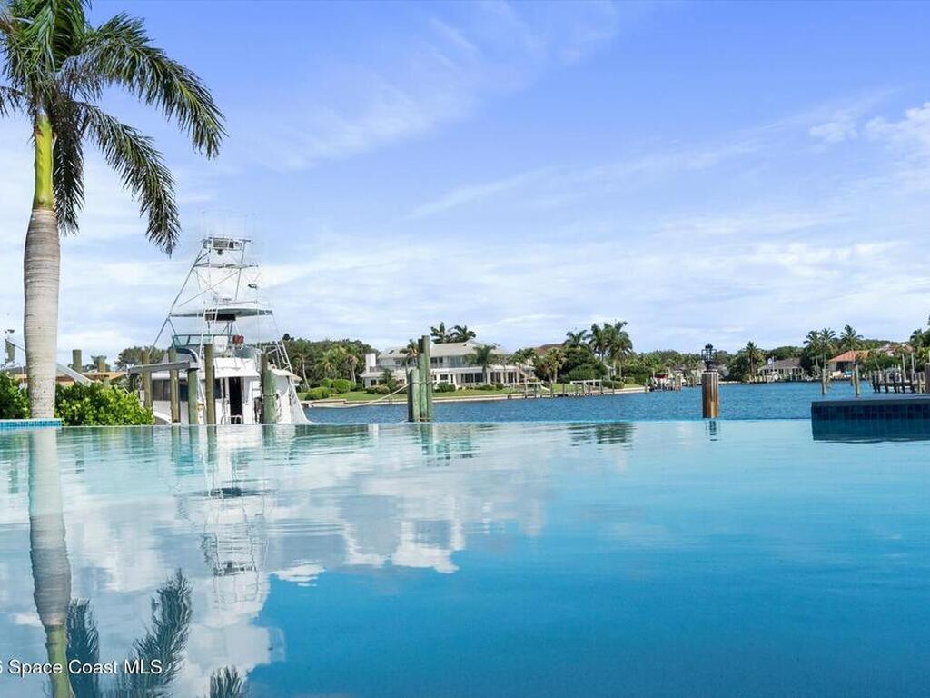NEW CONSTRUCTION-Custom Built Masterpiece on Direct Deep Water with 2018 Seawall, Dock & Boat Lift. Step into Luxury along The Breathtaking Indian River, home features 4 bedrooms, 41/2 baths with Study/Den. Impact Windows & Doors, Metal Roof, 4 Car-Garage, Infinity Edge Salt Water Pool with Spa and much much more. Modern Elegance with Coastal Charm.