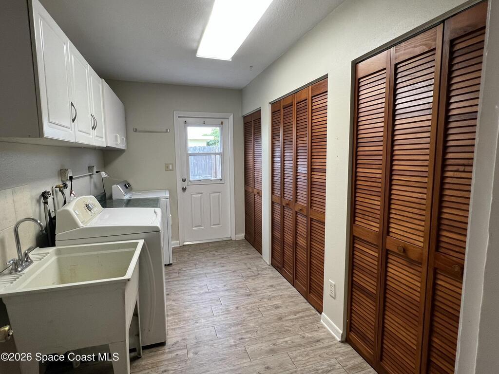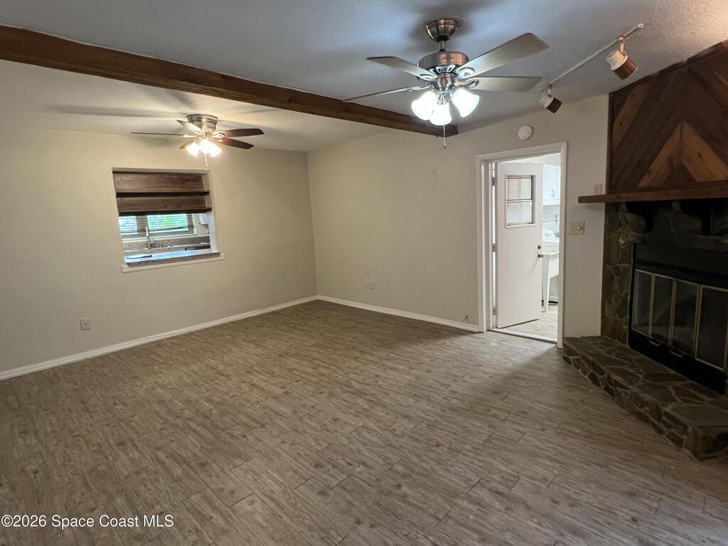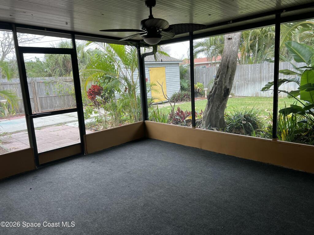 Professional Photos this weekend! Well-maintained CBS home with all major improvements already completed, including hurricane impact windows (2017), newer Daikan A/C (2023), new ducting (11/25), plumbing sleeved (2021), and a new hot water heater (2025). Additional highlights include natural gas service for the hot water heater, fireplace, and dryer, an indoor laundry room, screened patio, and a fenced backyard with plenty of room to add a pool. The property also offers a concrete pad for boat or RV storage, a shed, sprinkler system, garage, and carport. Ideally located just two blocks from the beach, this home is move-in ready and offers peace of mind with significant updates already in place. Carpeting has been removed from bedrooms and living room.