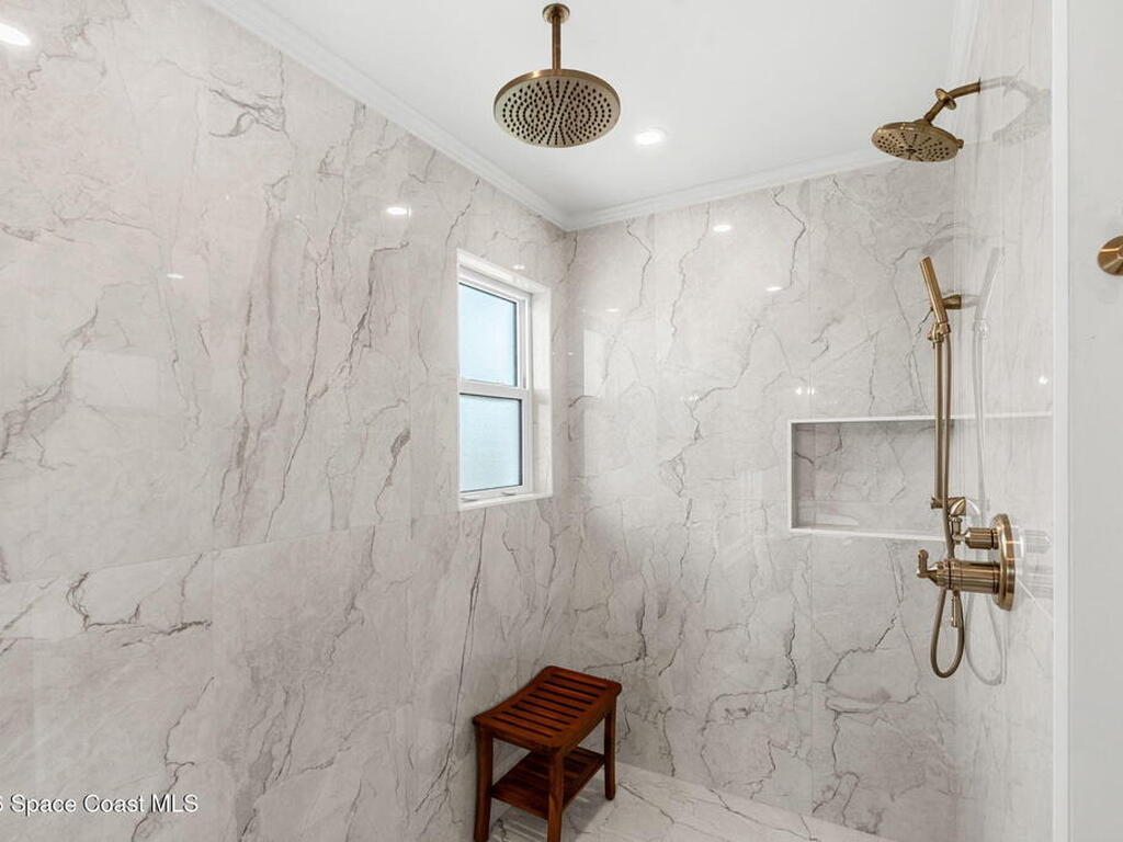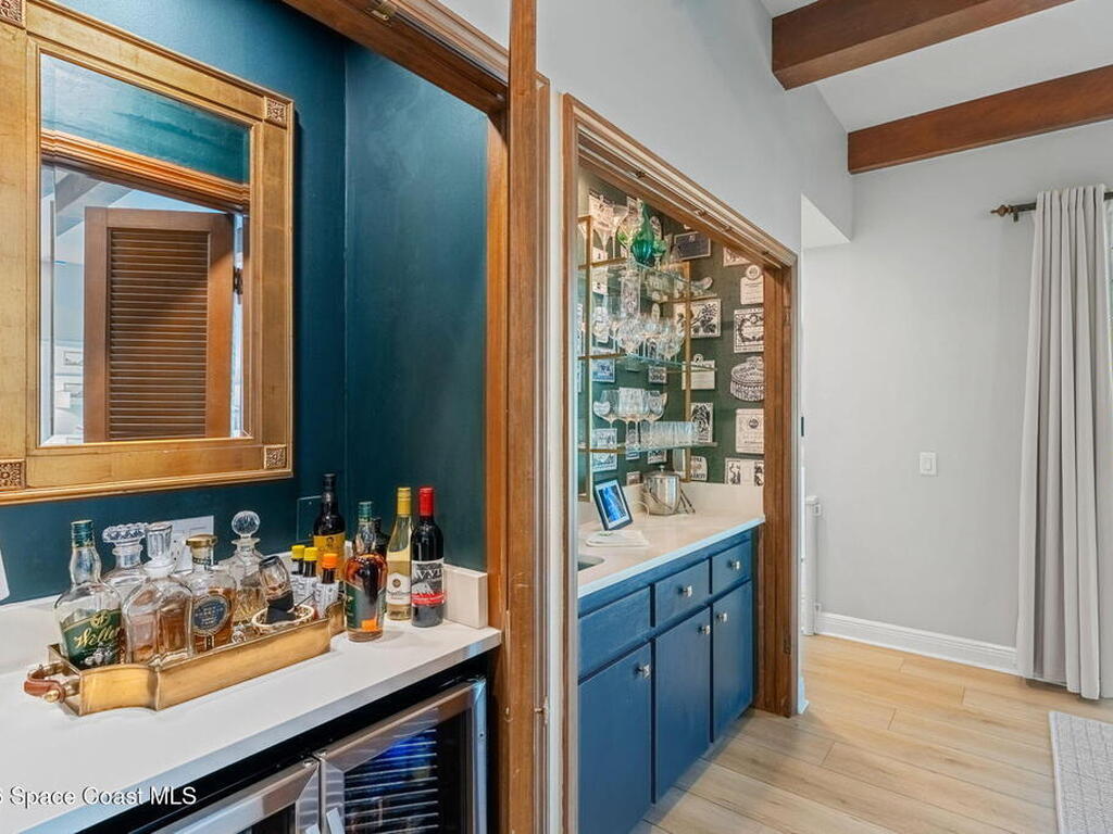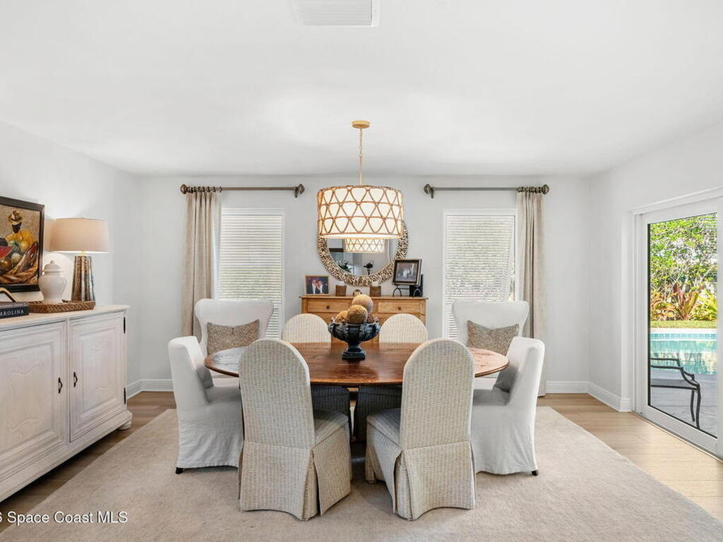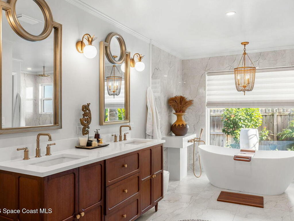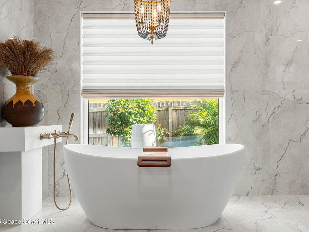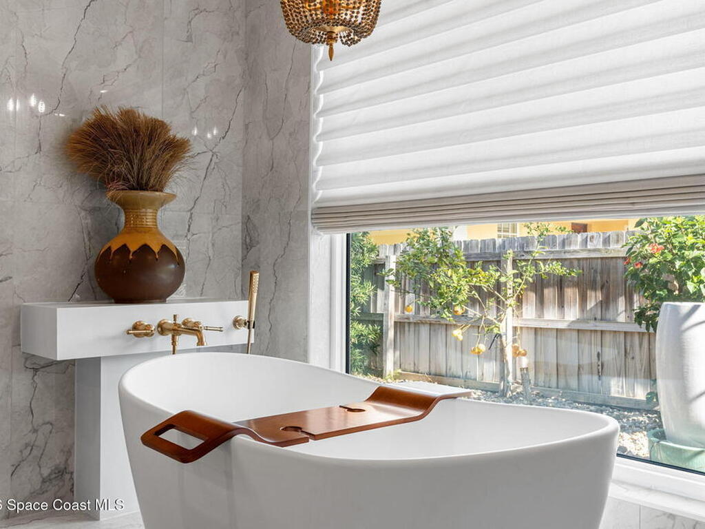 Located on the highly desirable Franklyn Street in Indialantic, this concrete block home has been thoughtfully improved with a focus on quality, durability, and everyday livability. Major upgrades include new impact-rated windows and doors, new Trane HVAC systems, and updated ductwork throughout.Set on a .42-acre lot, the property is framed by refreshed landscaping and subtle water features that create a sense of privacy without feeling closed off. Bimini shutters on select windows add a refined architectural detail, complementing the home's exterior. Inside, the home offers large, well-proportioned living spaces with new flooring, updated trim, and carefully selected lighting throughout. A fireplace anchors the main living area, adding warmth and character.The kitchen was completely rebuilt with custom cabinetry, Taj Mahal quartz countertops, Thermador appliances, a farmhouse sink, and thoughtful details that make it equally functional for daily use and entertaining.