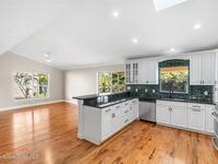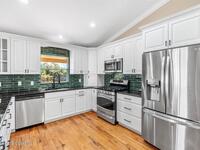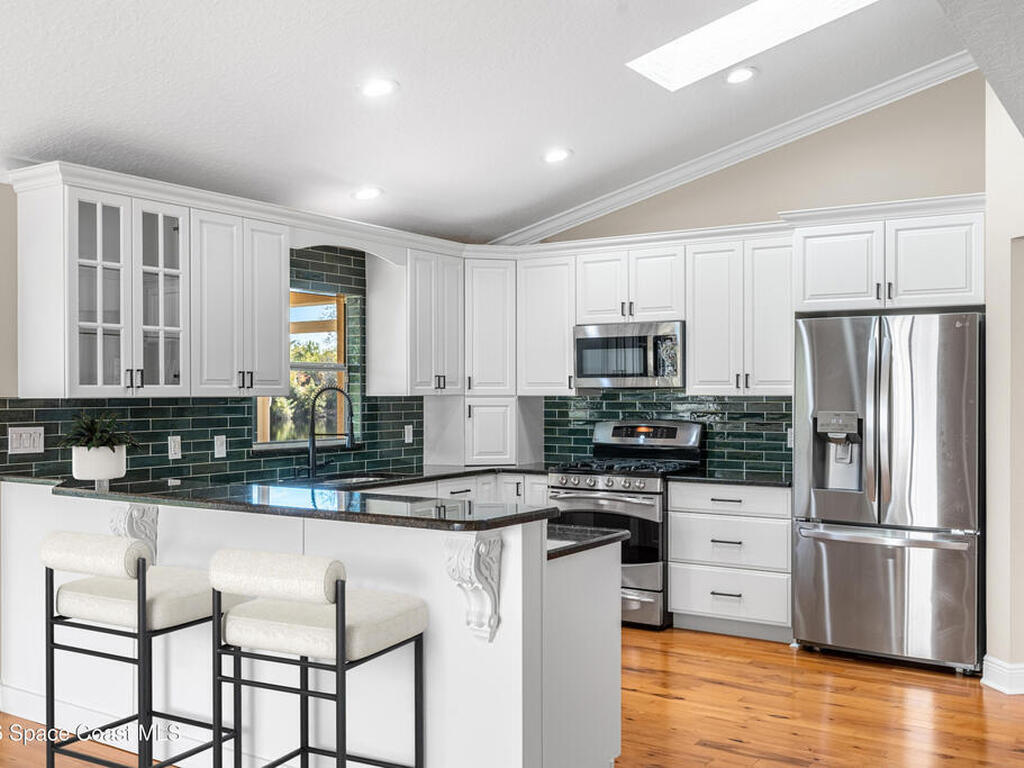 This custom-built waterfront home offers modern updates, and peaceful privacy. The entryway opens to serene backyard and water views, setting the tone for the home's thoughtful design. The exterior was freshly painted in 2026, including the patio deck and entire garage, and is complemented by updated landscaping and a shingle roof installed in 2018. Inside, the home shines with new carpet installed December 2025, fresh interior paint, new windowsills, and LED recessed lighting in every room. Additional upgrades include new outlets with screwless cover plates, six ceiling fans, and a washer and dryer installed in 2022. The updated kitchen features painted cabinets, a stylish backsplash, stainless steel appliances, and overlooks the tranquil waterfront. Crown molding throughout and chair rail accents add elegant detail. The primary suite offers a spacious bath, walk-in closet, and beautiful water views. This home blends custom design, modern comfort, and a special waterfront setting.