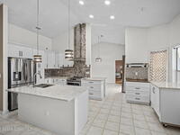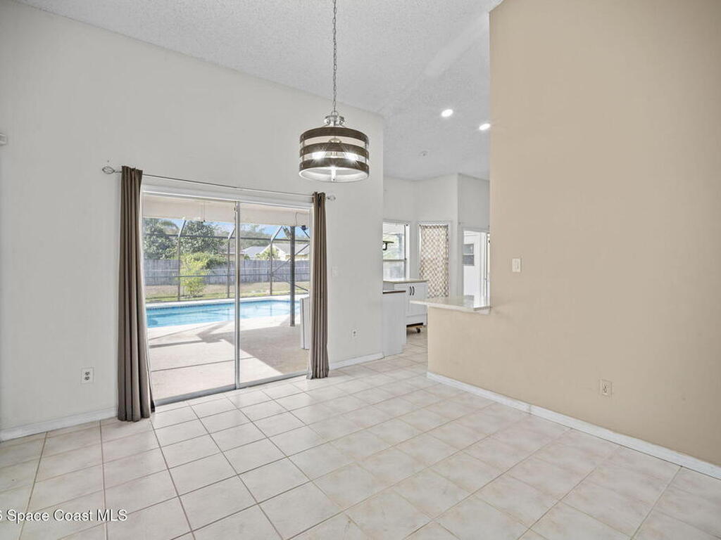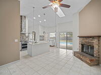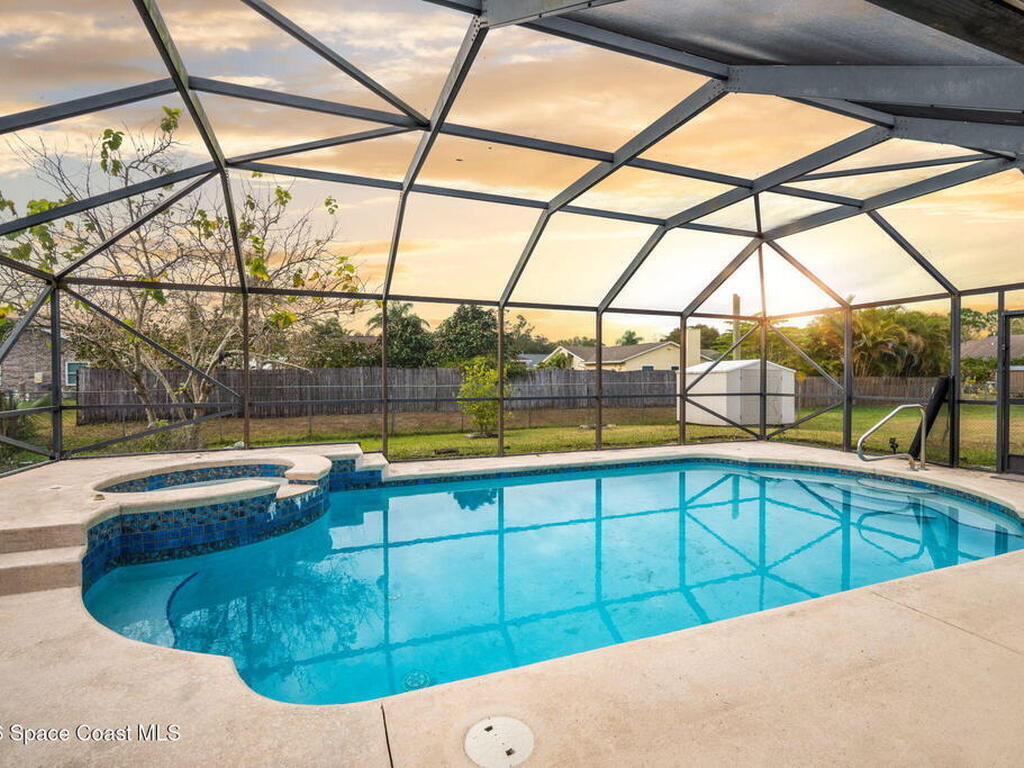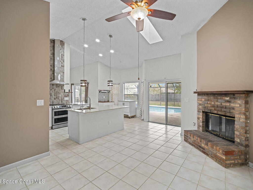 Welcome to this inviting 3-bedroom, 2-bath, 2-car garage screened pool home with spa. Tile and laminate flooring run throughout, creating a clean and cohesive feel. The updated open kitchen is the heart of the home and features granite countertops, a center island, ample cabinetry, and clear sightlines to the living areas. Formal living and dining rooms provide ideal spaces for entertaining, while the spacious family room offers a cozy wood-burning fireplace. The guest bathroom has been updated with modern finishes. Step outside to the heated screened-in pool and spa, complete with a new heater and self-cleaning system for easy maintenance and year-round enjoyment. The fully fenced backyard offers privacy and room to relax or play. Additional features include a new garage door with opener.