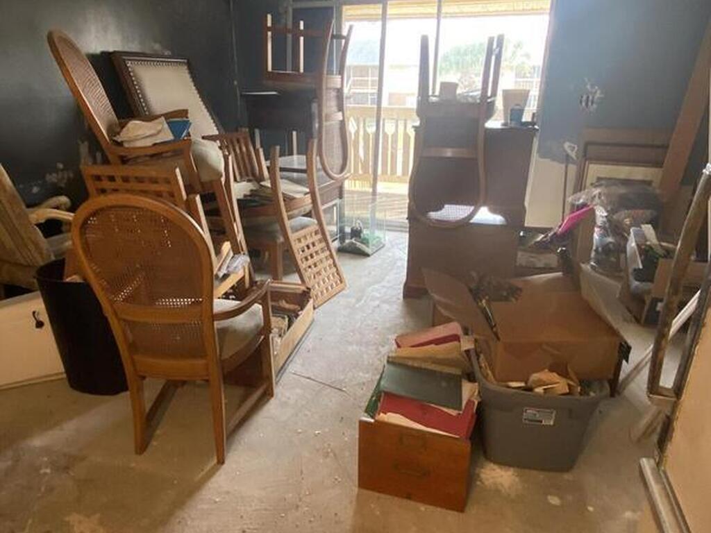 This 2nd floor unit is a handyman's delight. Tear out has been done. Drywall has been replaced, needs painting. All carpet has been pulled up. Tile has been purchased for bathroom floors and vinyl planks have been purchased for kitchen and dining room. Hard work has been done, now with your vision, you can make this total rehab beautiful. Windows have been upgraded to hurricane impact. Convenient location, close to a lot of shopping. Public golf course across st, block away from Wickham Park, many amenities on Wickham St