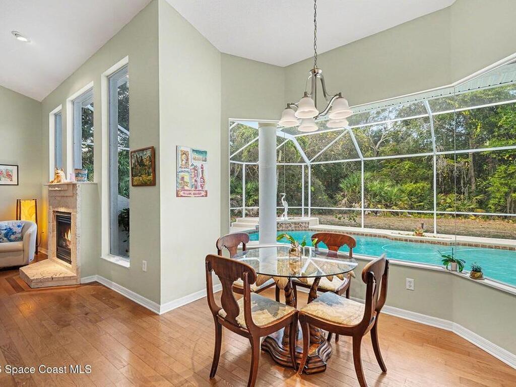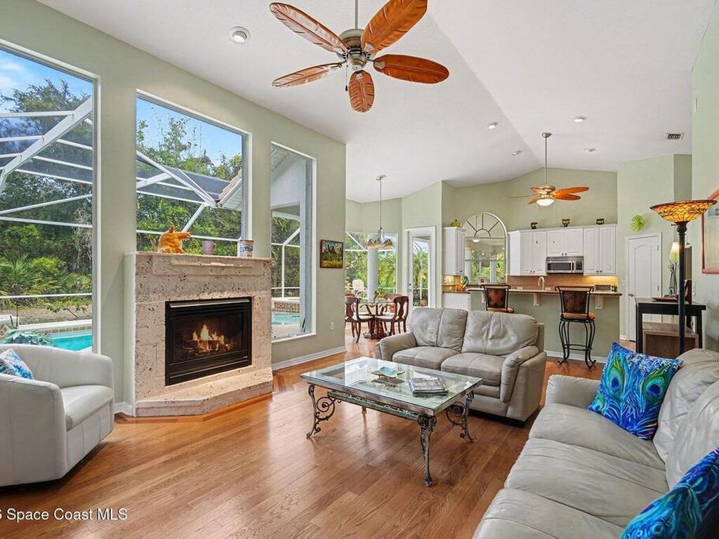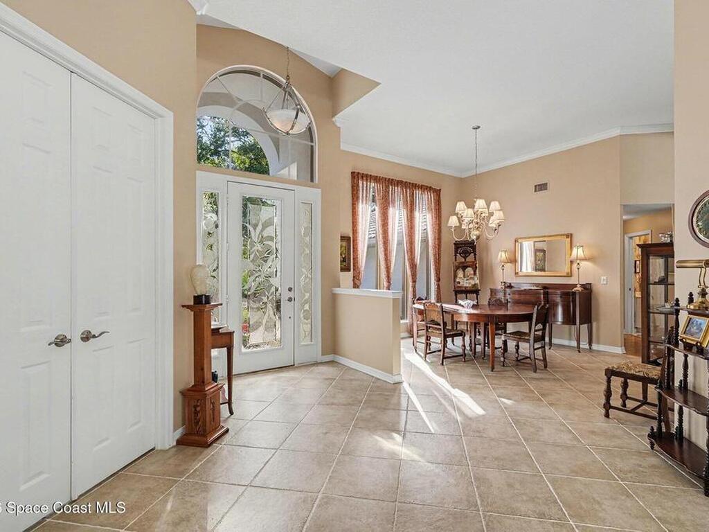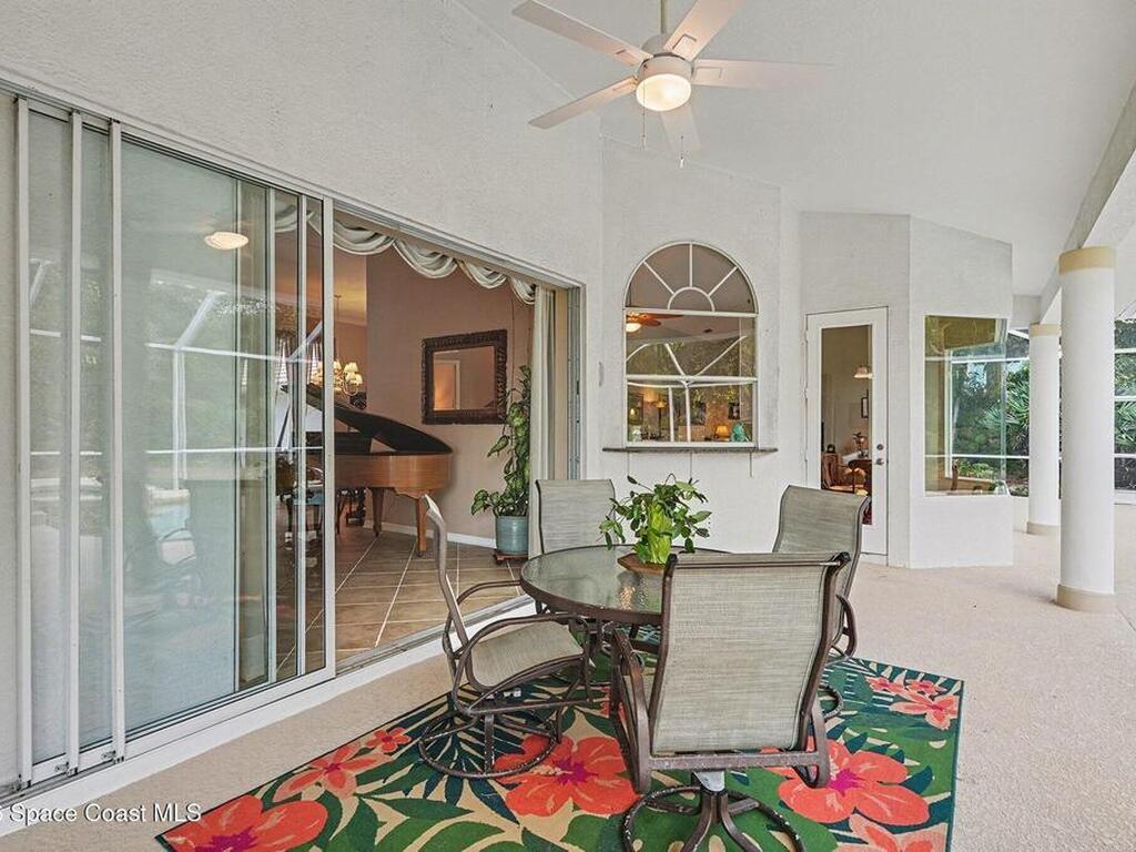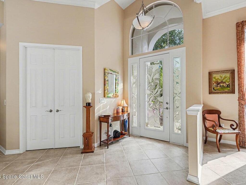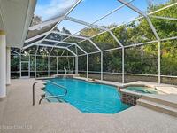 Hacienda Del Sol is a luxury enclave of distinguished estates that sprawl along the riverbanks, set amid lush tropical foliage. The community is defined by large lots, a rare river-to-river location, and a sense of refined privacy. Located at the tip of South Tropical Trail, where the Banana River runs on the east side and the Intracoastal Waterway on the west , Hacienda del Sol is TROPICAL OASIS . Sweeping river views, mature landscaping, and expansive homes create a quiet, resort-like atmosphere while remaining close to everyday conveniences. Privacy of 1 acre - set back from main road and surrounded by LUSH NATURAL FOLIAGE habitat for birds and wildlife this home is peaceful and feels like you always want to come home . Interiors offer tall ceiling height - pocket sliders that open up to lanai area. 3 bedrooms plus office allow comfort of work and family life. THE blending indoor and outdoor lifestyle with large pool - freshly painted lanai is unique with TROPICAL FOLIAGE
