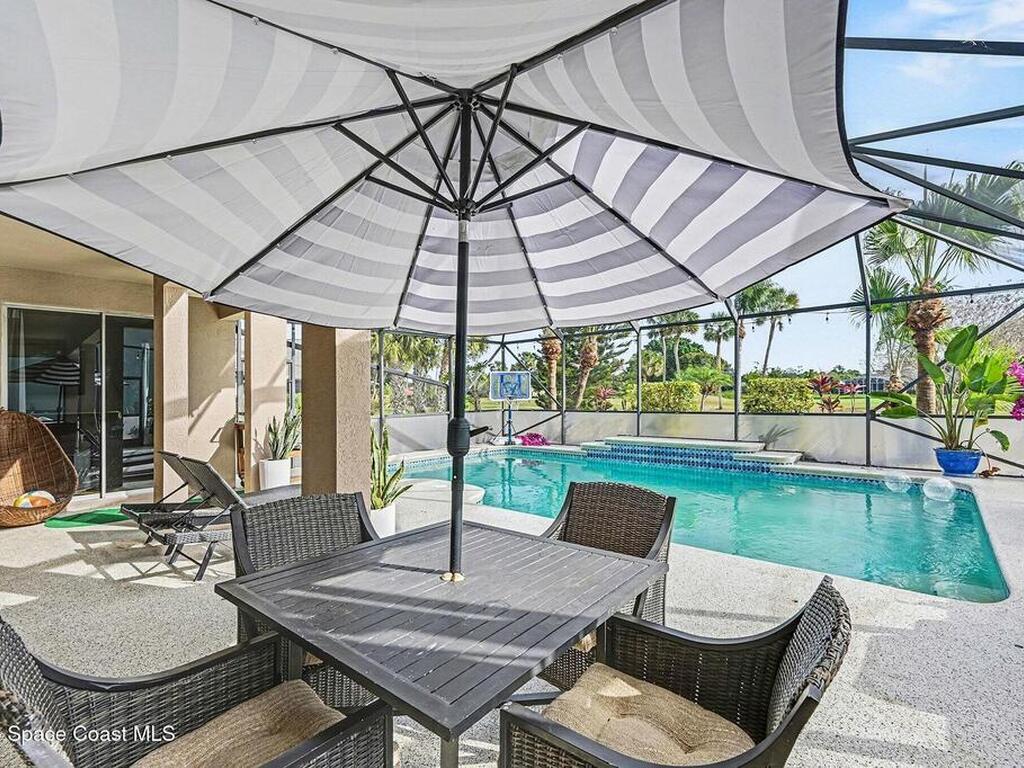 Welcome to The SAVANNAHS, where SPACE COAST living meets everyday adventure! Enjoy spectacular rocket launch views from your own backyard oasis at this 4 BED | 2.5 BTH POOL home in the heart of N Merritt Island. The spacious kitchen opens to the family room with serene views of the Space Coast Golf Club, while separate living & dining areas provide ideal spaces for entertaining. The first-floor primary suite offers direct access to the covered patio & saltwater pool, creating a true indoor-outdoor retreat! High ceilings and a thoughtfully designed floor plan accommodate today's active lifestyle, including an upstairs Bedroom & Bath--perfect for guests or a home office. Outdoor living shines with a tranquil screened enclosure and ample space for family gatherings. Additional highlights include an oversized 2-Car Garage & circular driveway for extra parking. Community amenities feature Tennis Courts and a Playground, all with excellent proximity to Blue Origin, Port Canaveral & Orlando!