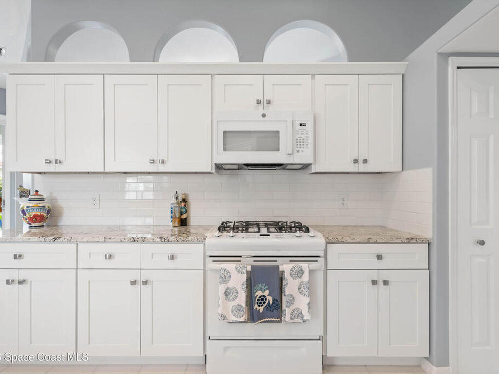 You have to see this one because she is GORGEOUS! Meticulously maintained inside and out this picture perfect Suntree home is tucked into a charming cul-de-sac and built on a lot TWICE the size of most in this quaint community. Pull into the oversized driveway and make your way down the manicured pathway leading to the double door entry featuring custom stained glass. The main entry overlooks the living room featuring the first of 3 oversized glass sliders that cover almost the entire rear of the home. To the right is the 1st of 3 bedrooms with this one set up as an office with French doors and built ins. To the left is a formal dining space which would also make a nice office area. A small hallway leads to the second guest bedroom and guest bath. The spacious kitchen is brand new and features all wood cabinets with slide outs, granite countertops and all new appliances with the exception of the awesome gas range. A large breakfast nook area overlooks the lanai. On the opposite side