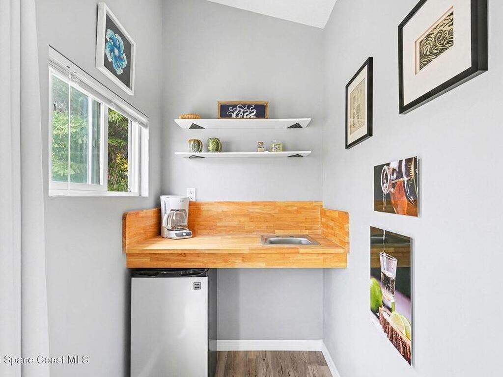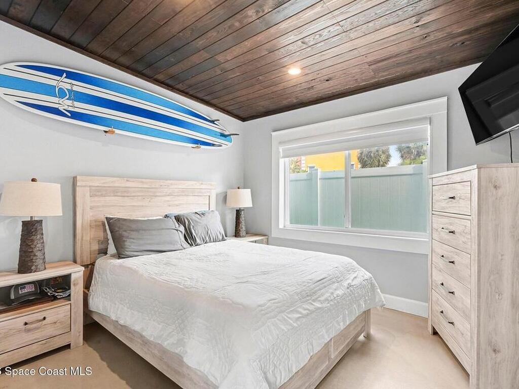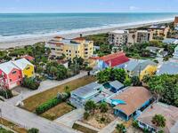 Fully remodeled beachside home located across from the ocean, offering coastal lifestyle, flexibility, and short-term rental potential. Main residence features 2 bedrooms and 1 bath with impact windows, elevated ceilings, modern coastal finishes, and bright open floor plan designed for seamless indoor-outdoor living. A detached studio apartment provides ideal accommodations for guests, multi-generational living, or vacation rental income. Resort-style outdoor living includes a heated saltwater pool with color-changing laminar lights, heated spa, and outdoor heated shower, perfect for post-beach relaxation and Florida evenings. Expansive, low-maintenance yard enhances entertaining and rental appeal, offering exceptional expansion or redevelopment potential. Build up for ocean views and rocket launch visibility, or explore future use as a single-family estate, duplex, triplex, or income-producing property with adjacent lot purchase at 609 Madison, MLS #1062588.