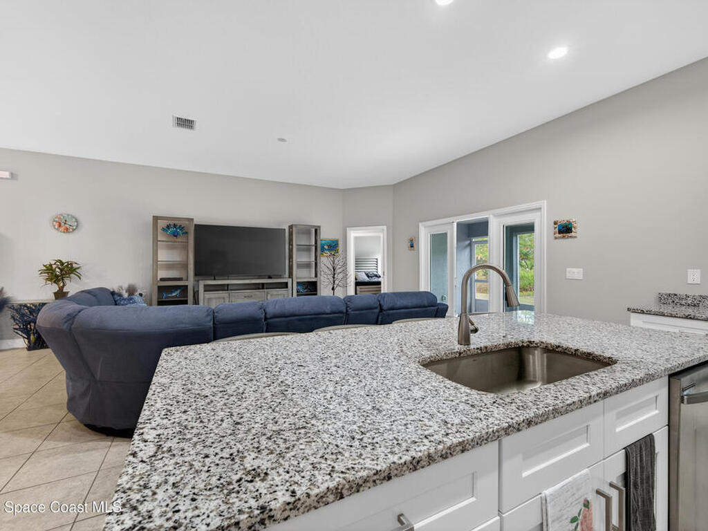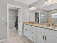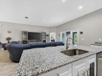 Beautifully lightly lived-in home, purchased new in 2023 offering four bedrooms, three bathrooms and a three-car garage. Perfect for a large family or a highly profitable rental. This home sits on a private lot and features a thoughtfully designed floor plan, three separate private suites, ensuring privacy for everyone.The spacious primary suite includes and oversized bedroom, double sinks, a walk-in tiled shower, soaking tub, and a large walk-in closet. One guest suite offers two private bedrooms, a full bath and separate entrance to the screened lanai, while the third suite includes private bedroom, full bath, and walk-in closet.The open concept kitchen features an island with seating, abundant cabinetry, and a walk-in pantry, flowing into the oversized family room. All windows are impact rated. Recent upgradesinclude screened front entry and Lanai, full-house gutters, designer curbing, with additional landscaping, as well as irrigation.