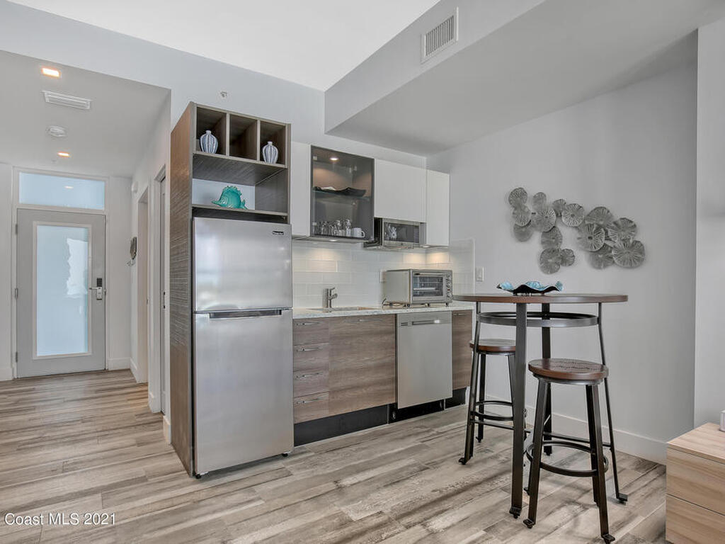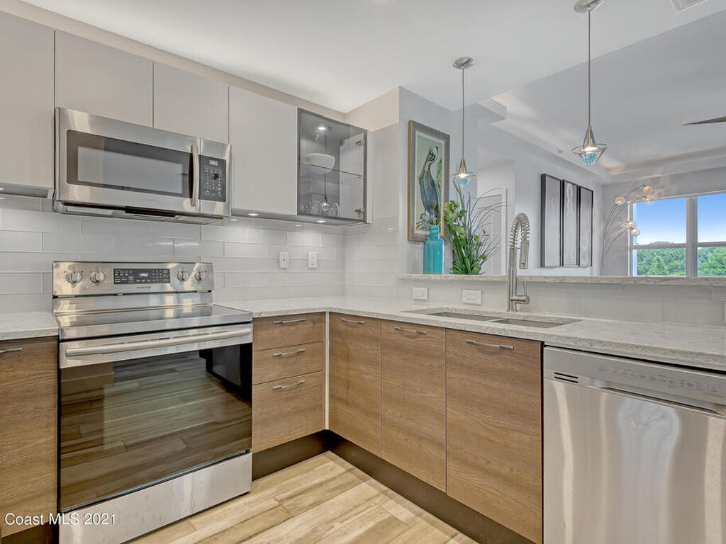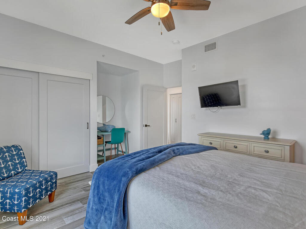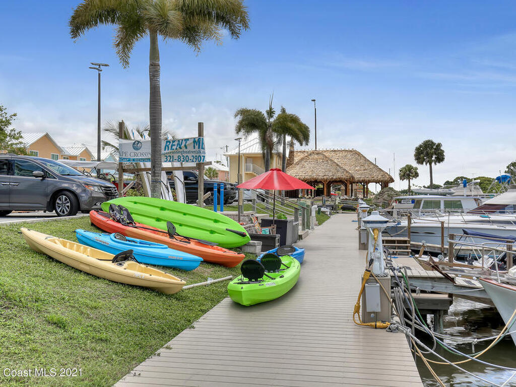 Two units! You can rent out one and live in the other. The pictures speak for themselves on this one, but let me tell you more! Your very own piece of waterfront paradise awaits for you on the Space Coast at Cape Crossing Resort. This stunning 4 bedroom 3 bath condo is full furnished and boasts luxurious finishes making it perfect for residing in full-time, part-time or for an income producing vacation rental. Sit peacefully on your oversized private balcony with views of wildlife, the marina and rocket launches. This unit FEATURES the 4th bedroom in a private suite (lockout) with private balcony, kitchenette and entrance, perfect for guest or additional income. Cape Crossing has amenities galore! The generously sized pool is heated year round, with a large deck, plenty of seating, stocked gym and sauna.