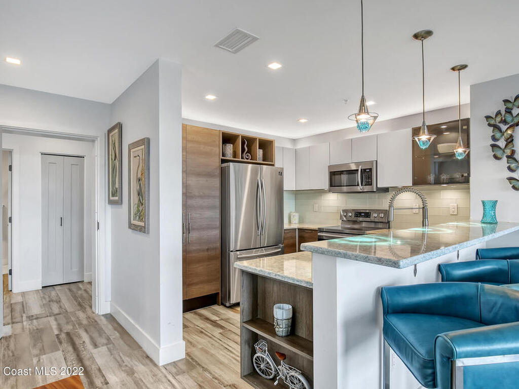 Two units! You can rent out one and live in the other. The pictures speak for themselves on this one, but let me tell you more! Your very own piece of waterfront paradise awaits for you on the Space Coast at Cape Crossing Resort. This stunning 4 bedroom 3 bath condo is full furnished and boasts luxurious finishes making it perfect for residing in full-time, part-time or for an income producing vacation rental. Sit peacefully on your oversized private balcony with views of wildlife, the marina and rocket launches. This unit FEATURES the 4th bedroom in a private suite (lockout) with private balcony, kitchenette and entrance, perfect for guest or additional income. Cape Crossing has amenities galore! The generously sized pool is heated year round, with a large deck, plenty of seating, stocked gym and sauna.