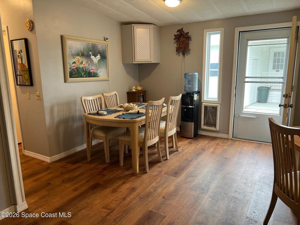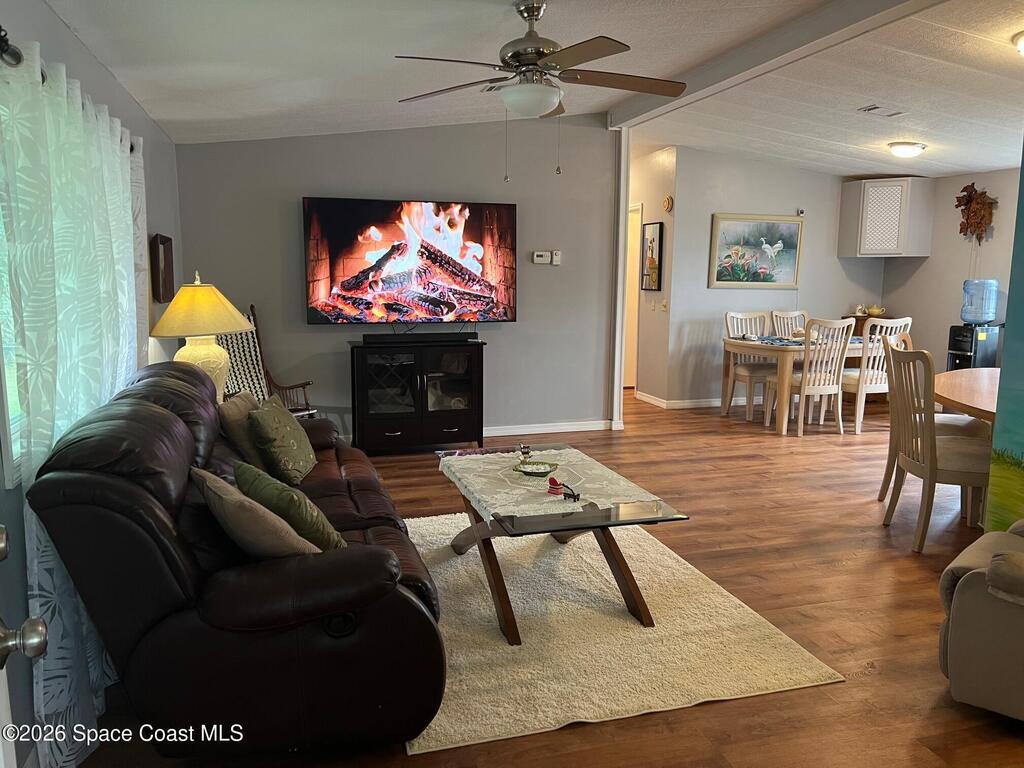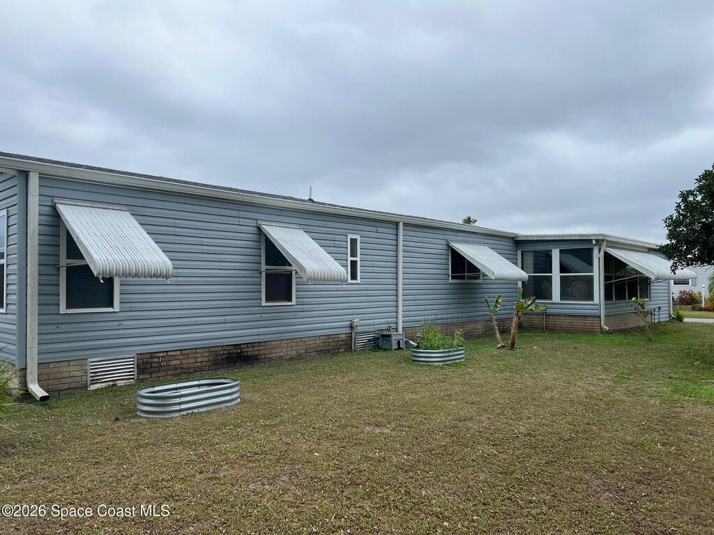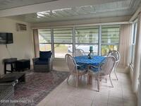 This 2-bedroom 2-bathroom home features a double carport and driveway. The air-conditioned Florida room is a perfect place for relaxing, entertaining, and watching TV. Living room, dining room and kitchen are open and has a breakfast bar. There are many storage closets in the hallway and bedrooms. The lot size is .12 acre and has a large side yard great for gardening. The home is near the golf course and has plenty of space for golf cart parking. The utility room has shelving and laundry area. Barefoot Bay is a vibrant golf-cart friendly community that feels like a cross between a small town and year-round resort. Golf course, 3 pools, fishing pier, private beach access, social clubs and much more. There is something for everyone. You own the land.