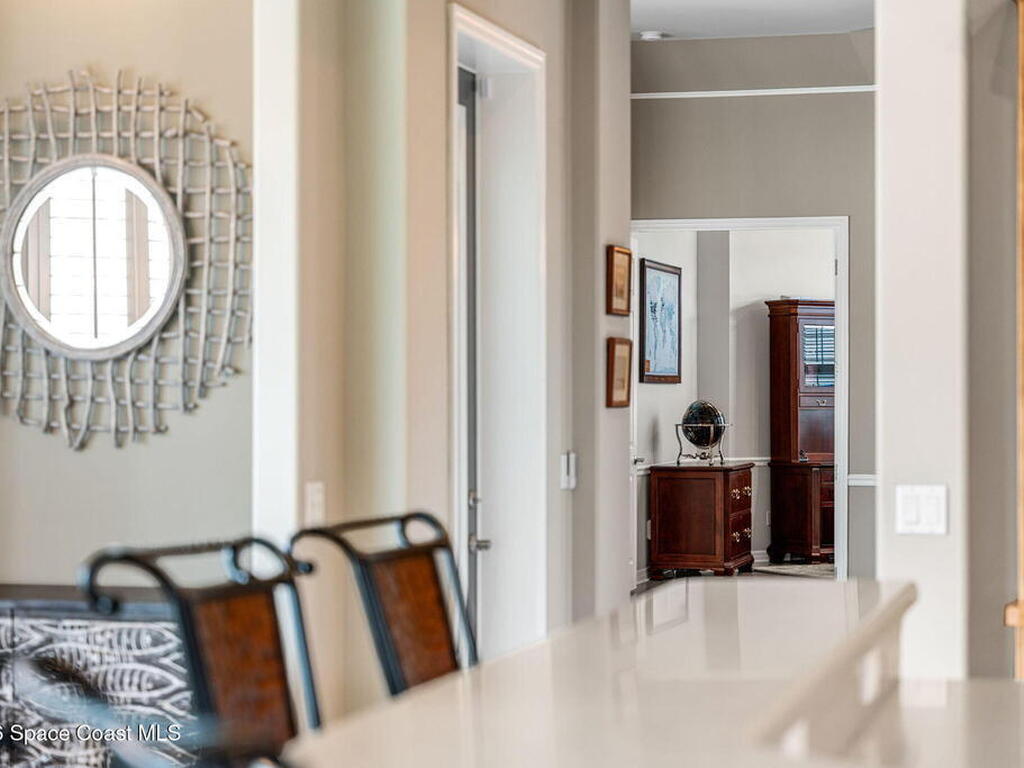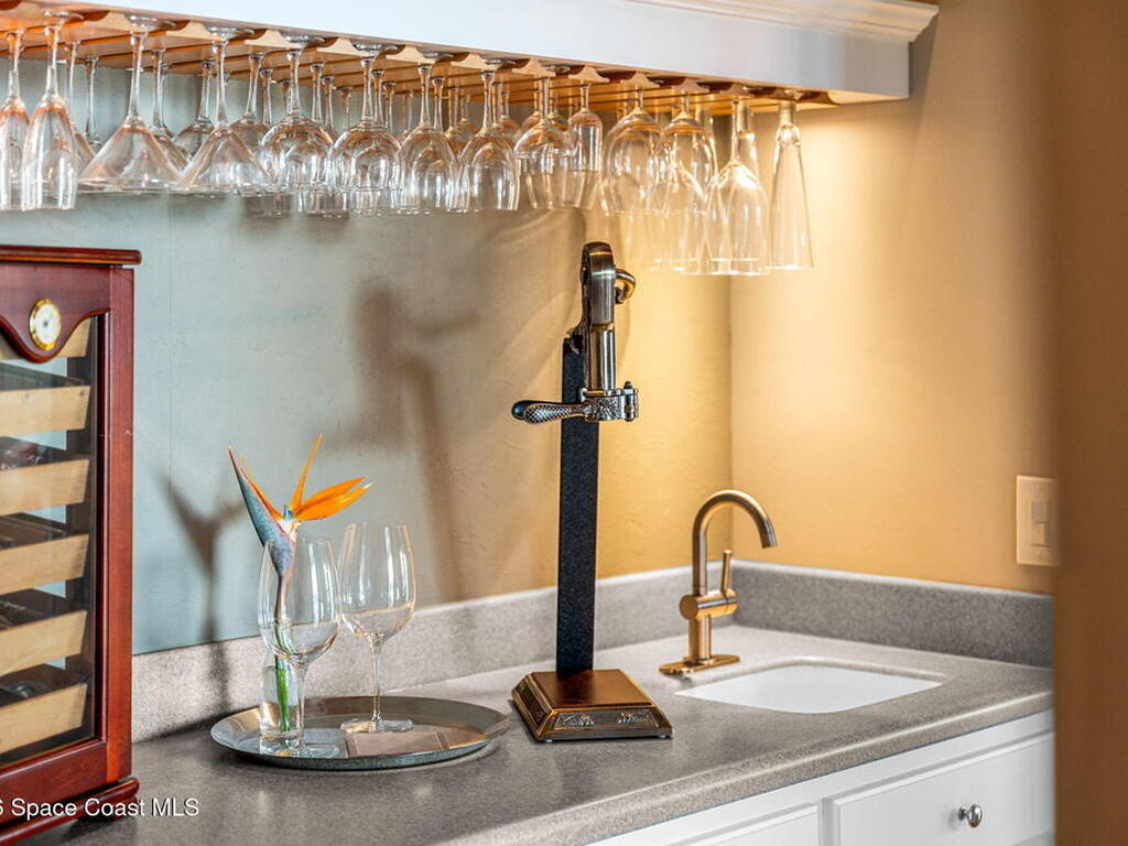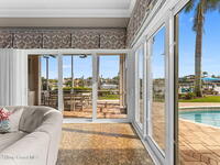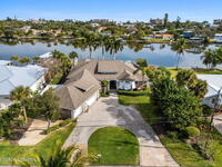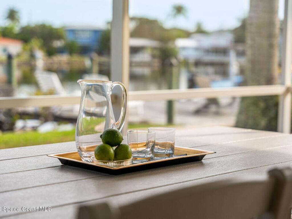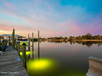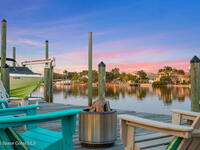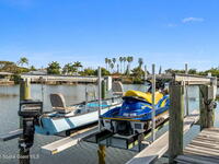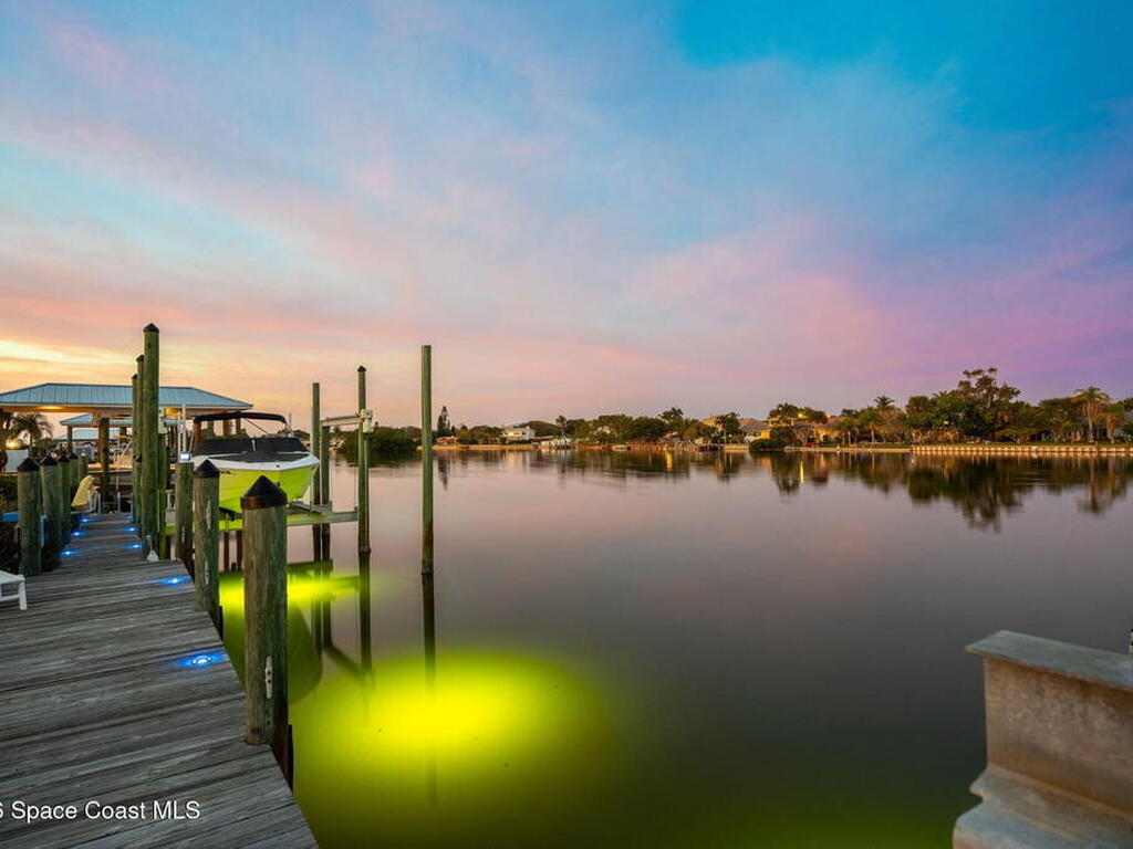WIDE-CANAL WATERFRONT LIVING in Cocoa Beach. This 3 bed, 3 full bath home + office is positioned on a DEEP, OPEN CANAL offering exceptional maneuverability & boating functionality. The office, located near a full bath, provides flexibility as a potential 4th bedroom. Inside features include 12-ft ceilings, an open & livable floor plan, impact-rated sliders, water views throughout, & retractable front door screens. 12' ceilings in main living areas, 10' ceilings in other rooms. The kitchen offers cork flooring, under-cabinet lighting, a warming drawer, large pantry, a 5-burner induction cooktop, convection & combi-steam wall ovens, dishwasher drawers (vs standard dishwasher), & a gas water heater. Outdoor living includes a screened patio w/ refrigerator, sink, & pre-plumbed connections for an outdoor kitchen, built-in Sonos speakers, pool (refinished 2022) & spa. The dock is equipped w/ 2 boat lifts (9, 000 lb & 16, 000 lb), underwater fish lights, & 30-amp shore power.