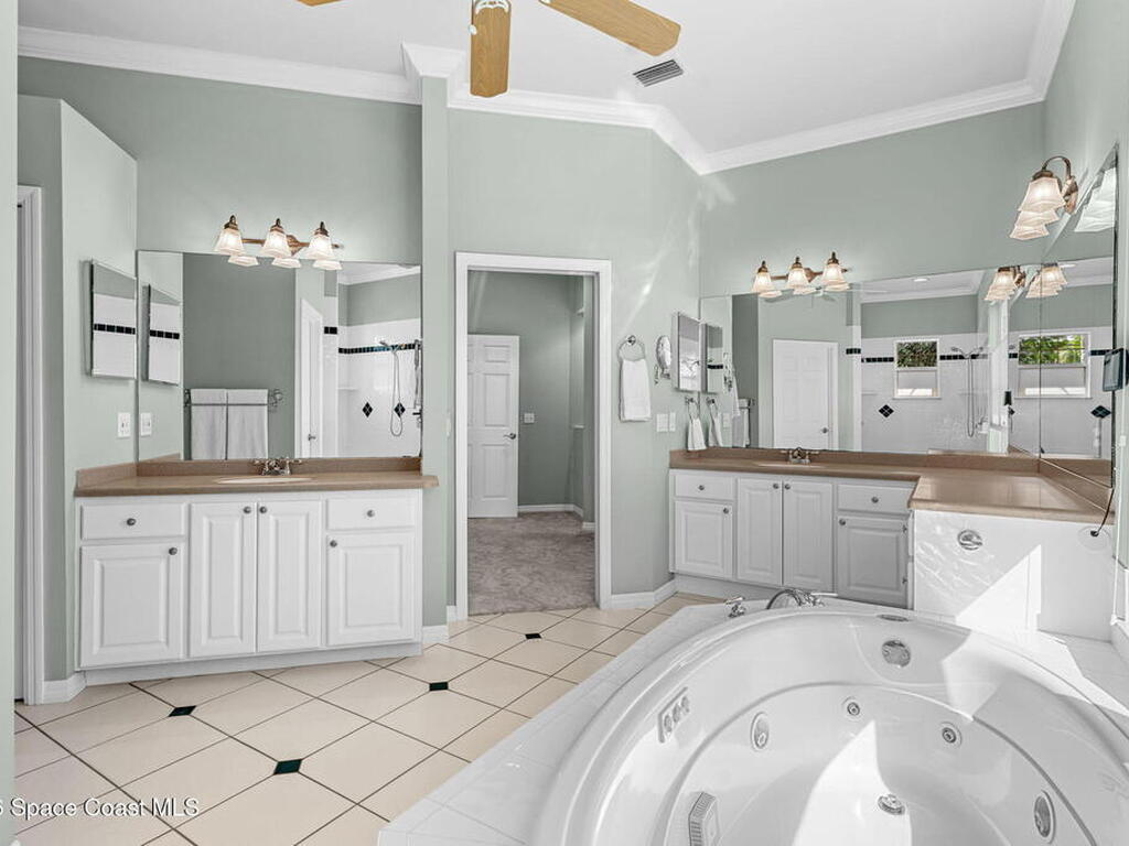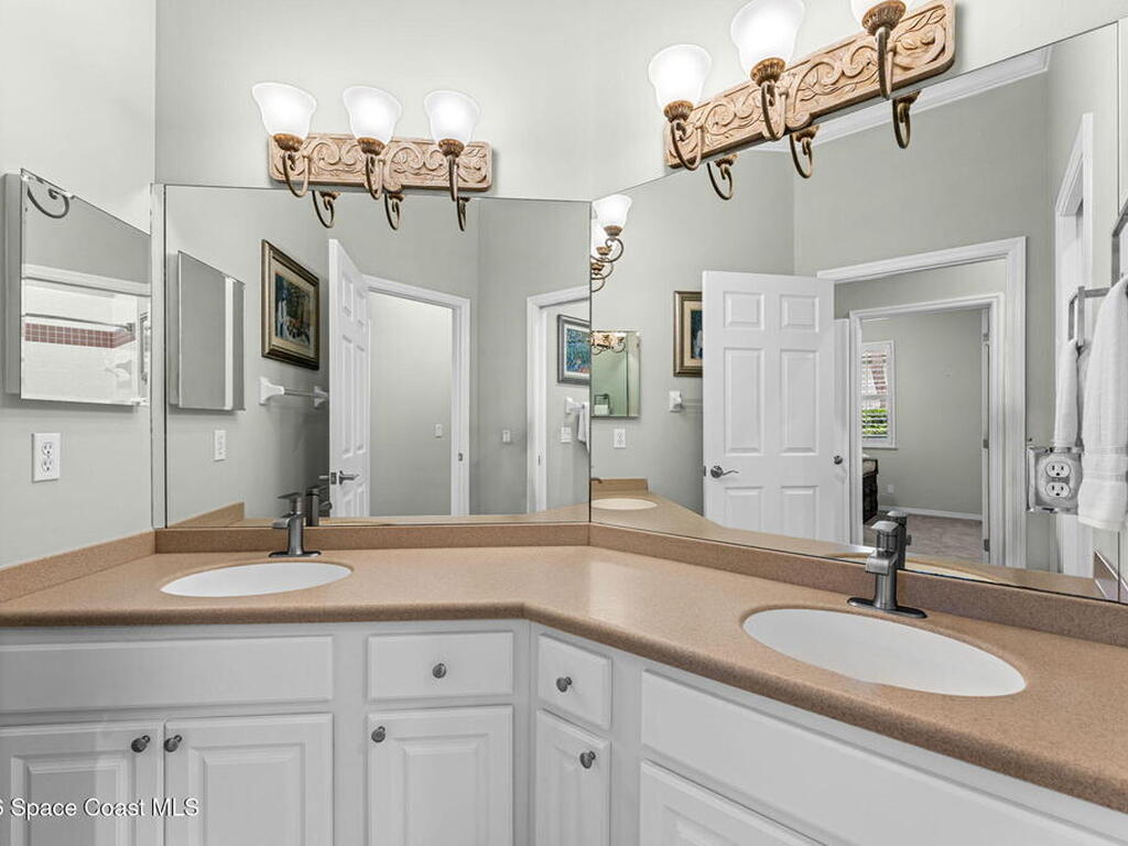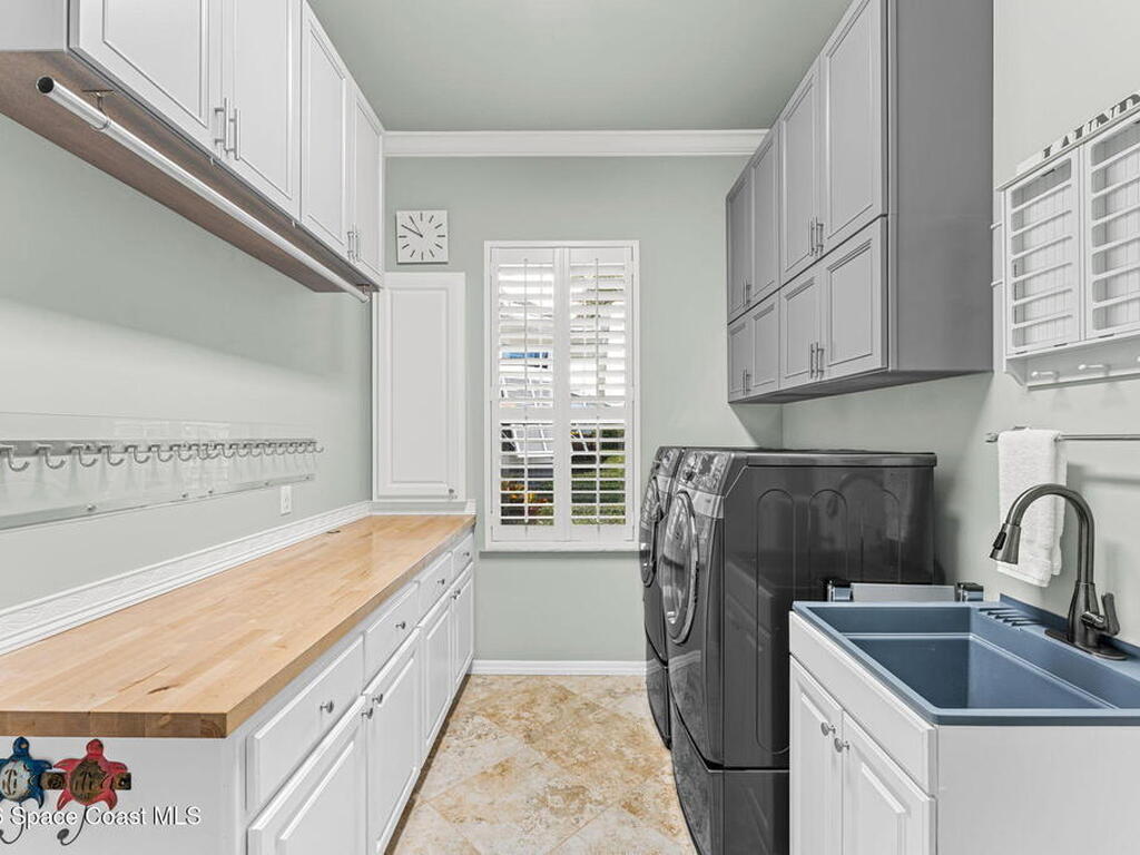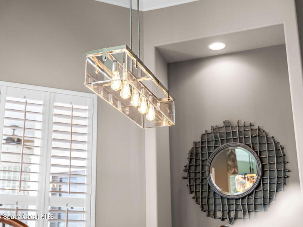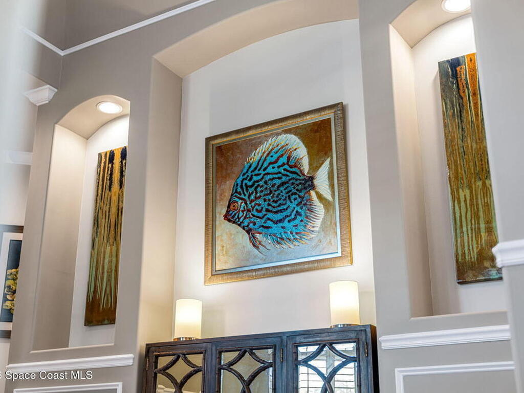 WIDE-CANAL WATERFRONT LIVING in Cocoa Beach. This 3 bed, 3 full bath home + office is positioned on a DEEP, OPEN CANAL offering exceptional maneuverability & boating functionality. The office, located near a full bath, provides flexibility as a potential 4th bedroom. Inside features include 12-ft ceilings, an open & livable floor plan, impact-rated sliders, water views throughout, & retractable front door screens. 12' ceilings in main living areas, 10' ceilings in other rooms. The kitchen offers cork flooring, under-cabinet lighting, a warming drawer, large pantry, a 5-burner induction cooktop, convection & combi-steam wall ovens, dishwasher drawers (vs standard dishwasher), & a gas water heater. Outdoor living includes a screened patio w/ refrigerator, sink, & pre-plumbed connections for an outdoor kitchen, built-in Sonos speakers, pool (refinished 2022) & spa. The dock is equipped w/ 2 boat lifts (9, 000 lb & 16, 000 lb), underwater fish lights, & 30-amp shore power.