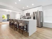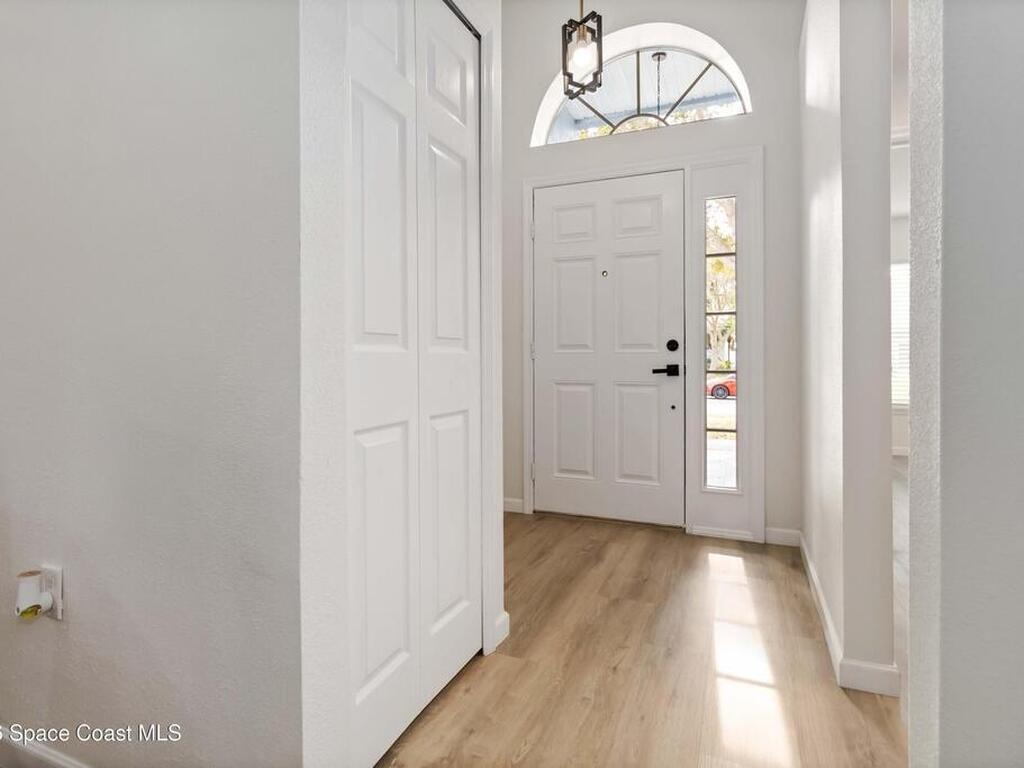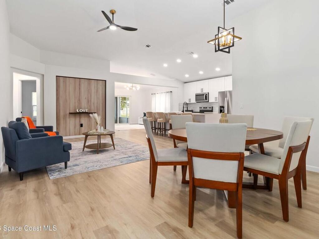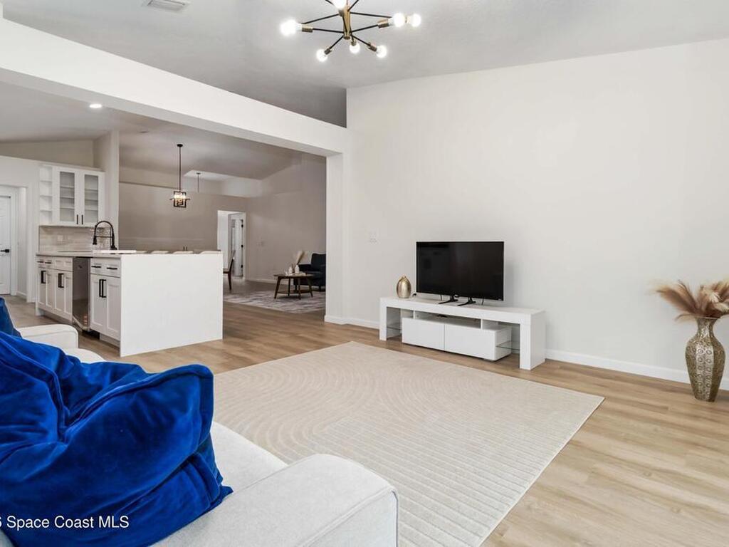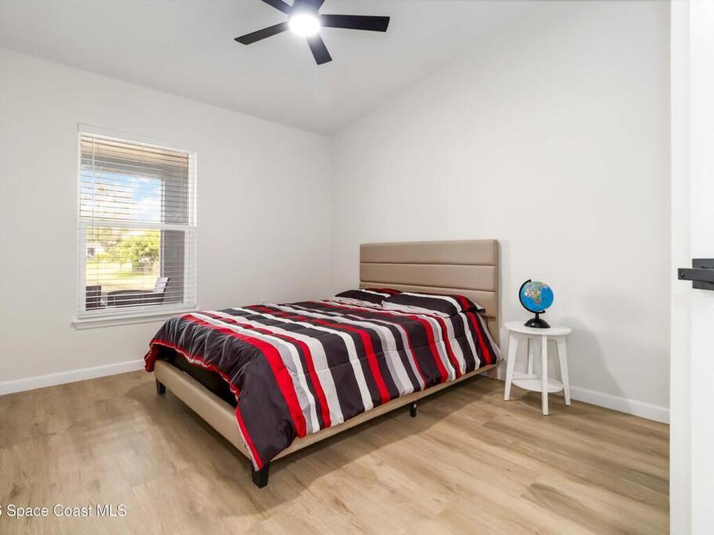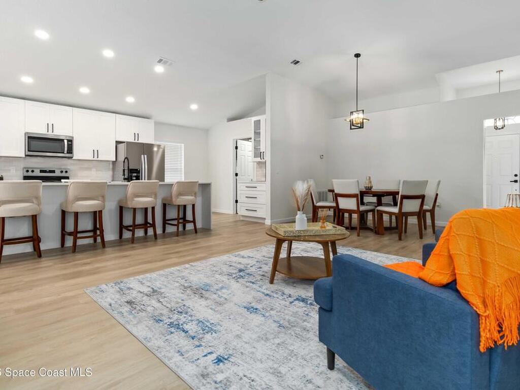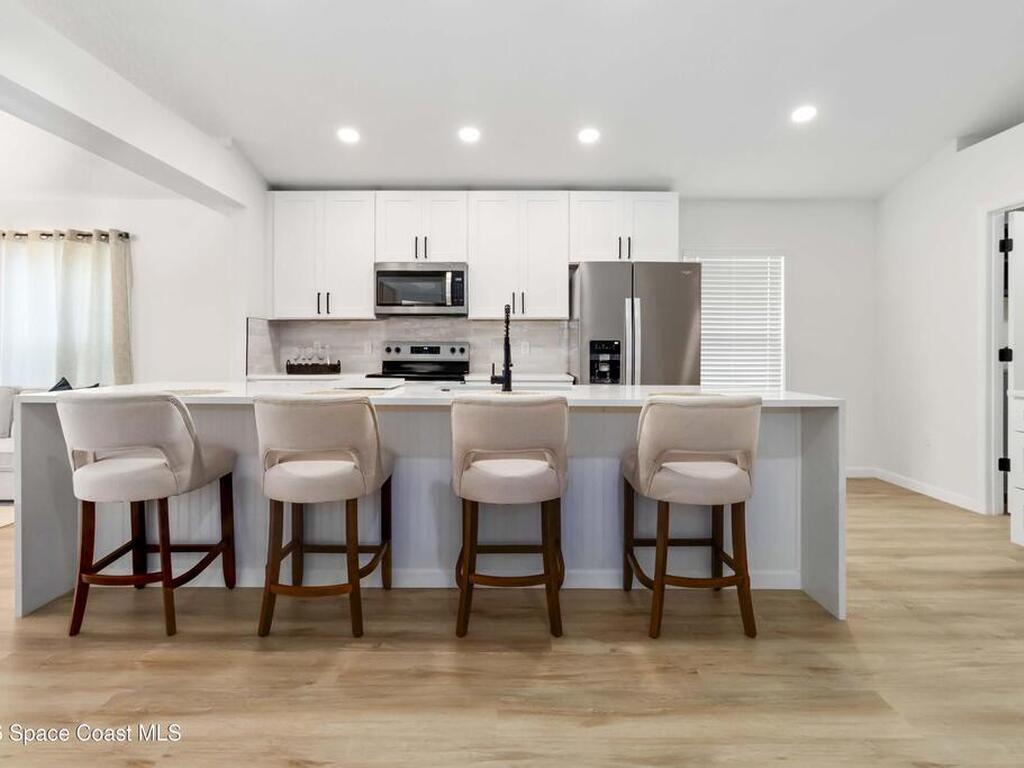 This beautifully updated 4-bedroom, 2-bathroom home offers modern comfort and peace of mind. Roof (2023) AC (2023) WH (2025), new impact windows, new interior & exterior paint. New luxury vinyl flooring throughout the home with new baseboards adds both elegance and practicality. The kitchen was designed with functionality in mind providing ample space for cooking and entertaining. The upgraded includes new stainless-steel appliances, new 42-inch shaker cabinets with quartz countertops and a beautiful backsplash. The primary bedroom large walk-in closet with double sink vanities. Ceiling fans throughout! Garage with new epoxy floor and paint. Out back, you'll appreciate having a screen and overlooking the lake. Don't miss this move-in ready!
