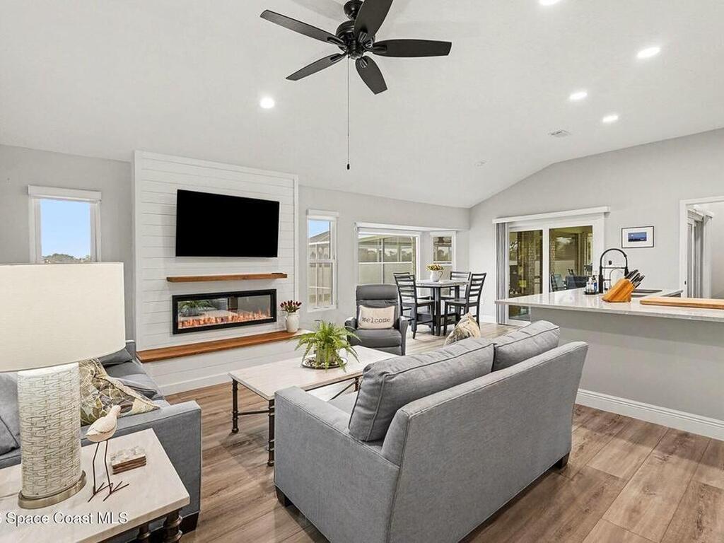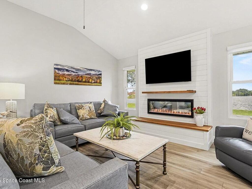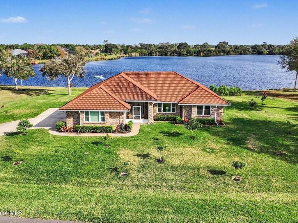 Welcome Home! to this beautifully renovated 4-bedroom, 2-bath lakefront retreat on a half-acre lot in a quiet, hidden-gem neighborhood of large lots & great neighbors. East-facing lake views deliver stunning sunrises, enjoyed from the big picture window & screened rear porch, & screened front porch for amazing sunsets! The open floorplan features a cozy fireplace & durable LVP flooring throughout. Completely renovated top-to-bottom in 2025 with high-quality materials - not a flip - the seller's unexpected change of plans is your gain. Brick-over-block construction, impact glass windows, & a steel roof (50-year lifespan) offer lasting peace of mind. The whole house water filter even keeps you healthy! Enjoy your own private orchard with grapefruit, orange, lemon, lime, and avocado trees. Check out the popup outlets on the kitchen counters! Some furniture is negotiable. Low HOA at just $29/month completes this exceptional opportunity. You've been invited, so what are you waiting for?