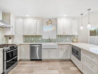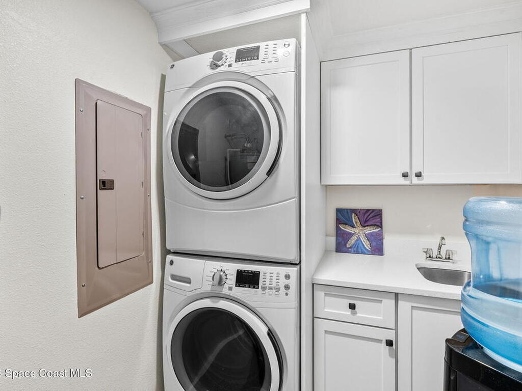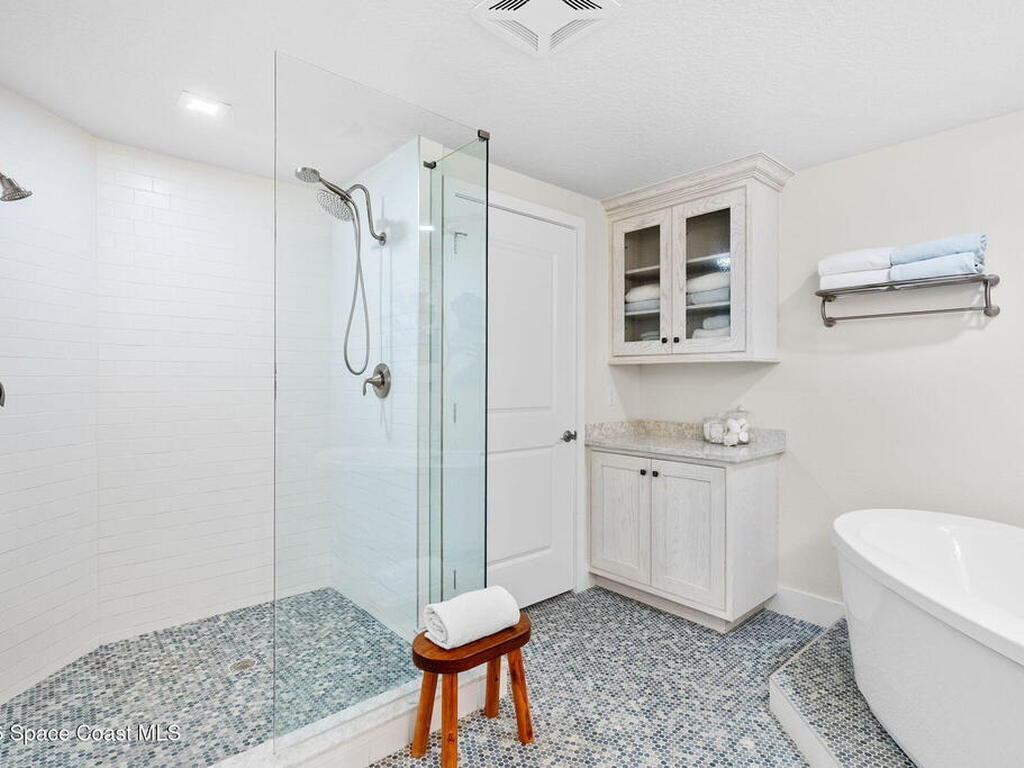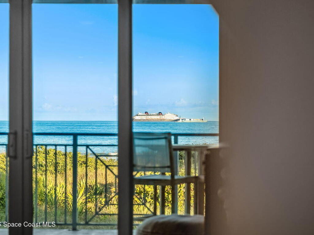 Breathtaking and charming DIRECT OCEAN North East Corner Condo, 3 Bedrooms plus a Den & 3 Baths. 2 parking spaces. E.V. Charger on property! Like New ~ completed in 2019! NATURAL GAS COOKING! Custom kitchen including GE Double Oven w/gas range, all GE appliances including full size W/D. White Kohler Farm sink, lazy susan, appliance garage, seeded glass in all wood, Shiloh custom cabinets w/ soft close drawers + pantry roll-outs. Cambria Quartz countertops, glass backsplash, hardwood looking tile flooring throughout, High Ceilings + tall interior & exterior doors. 8ft. tall hurricane rated sliders & impact windows thru-out. GATED OCEAN FRONT CONDO W/ GARAGE PARKING AND HEATED POOL. 1 car garage parking with storage unit and 1 car space outside. Just North of World Famous Cocoa Beach Pier, on the ocean, on the edge of the sand where rockets launch daily, 2 miles for Port Canaveral, and less than an hour from Orlando Intl. airport and Disney and Universal theme parks.
