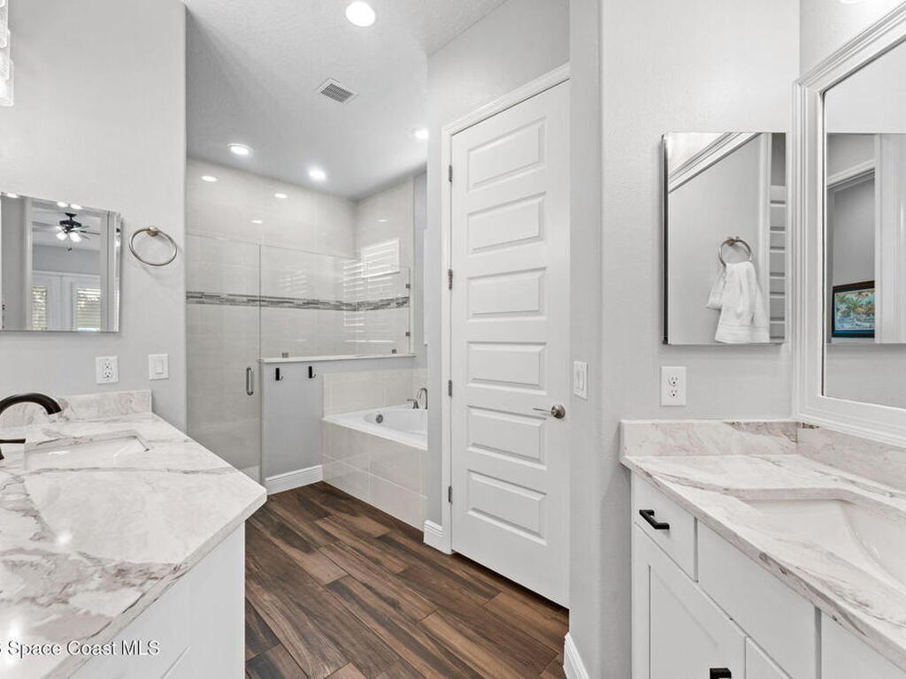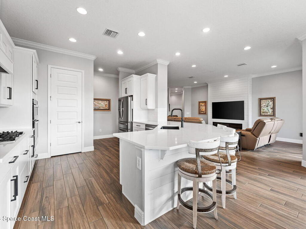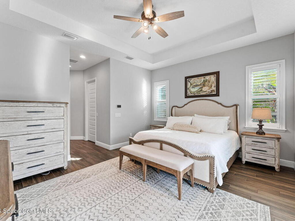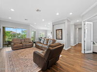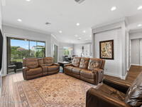 Welcome to a gated showstopper where style, space, and smart design collide. This 3 bedroom + 1 flex, 3-bath stunner serves up an airy open floor plan made for entertaining, everyday living, and everything in between. The kitchen brings the WOW - new countertops, breakfast bar, eat-in space, and a built-in wine cooler ready for your best pours. Split bedrooms keep things private, while the primary retreat flexes with his-and-hers closets and true owner-suite energy.Plantation shutters, walk-in closets, tankless water heater, whole-home generator, security system, smart doorbell, and manual storm shutters deliver comfort, efficiency, and peace of mind. A 3-car garage means room for all the toys, and the aluminum-fenced yard is perfect for pets, play, or sunset unwinding. Surrounded by resort-style community amenities, zoned for A-rated schools, and minutes from top golf courses, shopping, and dining-this isn't just a home, it's a lifestyle upgrade.