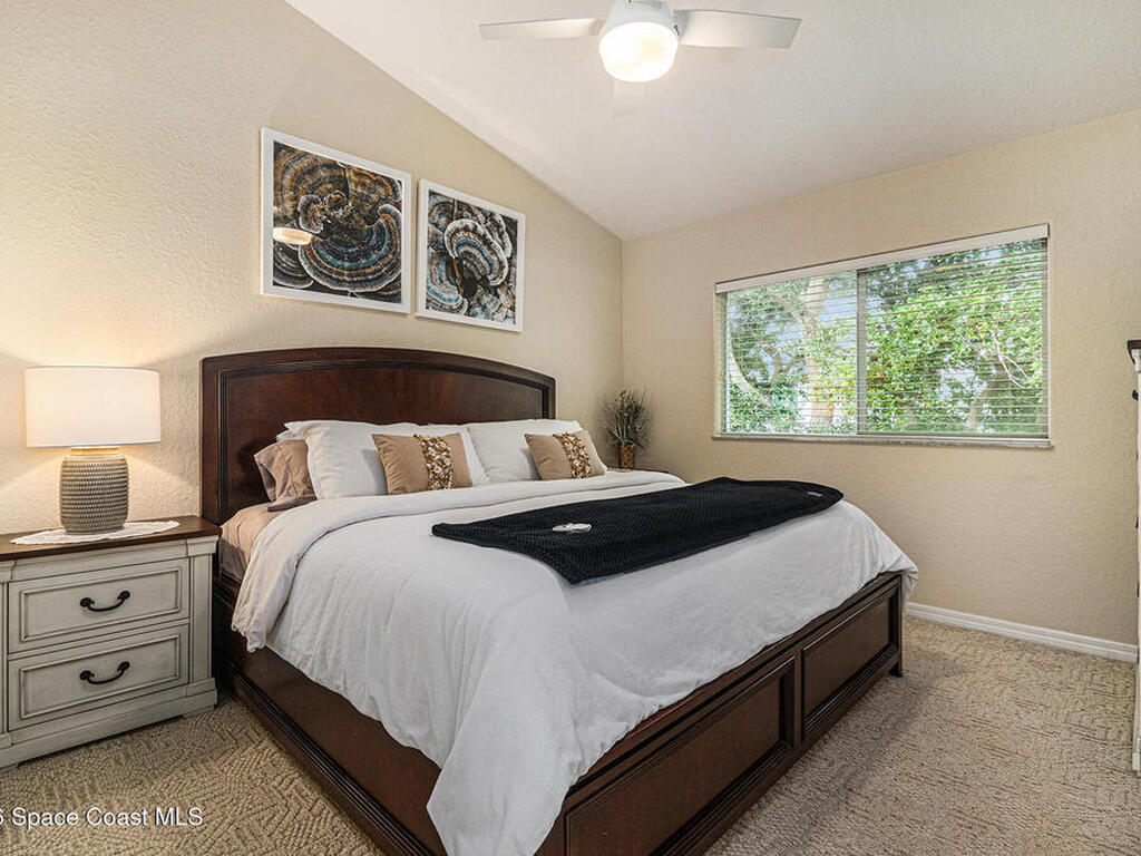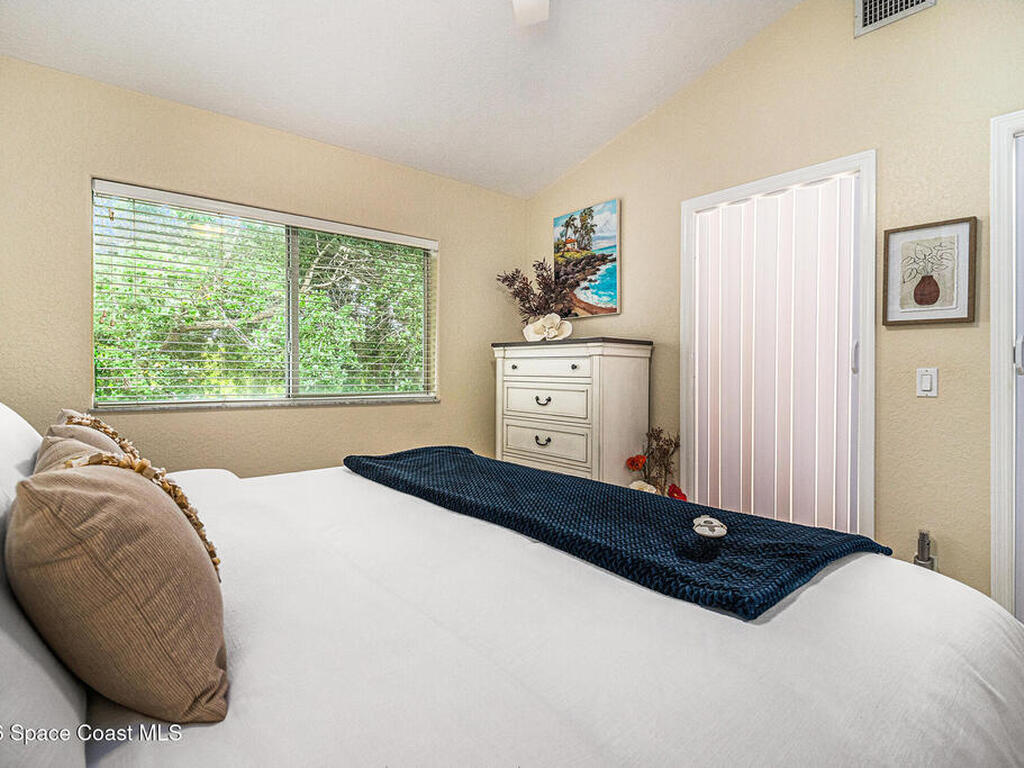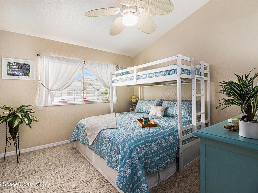 Rare 2BR/2.5BA end unit with bump-out in The Villages of Seaport! Located in the 600 block, just steps from private beach access. Features granite countertops, SS appliances, 42'' soft-close cabinets, ceramic tile floors, and furnished (with exceptions). Enjoy an electric awning, lush garden, and oversized patio for outdoor living. Resort-style gated community offers 3 pools, clubhouse with ocean-view deck and weight room, tennis/pickleball courts, and private beach access. Minutes from Port Canaveral, Kennedy Space Center, and ideal for SpaceX/Blue Origin employees. Don't miss this coastal gem!